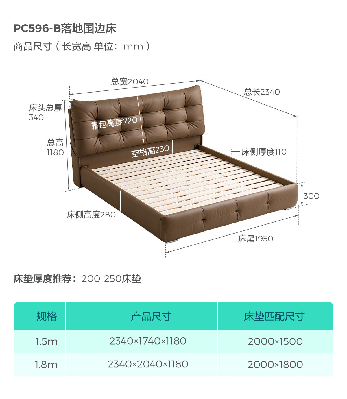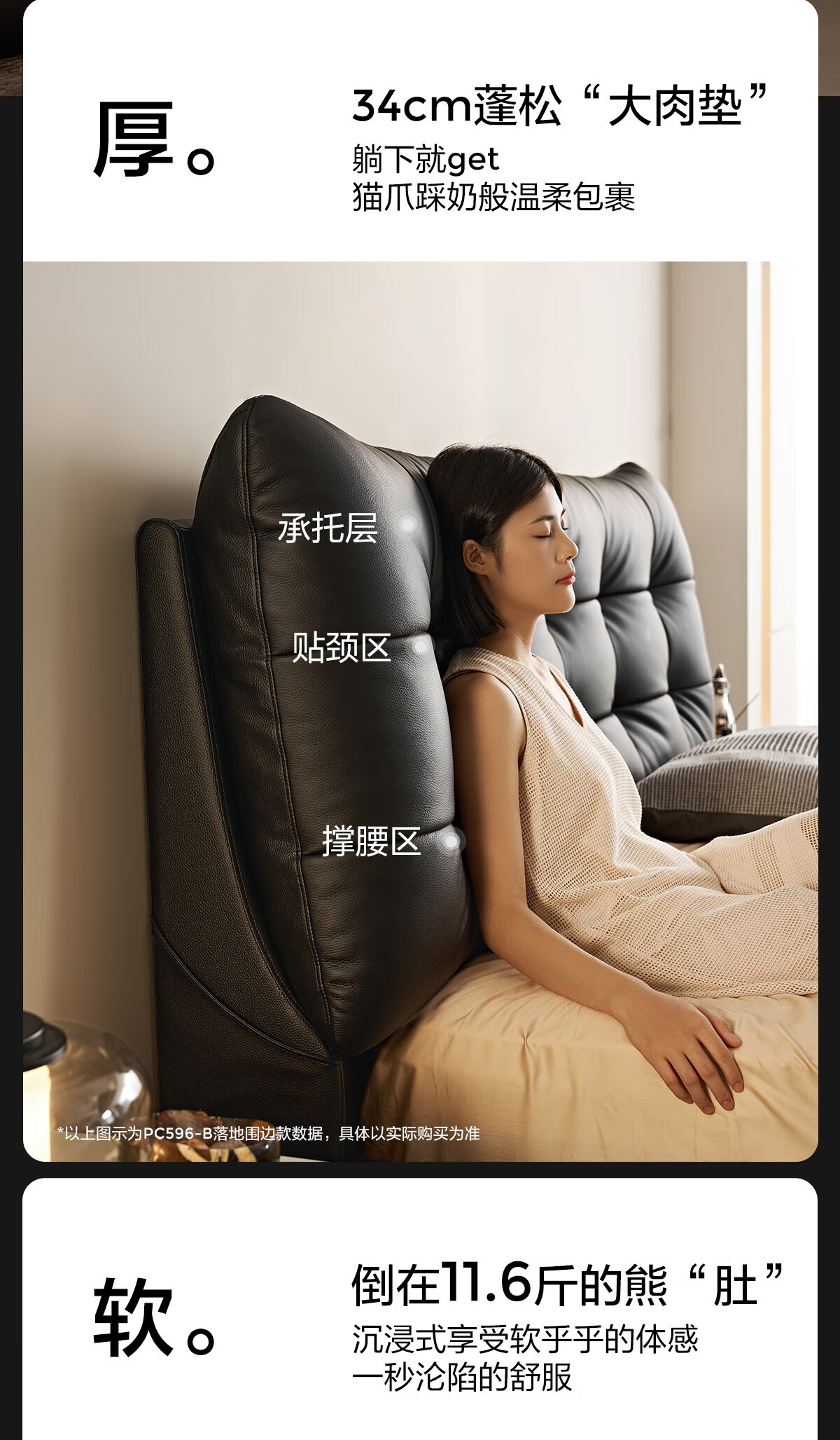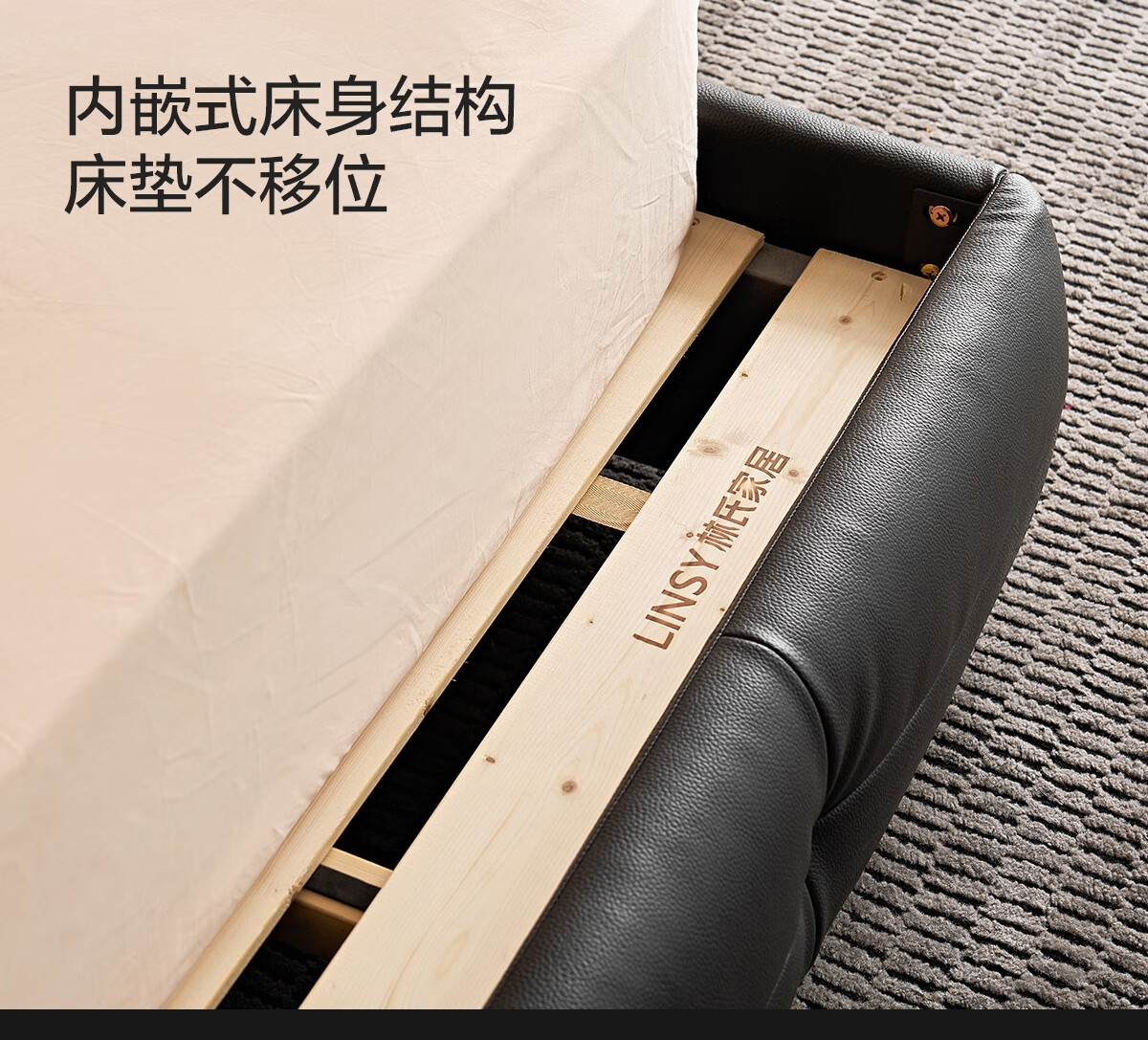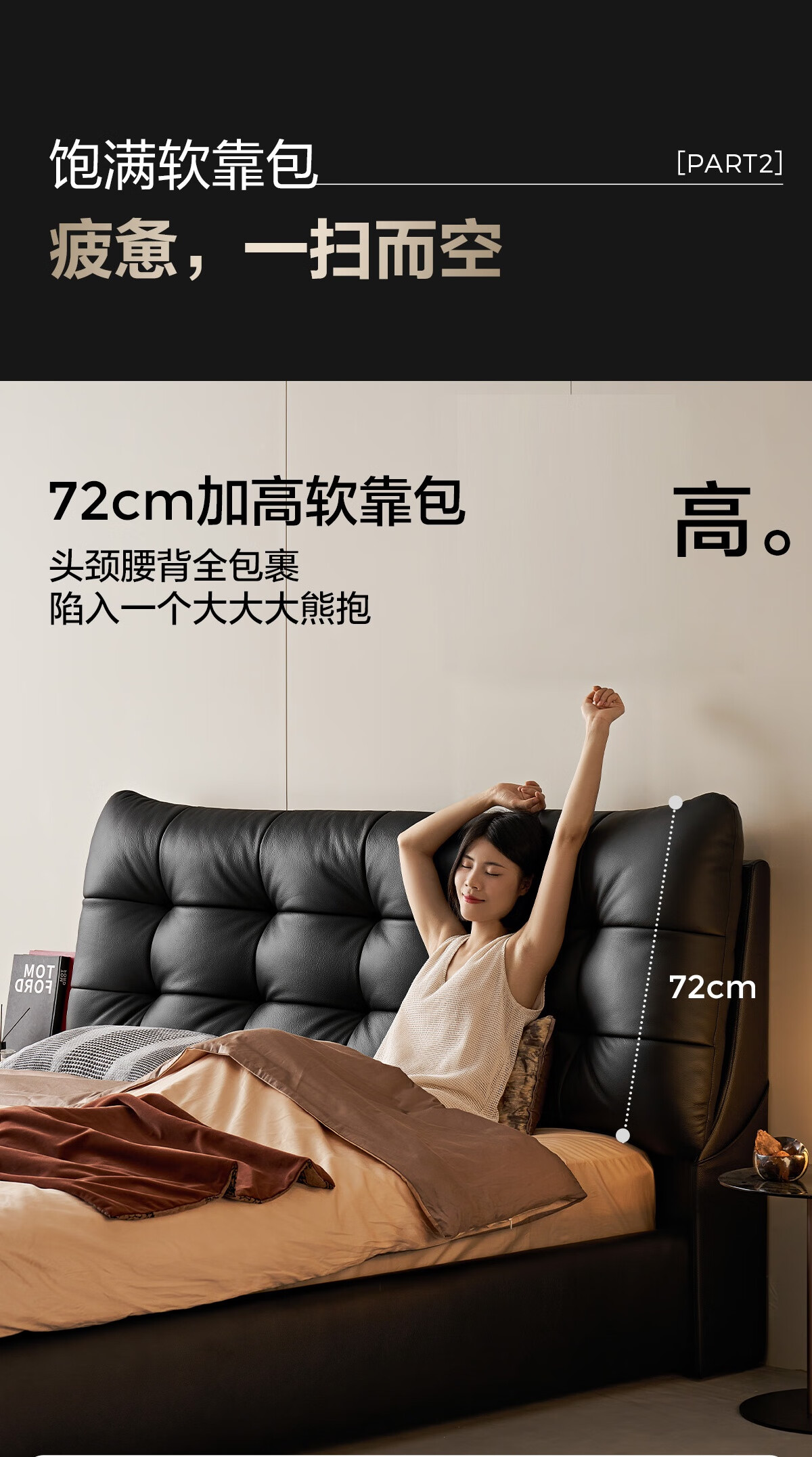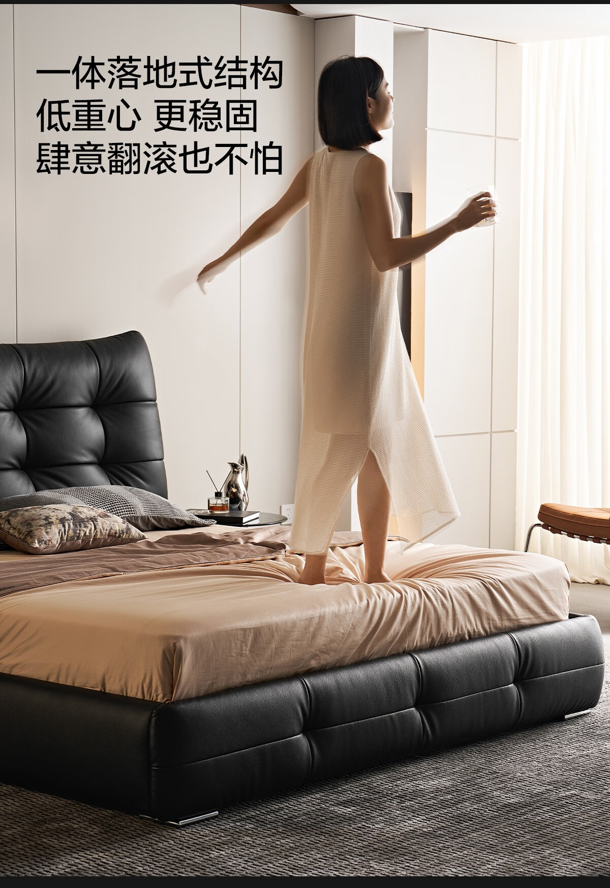 Lin's Home Leather Bed Master Bedroom Double Bed 1.8m 1.5m Large Black Bear Bed Home Upholstered Bed Light Luxury PC596 Black Brown | Floor Bed 1.8x2m