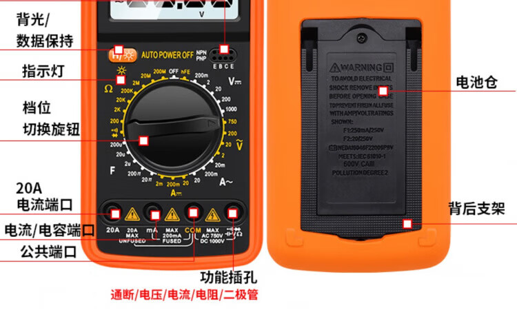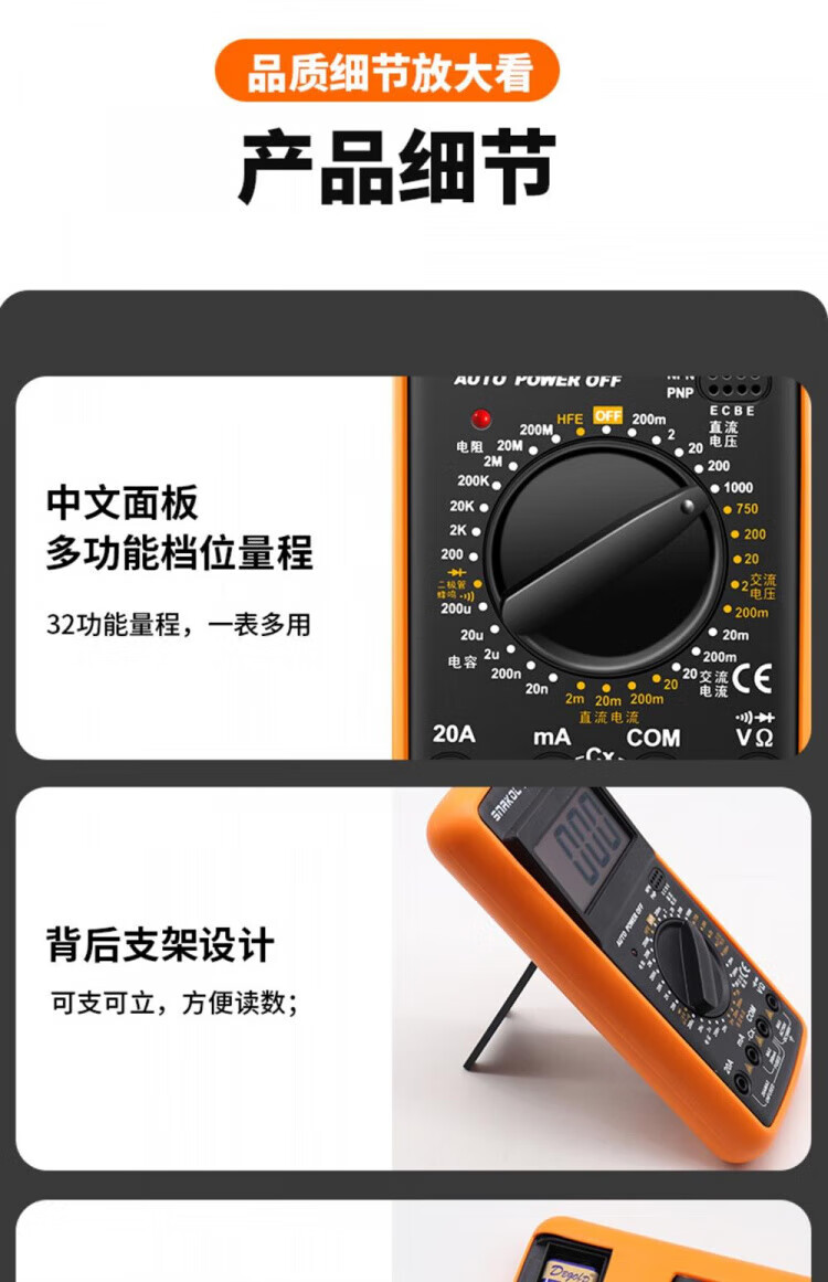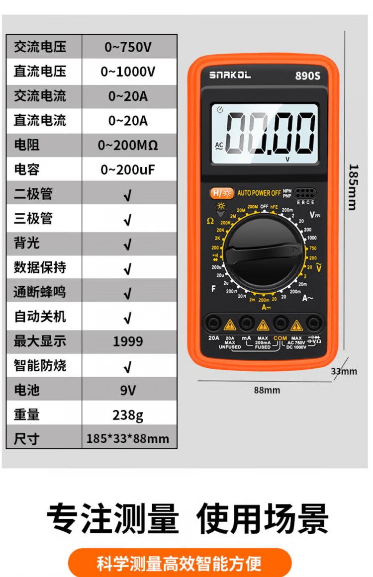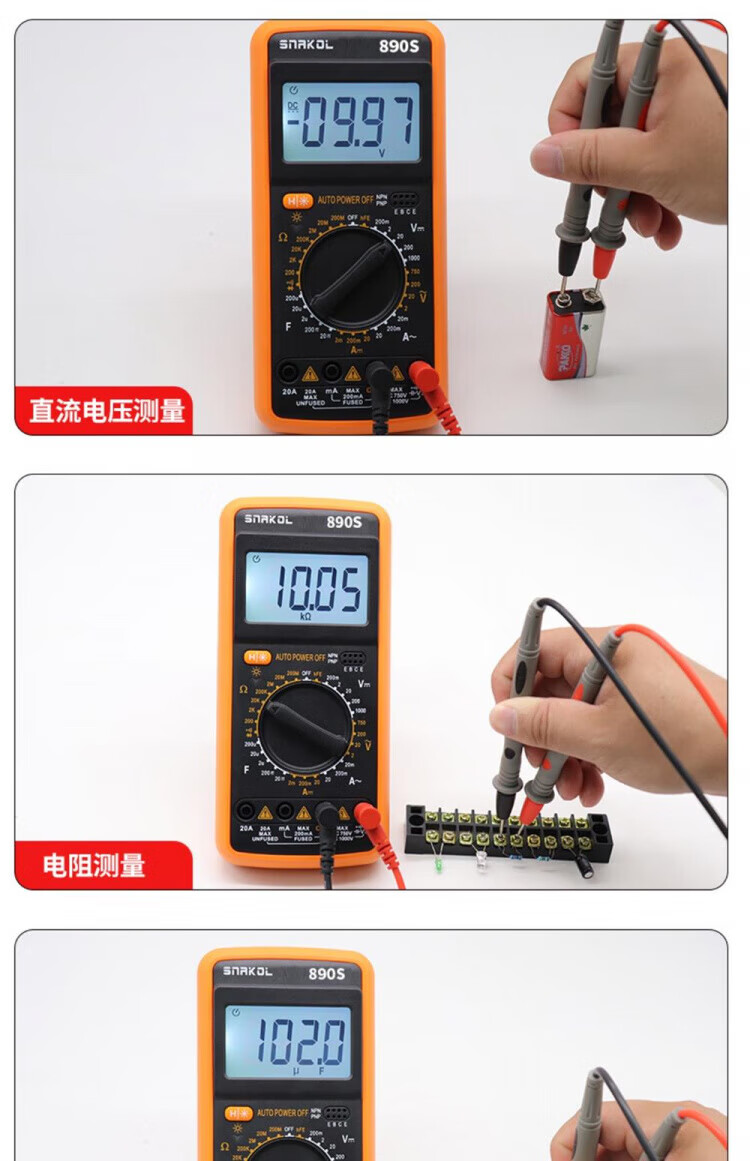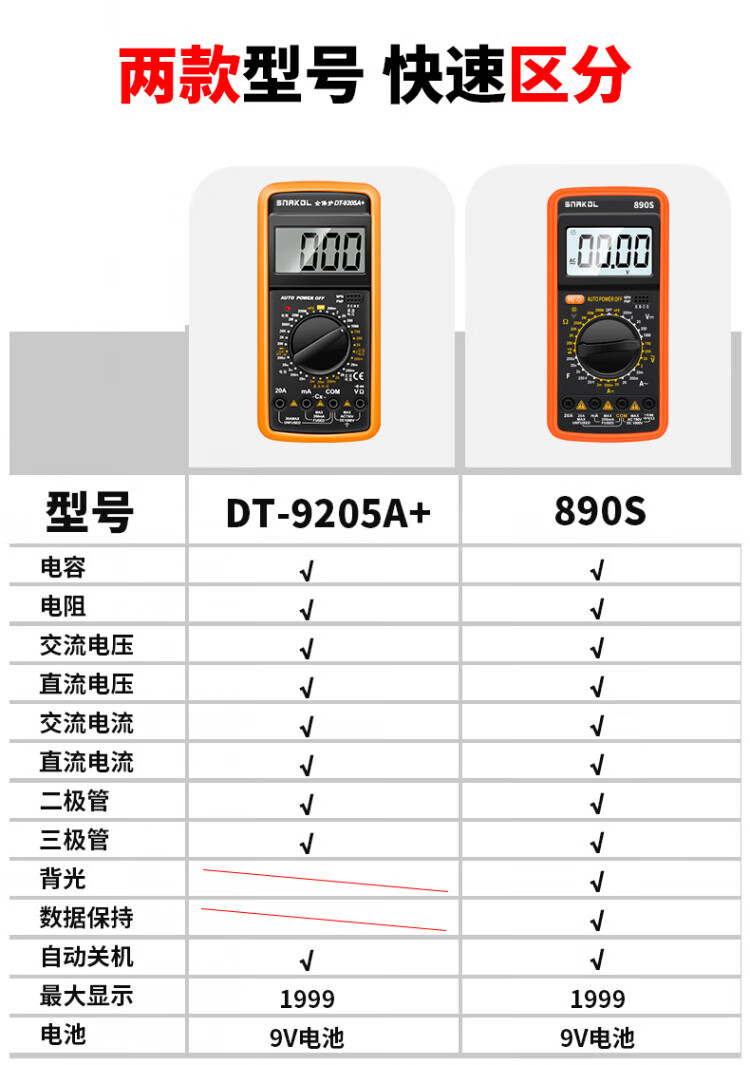 JCZS German multimeter electrician special high-precision DT9205A anti-burn digital protection large-screen digital display meter 9205A comes standard with battery test pen
