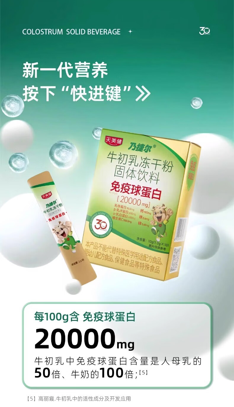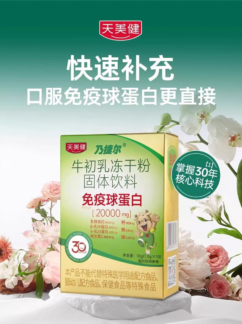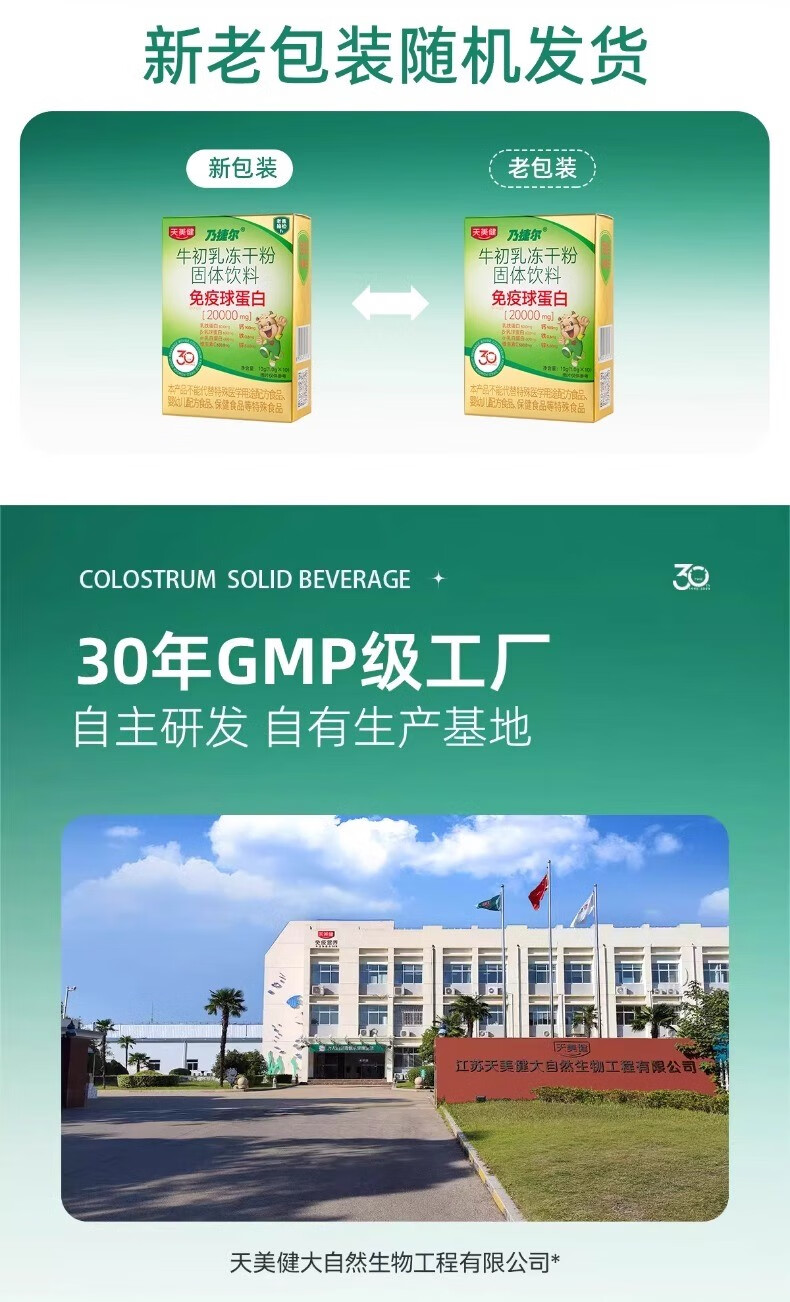 Tianmei Jian Nai Jie Er bovine colostrum freeze-dried powder 20 immunoglobulin capsules to enhance immunity, genuine Tian Mei Jian Nai Jie Er 1 box 10 bags, official genuine fake one penalty ten