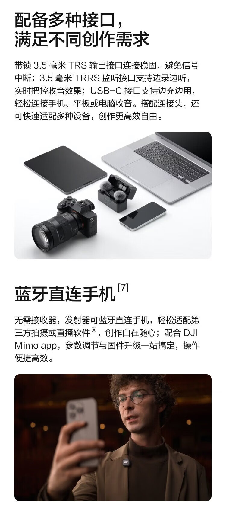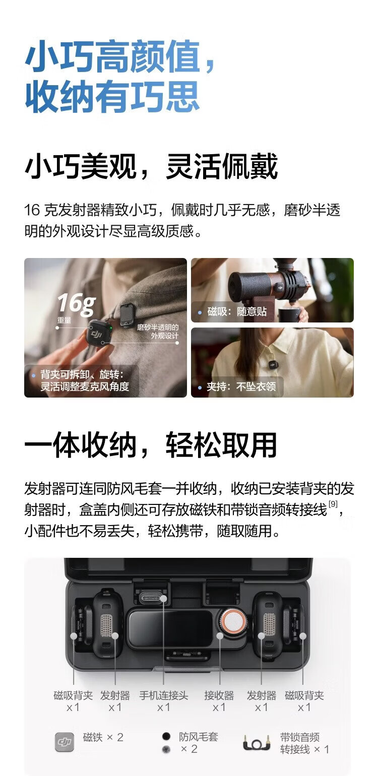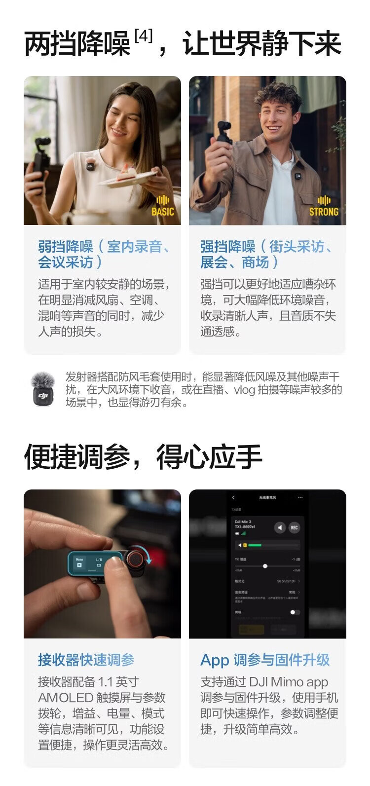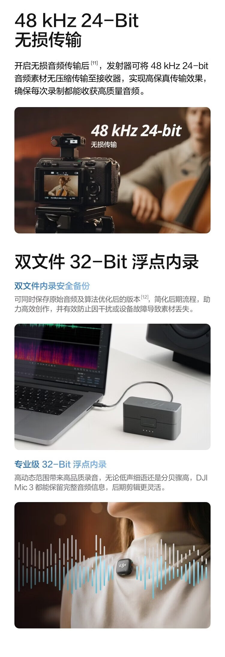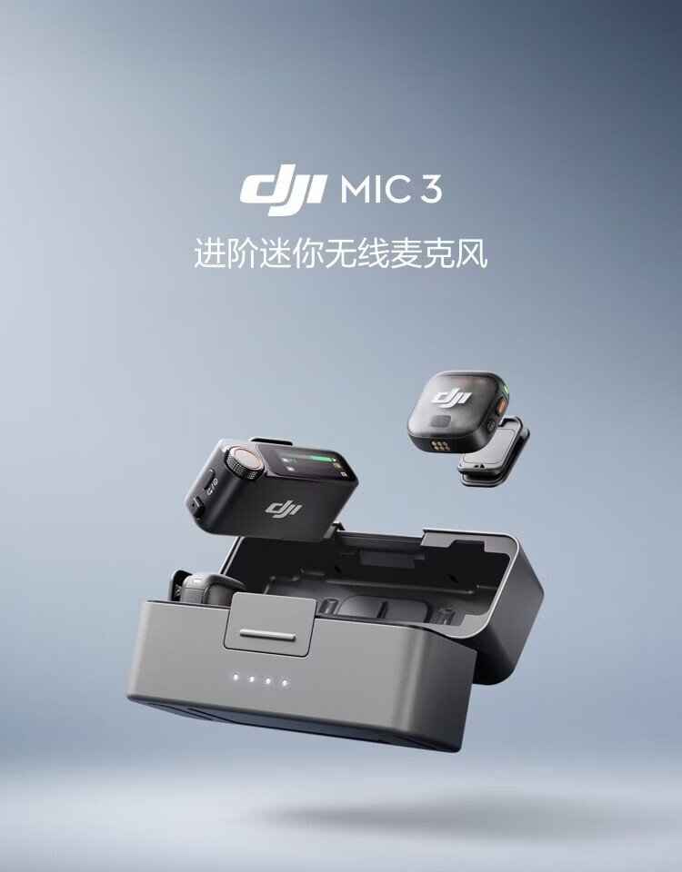 DJI Mic 3 advanced mini wireless microphone interview live vlog video recording lavalier microphone Bluetooth direct connection to mobile phone camera noise reduction radio microphone one for two (including charging box) Apple 15-17 series + Android + camera