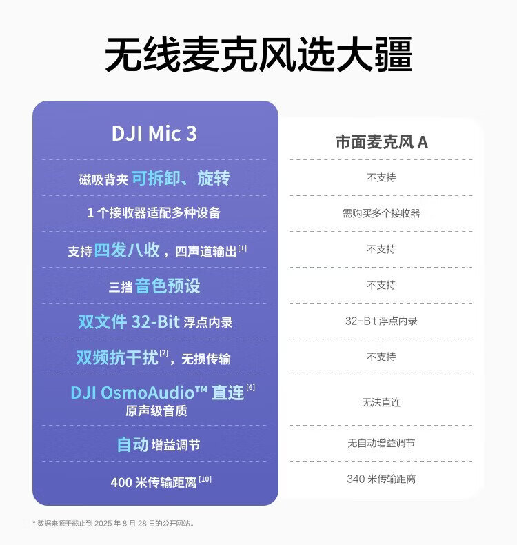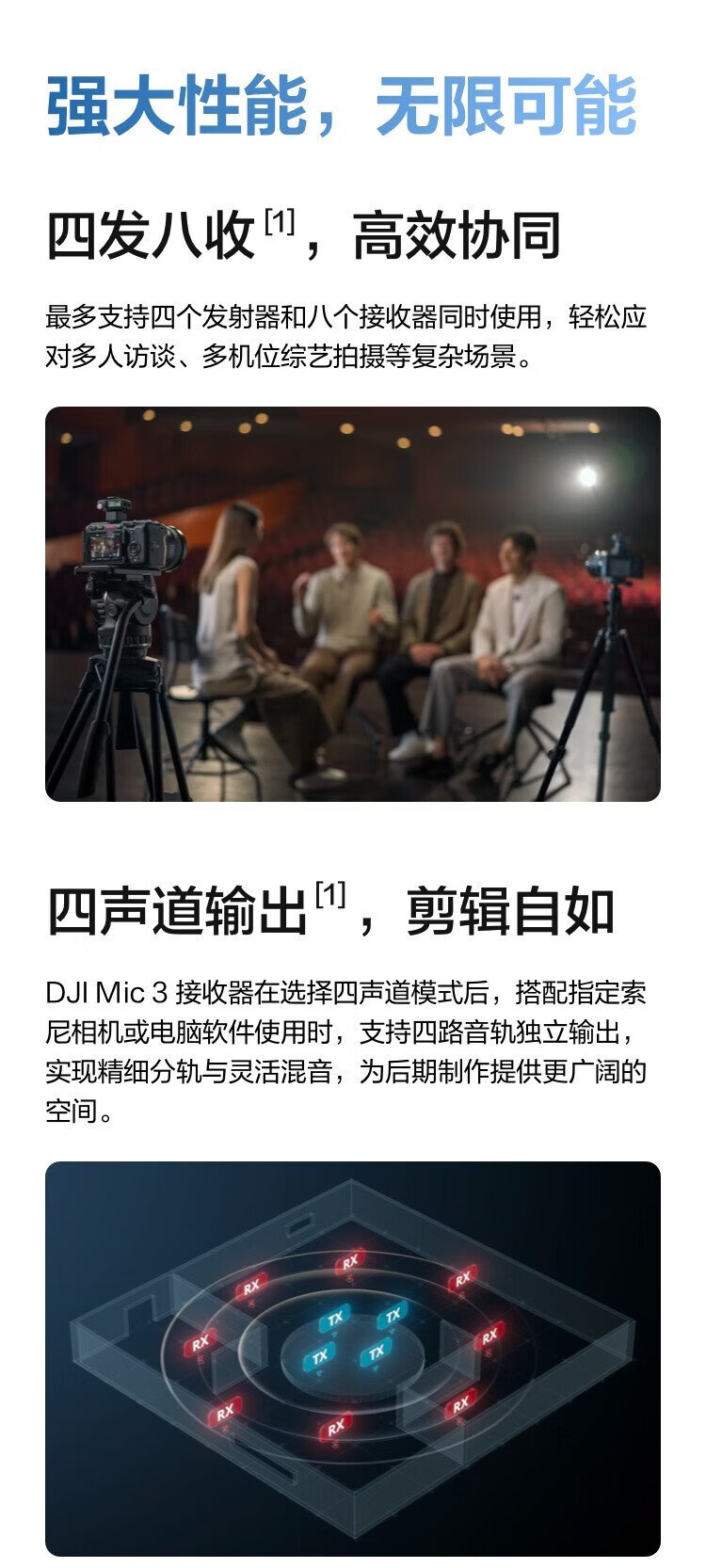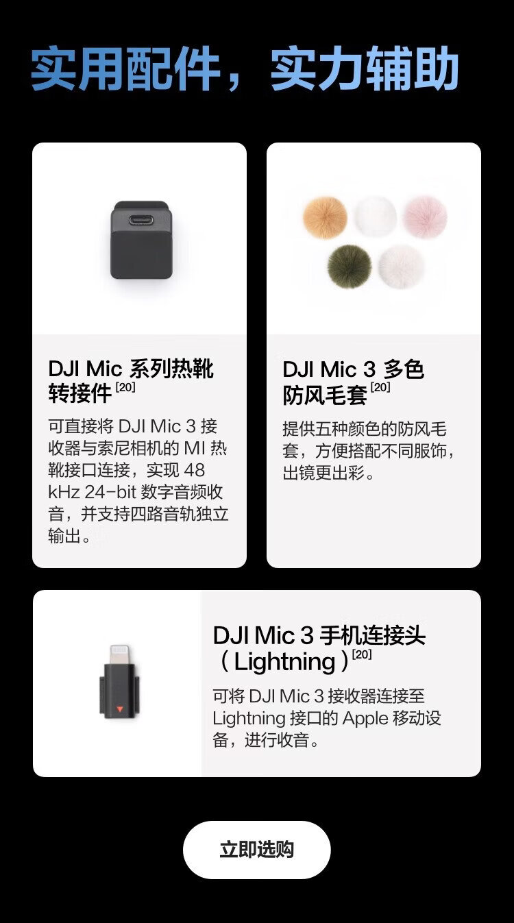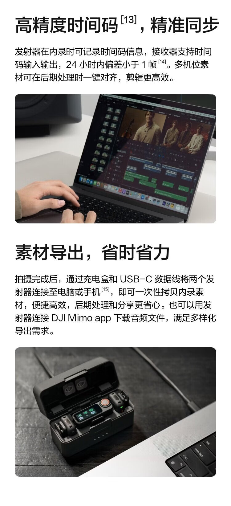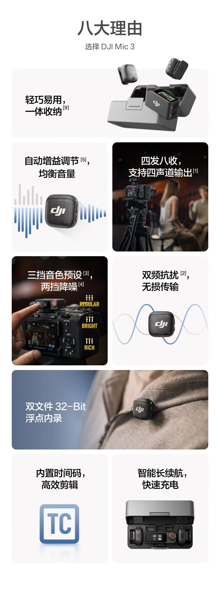 DJI Mic 3 advanced mini wireless microphone interview live vlog video recording lavalier microphone Bluetooth direct connection to mobile phone camera noise reduction radio microphone one for two (including charging box) Apple 15-17 series + Android + camera