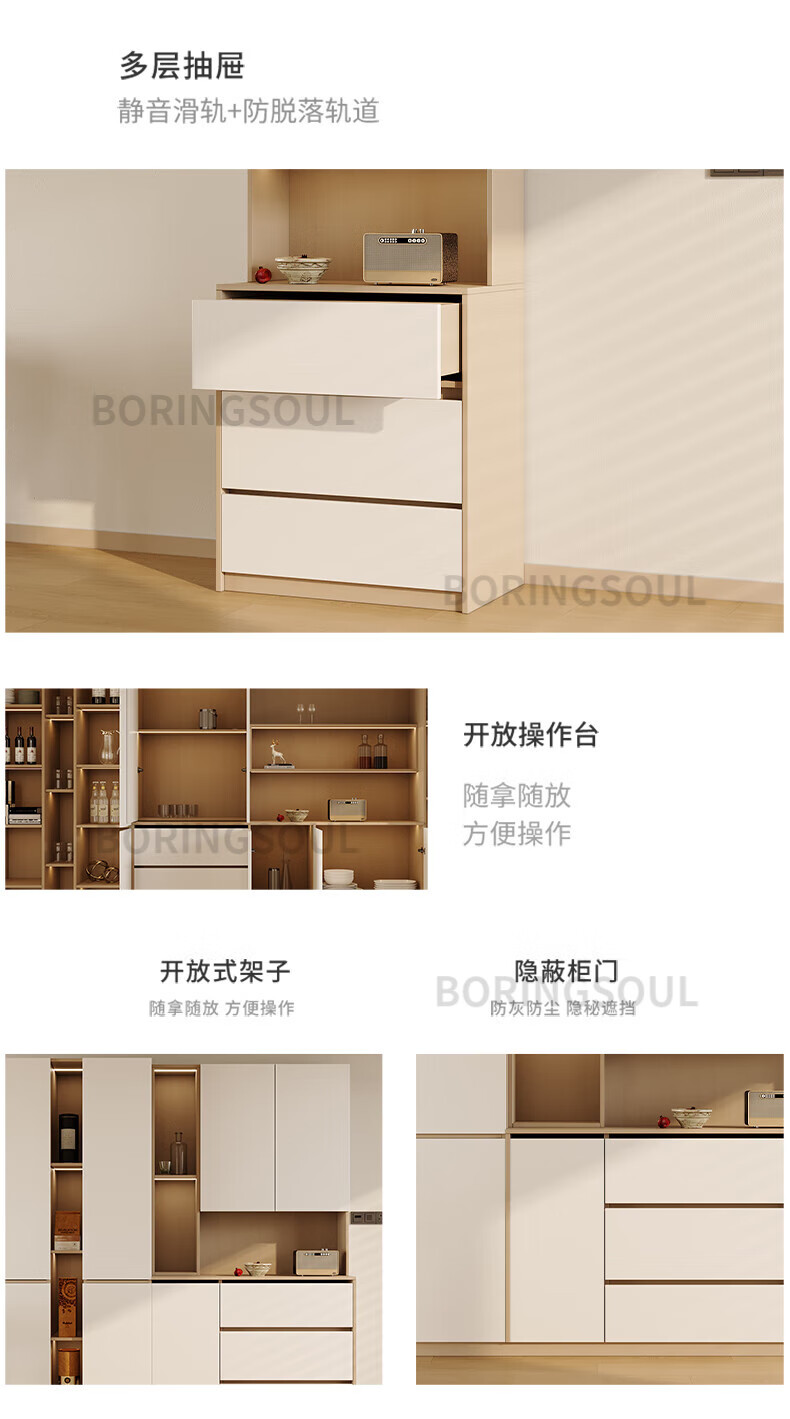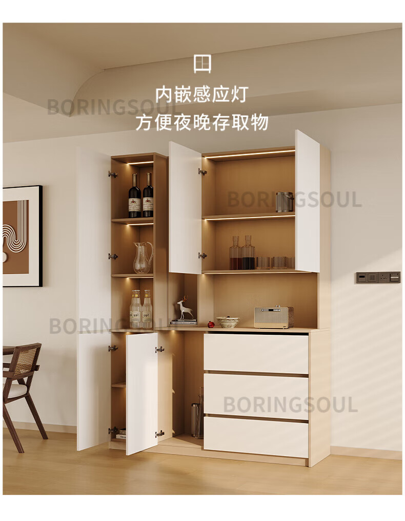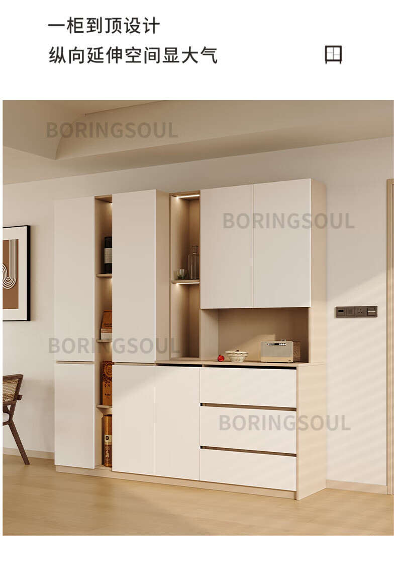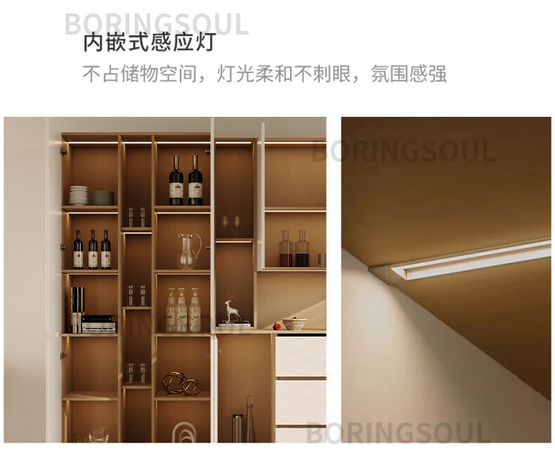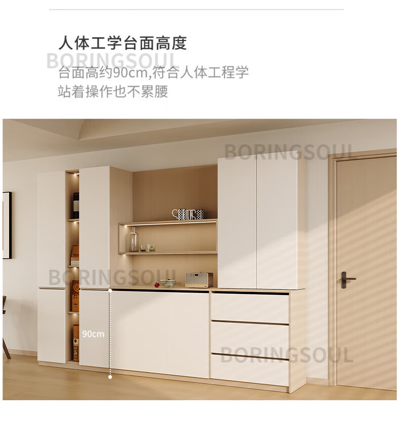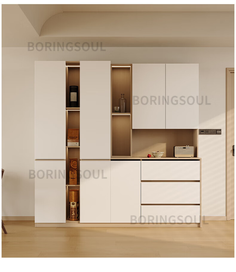 BORINGSOUL custom sideboard built into the wall with dining table integrated high cabinet living room kitchen household small apartment solid wood wine cabinet 3.0 meter sideboard Enf solid wood net core board ENF grade solid wood board Hardware only replaced and not repaired for life