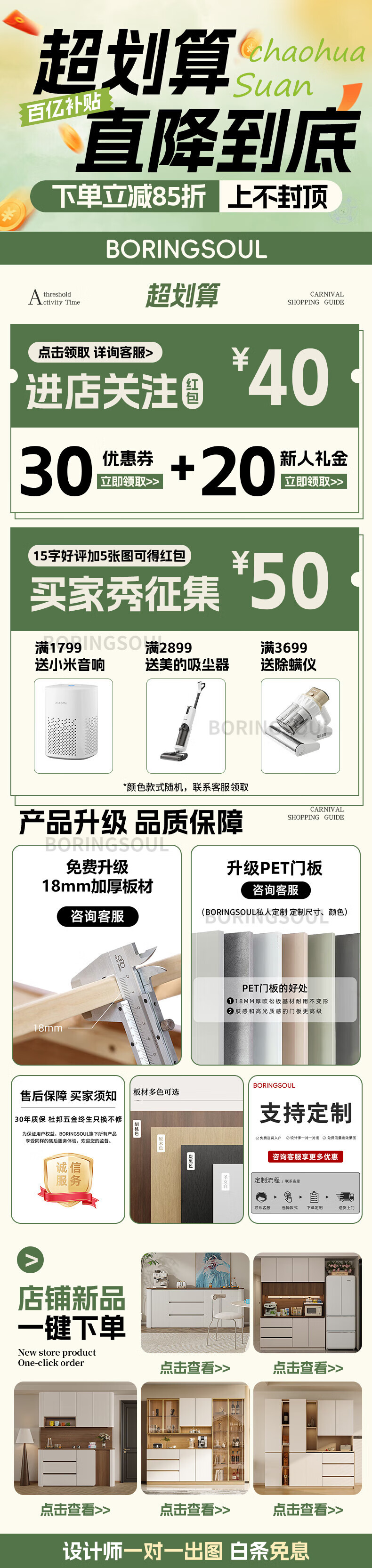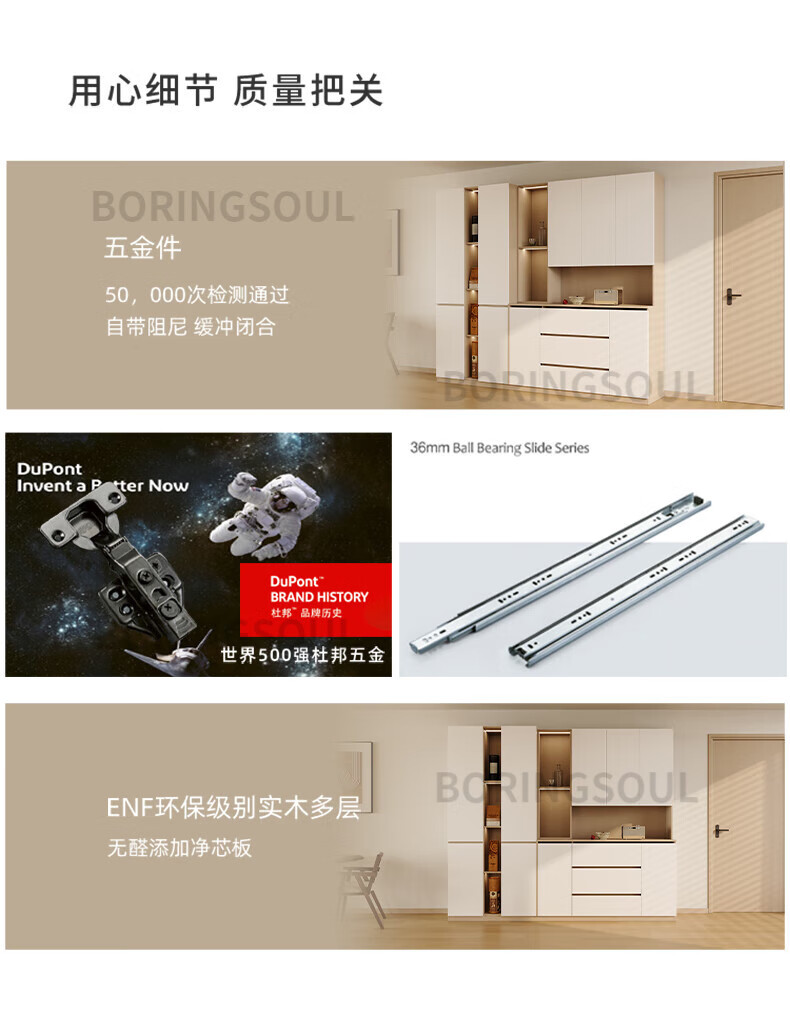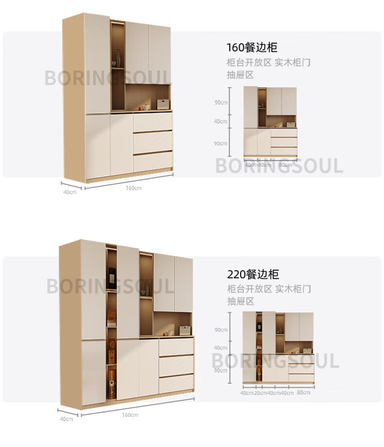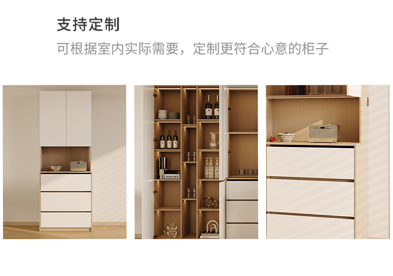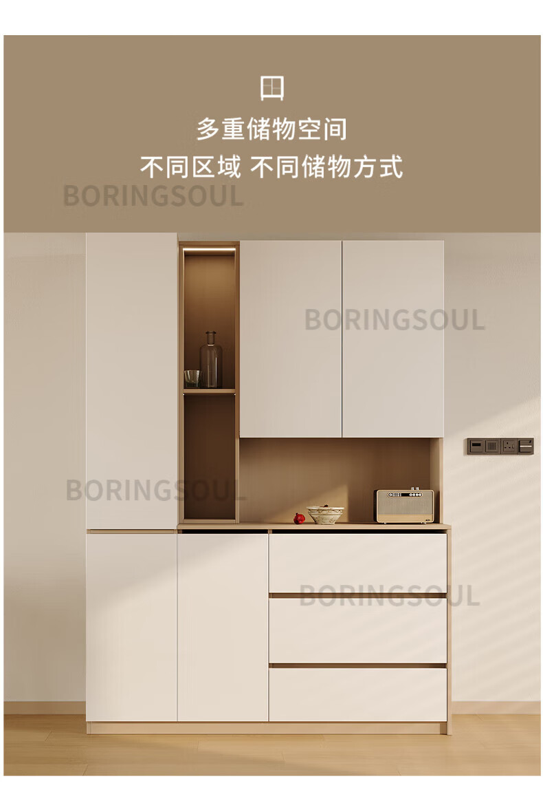 BORINGSOUL custom sideboard built into the wall with dining table integrated high cabinet living room kitchen household small apartment solid wood wine cabinet 3.0 meter sideboard Enf solid wood net core board ENF grade solid wood board Hardware only replaced and not repaired for life