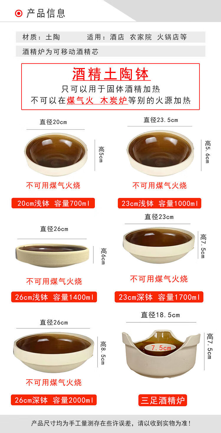 Tirona small casserole alcohol stove small hot pot special dry pot casserole independent clay pot heat-resistant ceramic bowl earthenware bowl earthenware 19 earthenware bowl about 700ml 1 pack