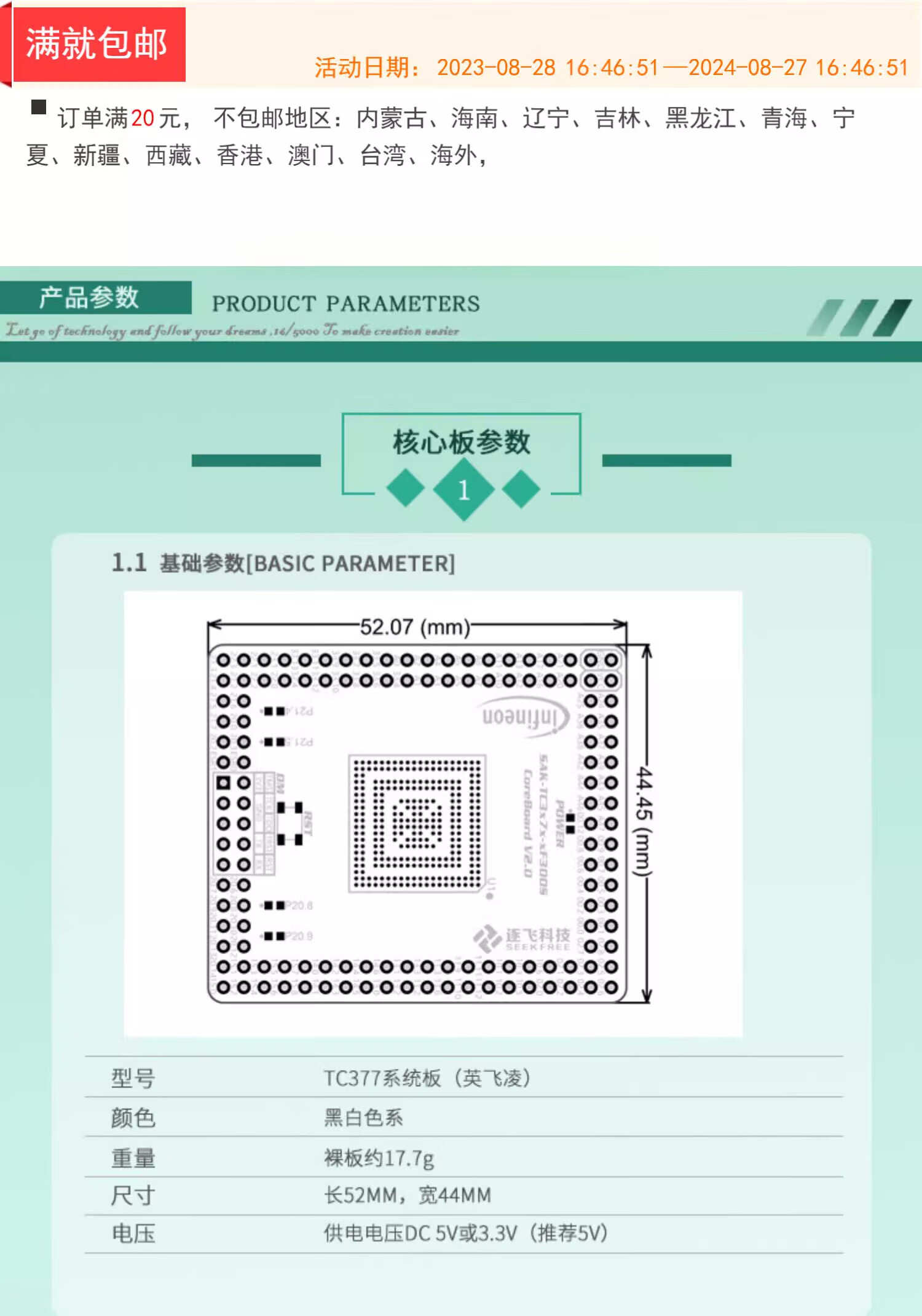 Smart car one-wheel balance three-wheel camera high-speed off-road group Infineon TC377 core board Zhufei Technology TC377 core board a V3.0 version (with chip)