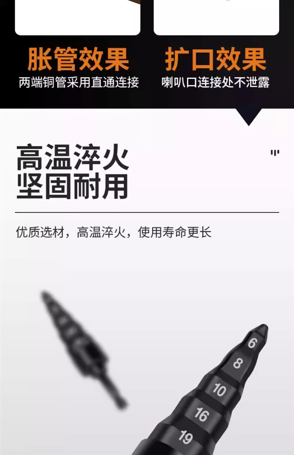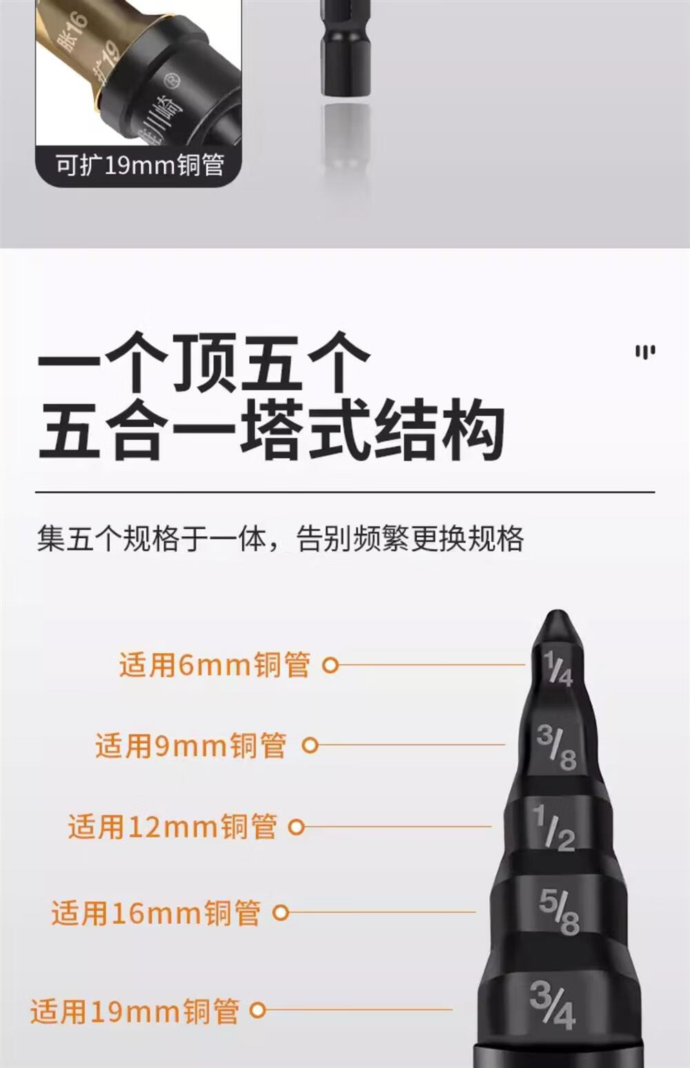 German copper pipe expander, electric pipe expander, air conditioner drill bit, pipe expansion, bell opening, refrigeration artifact tool, hot sale, pipe expansion metric 5-in-1 + storage box, free lubricating oil