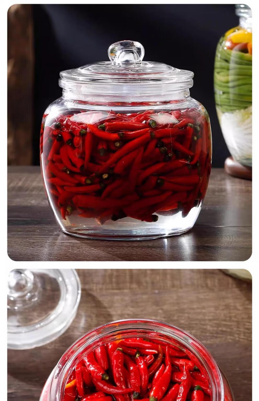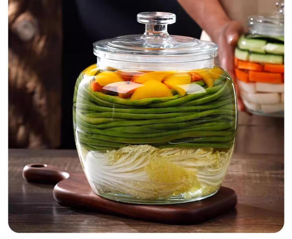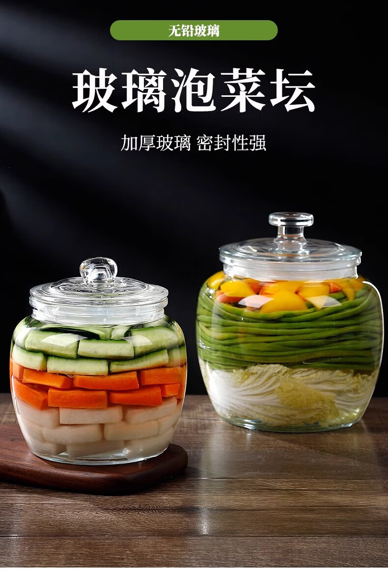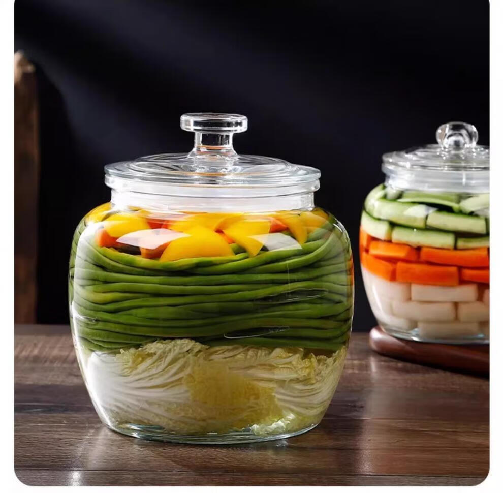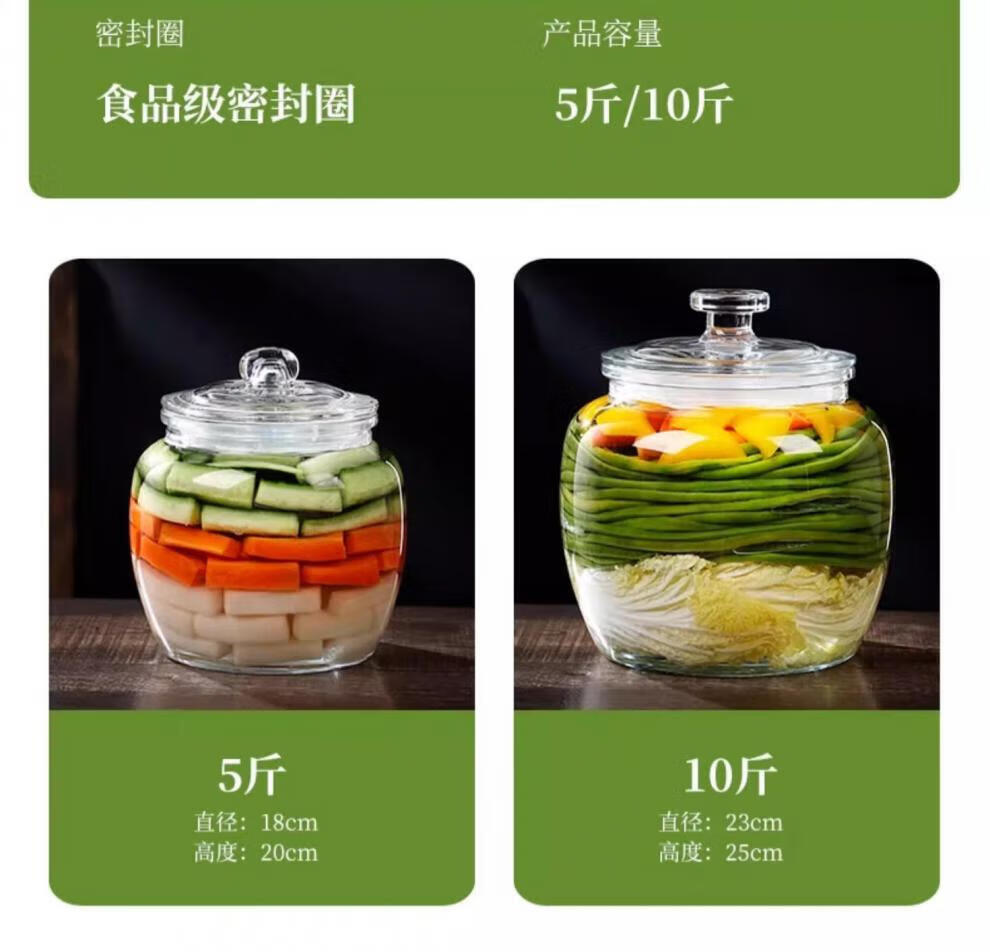 He Jiagong pickle jar glass pickle jar household thickened pickle jar sauerkraut jar sealed pickled salted duck eggs 6 pounds round buckle style