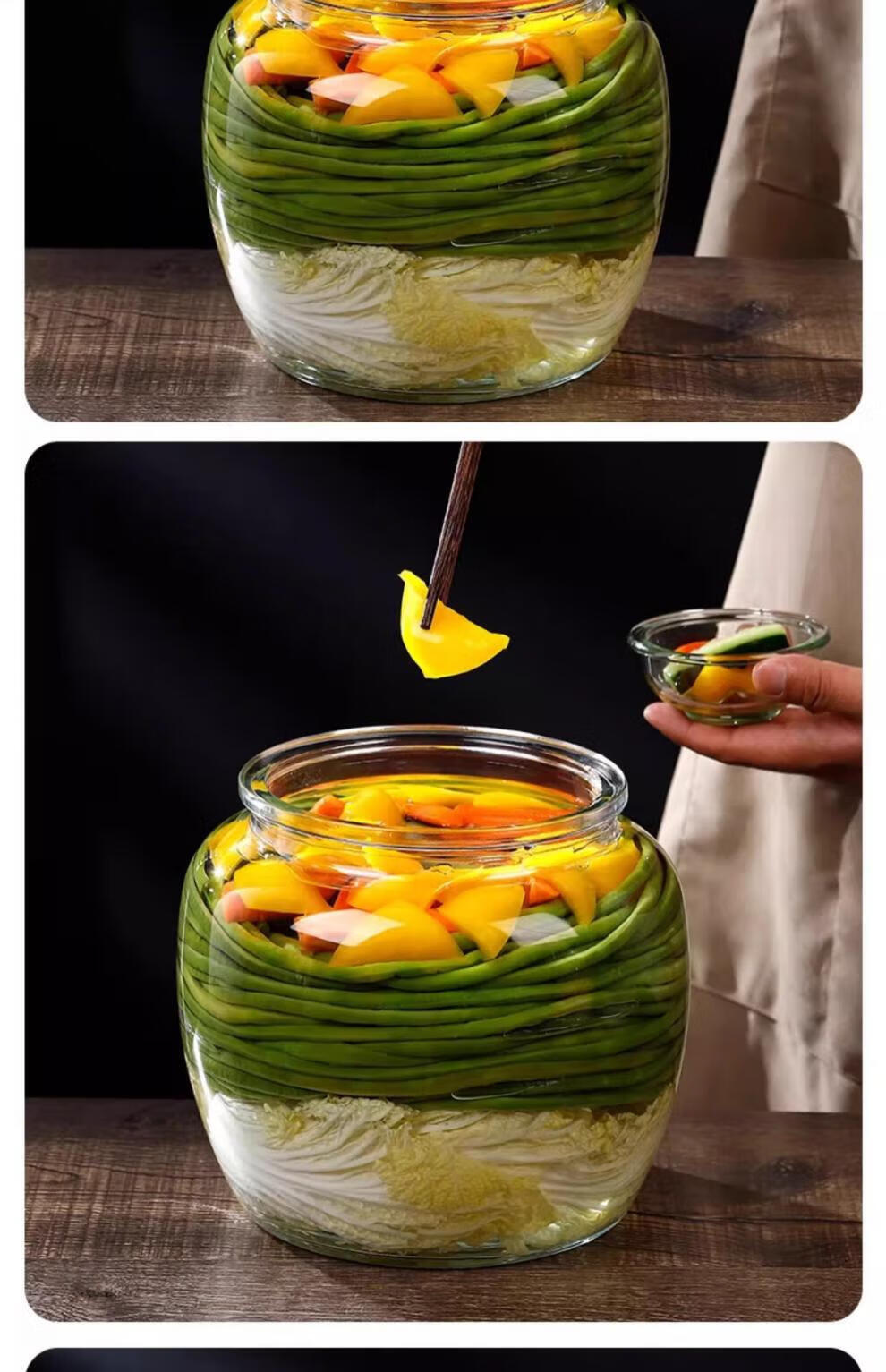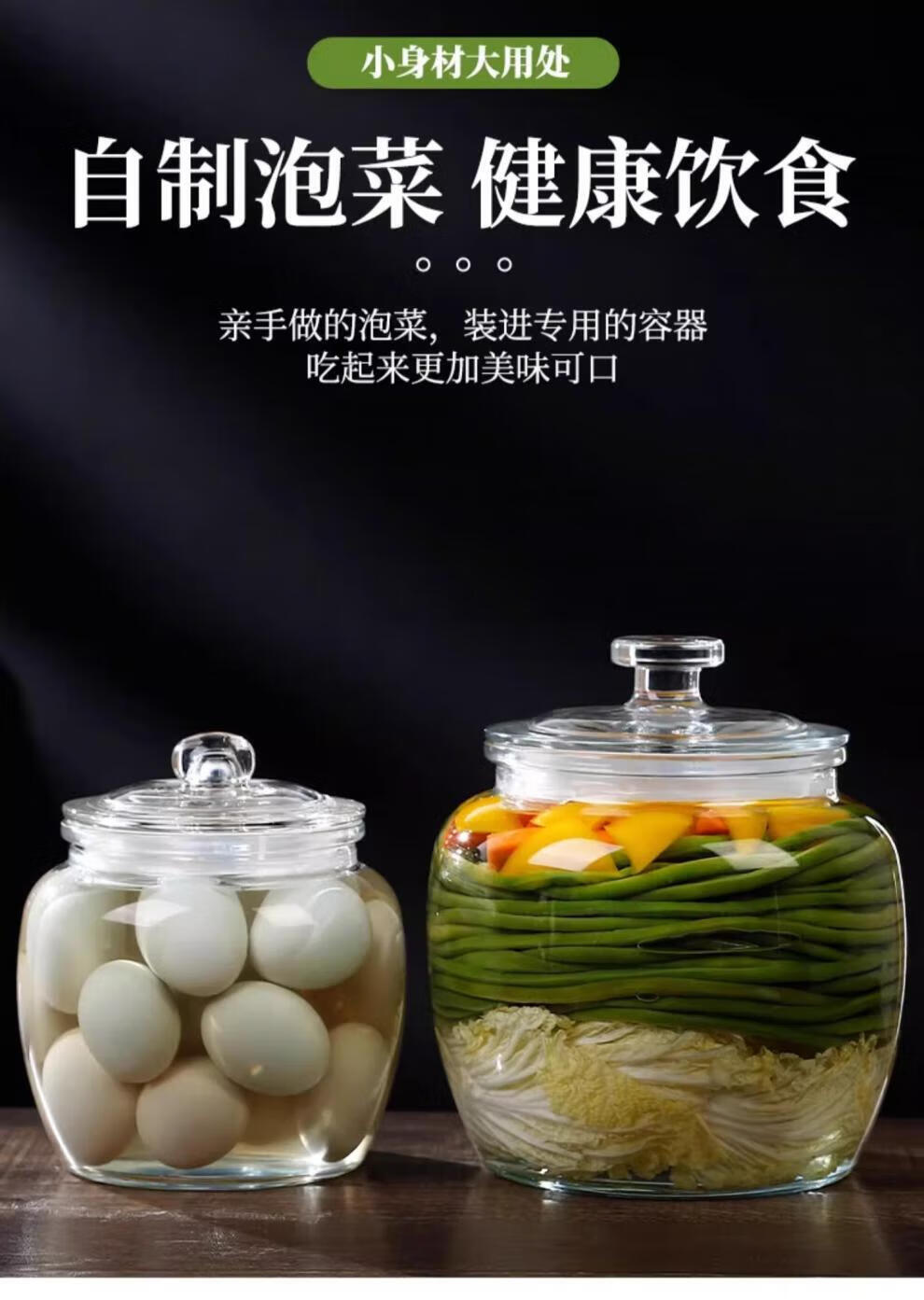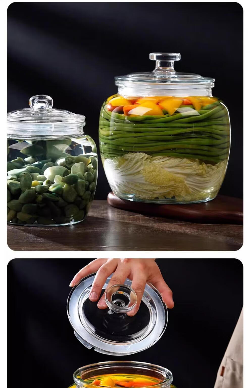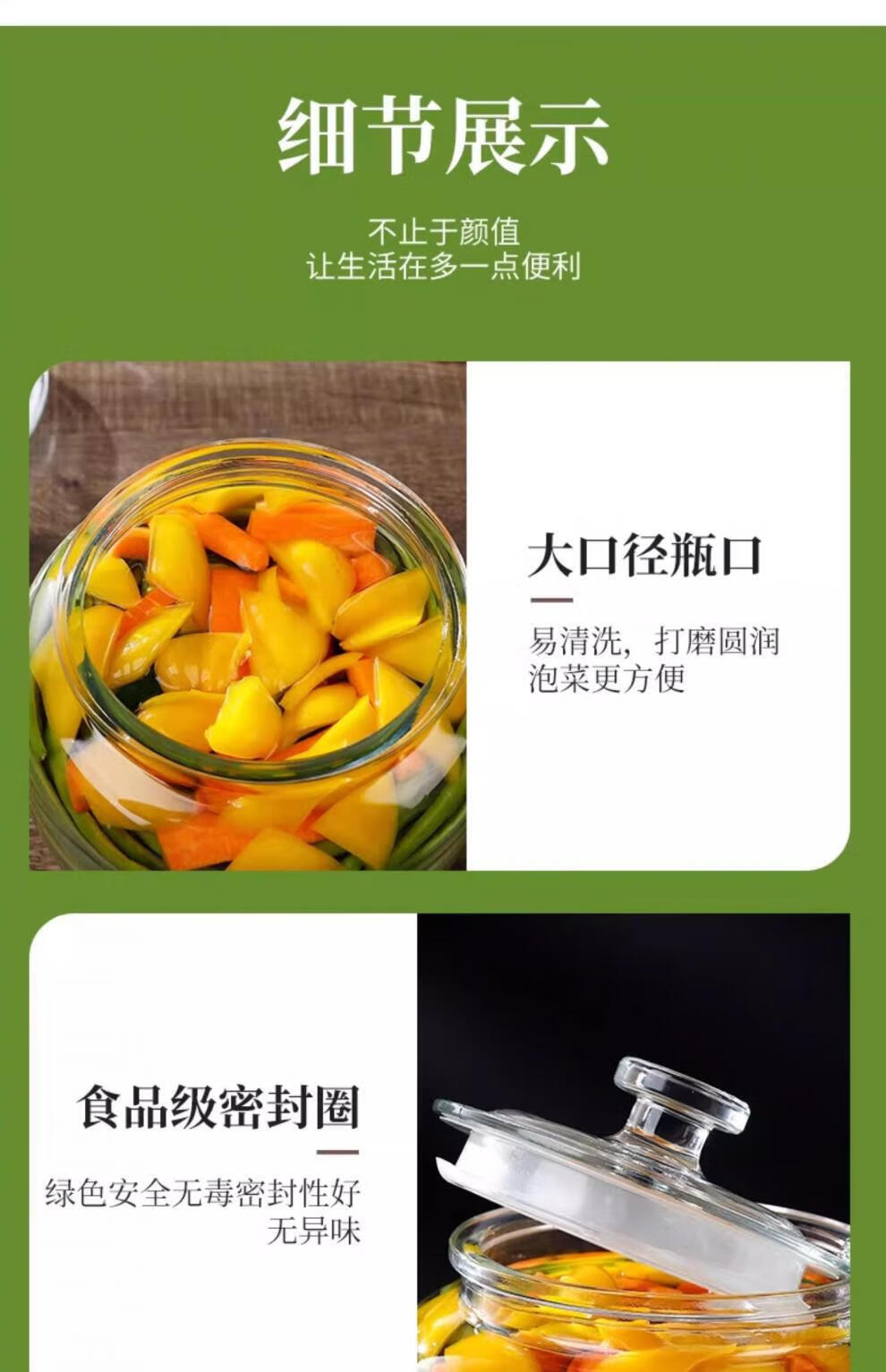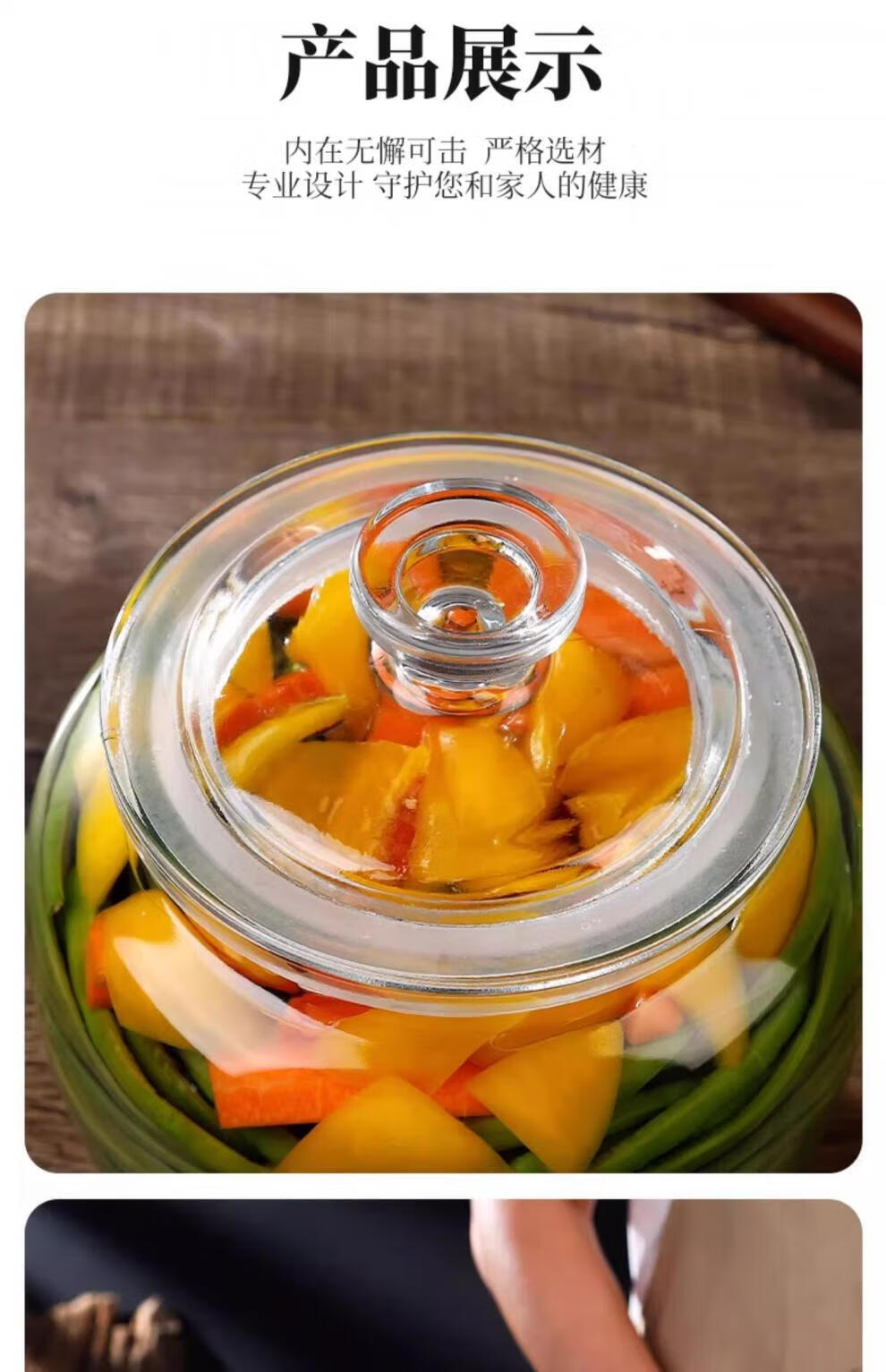 He Jiagong pickle jar glass pickle jar household thickened pickle jar sauerkraut jar sealed pickled salted duck eggs 6 pounds round buckle style