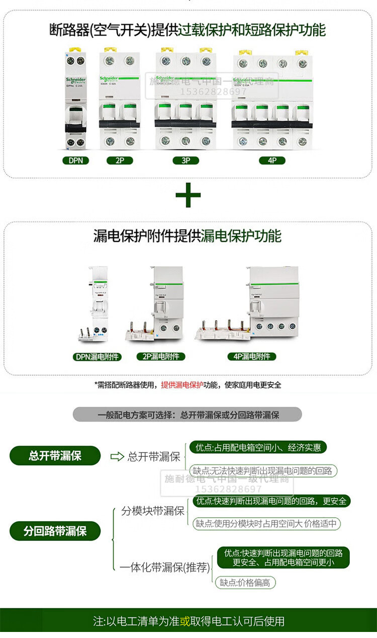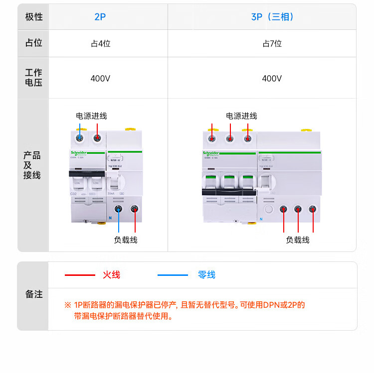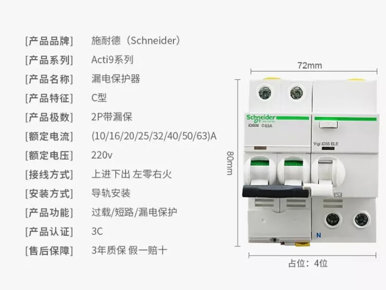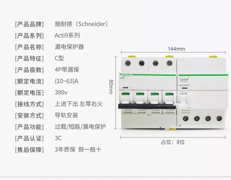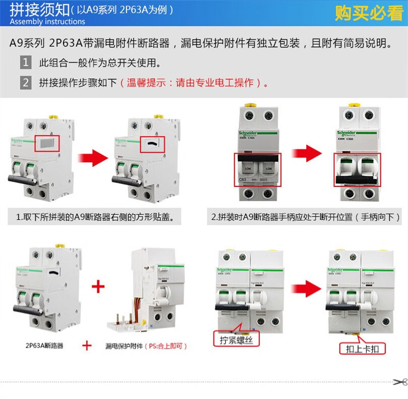 Schneider leakage protector with air switch ic65n air open leakage protection 2P40 A type C 3P4P63A9 series 2P 40A