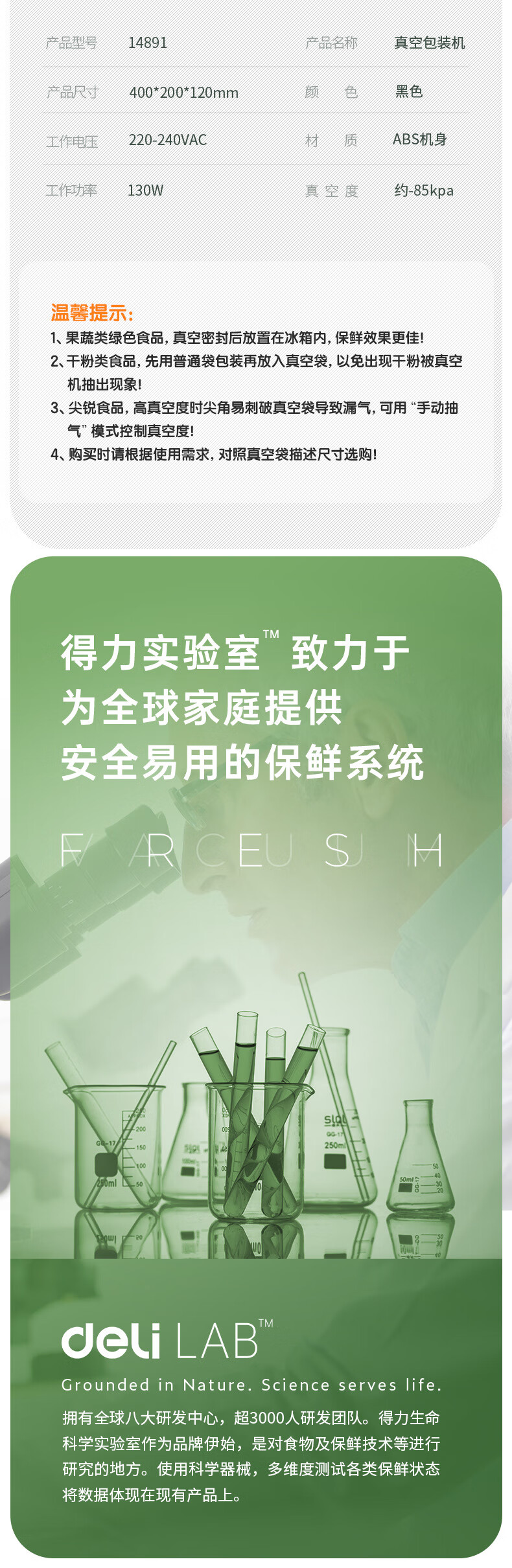 Deli Deli 14891 vacuum packaging machine, commercial vacuum food sealing machine, household packaging machine, small plastic sealing machine, 14891 vacuum packaging machine
