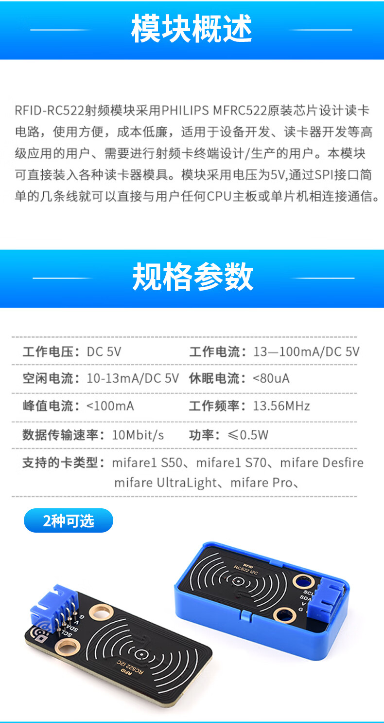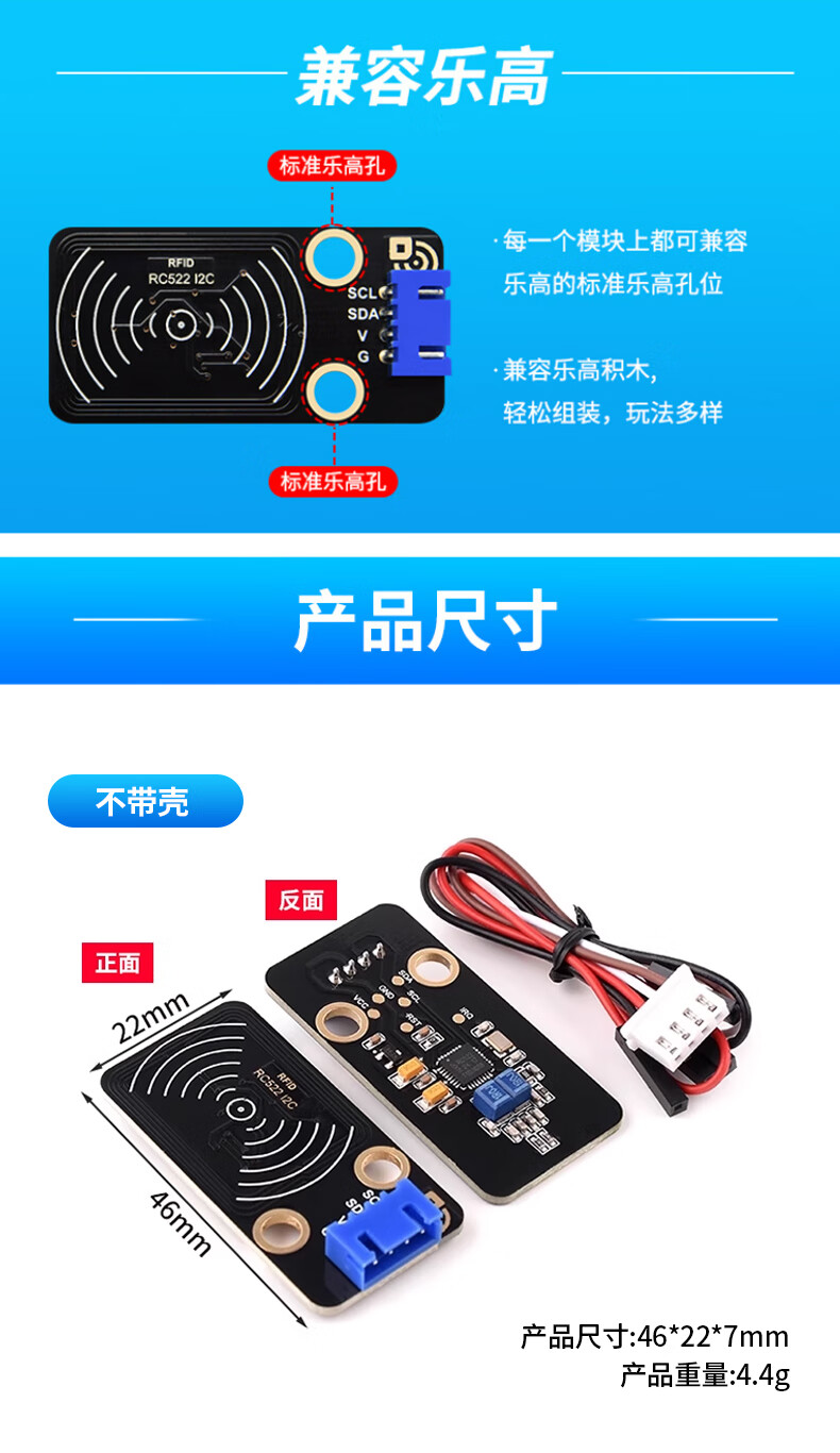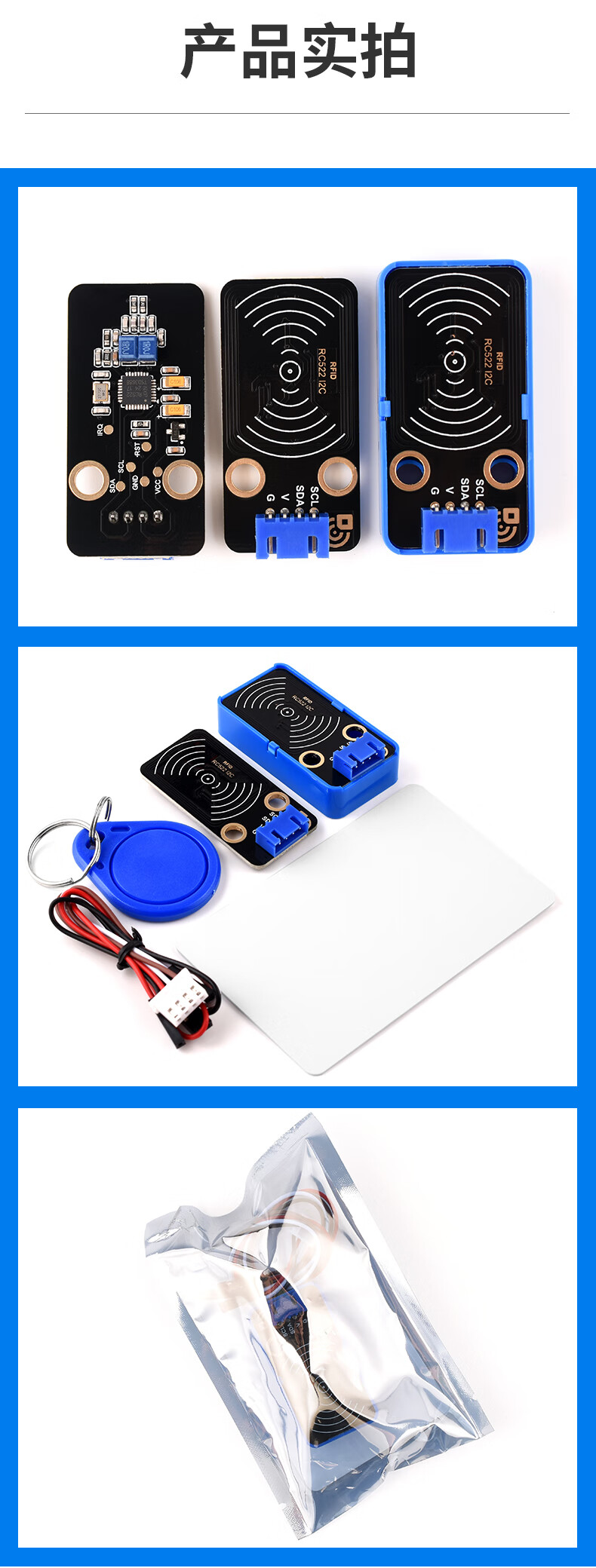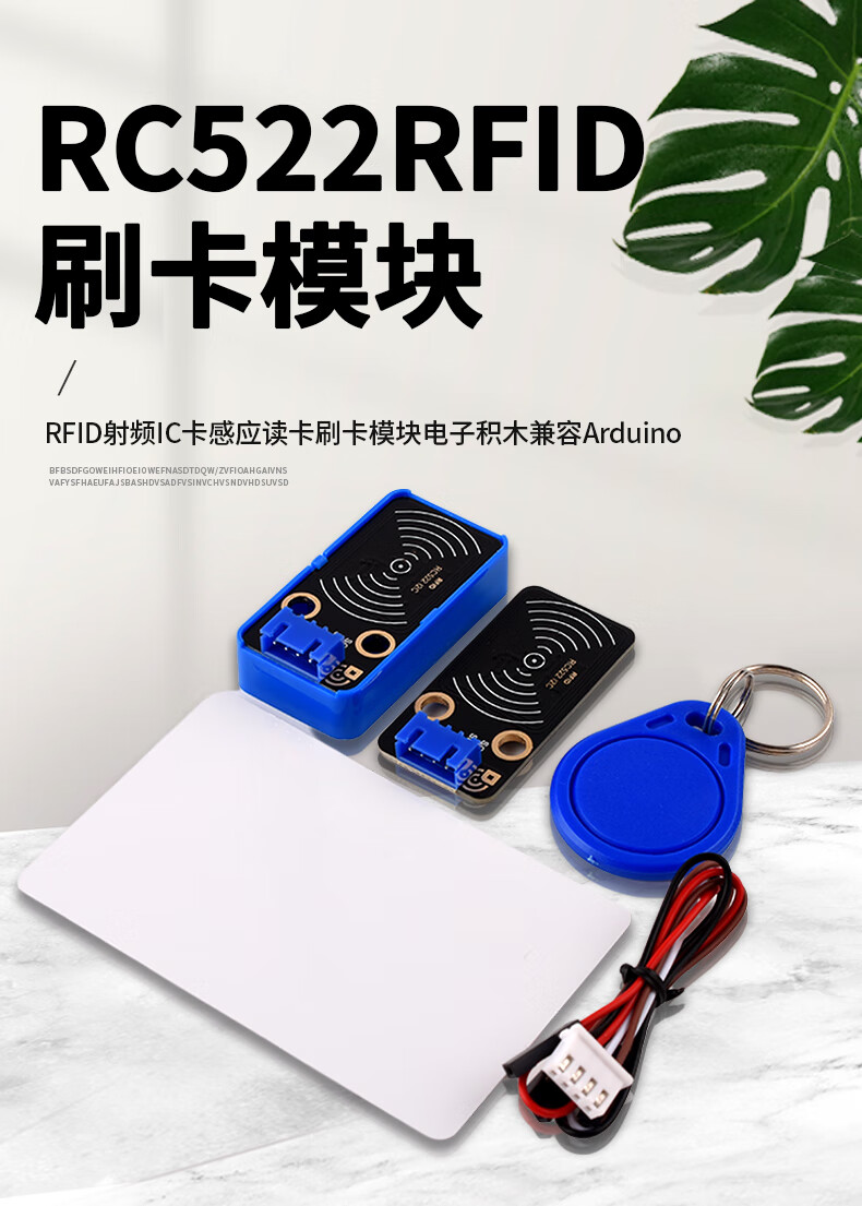 RC522 RFID radio frequency IC card induction card reading and swiping module. Electronic building block compatible with Arduino. RC522RFID buckle set with 4P wire belt shell. No specifications.