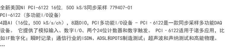 New American NI PCI-6122 16-bit 500 kS/S synchronous sampling 779407-01