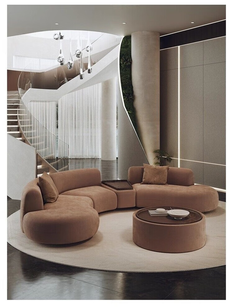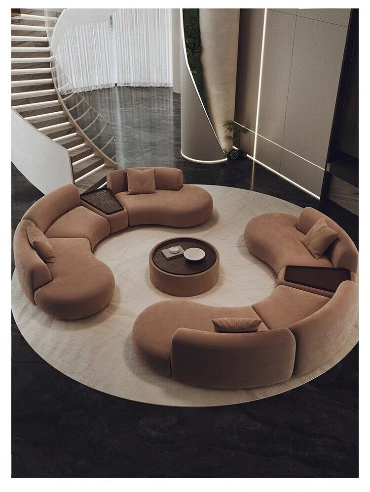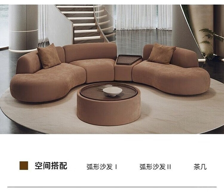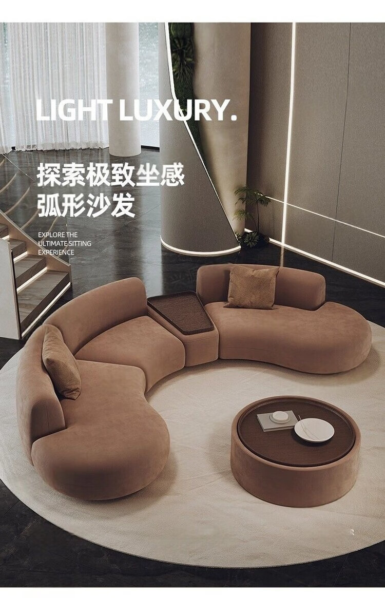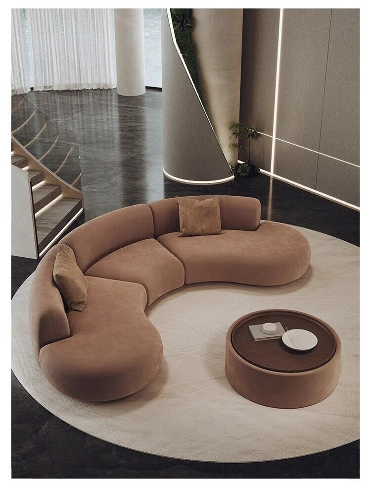 Changyin French light luxury curved brown hotel lobby beauty salon office sales office business rest reception negotiation sofa 2.8 meters long with side table + coffee table