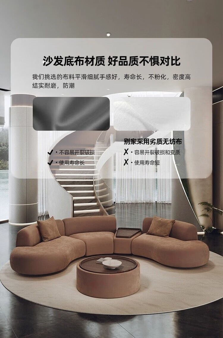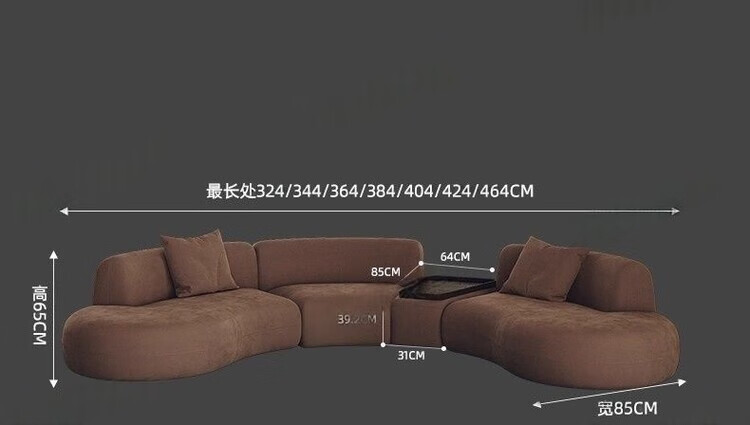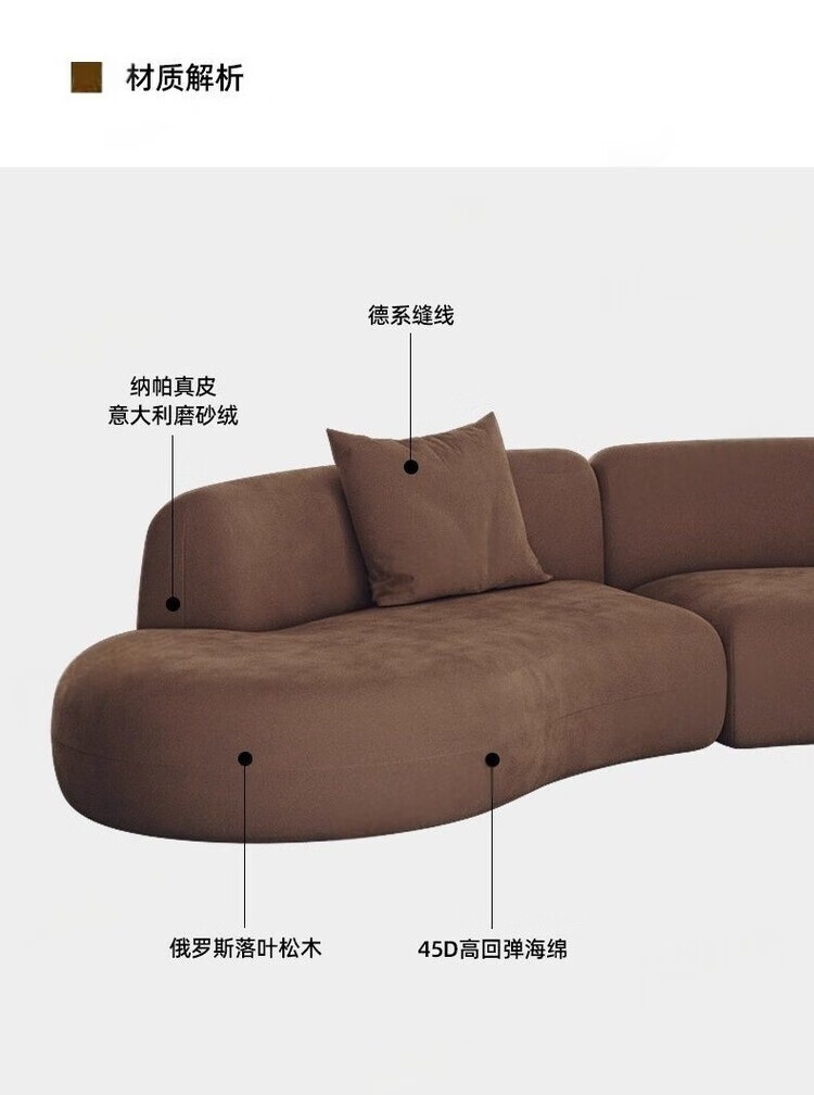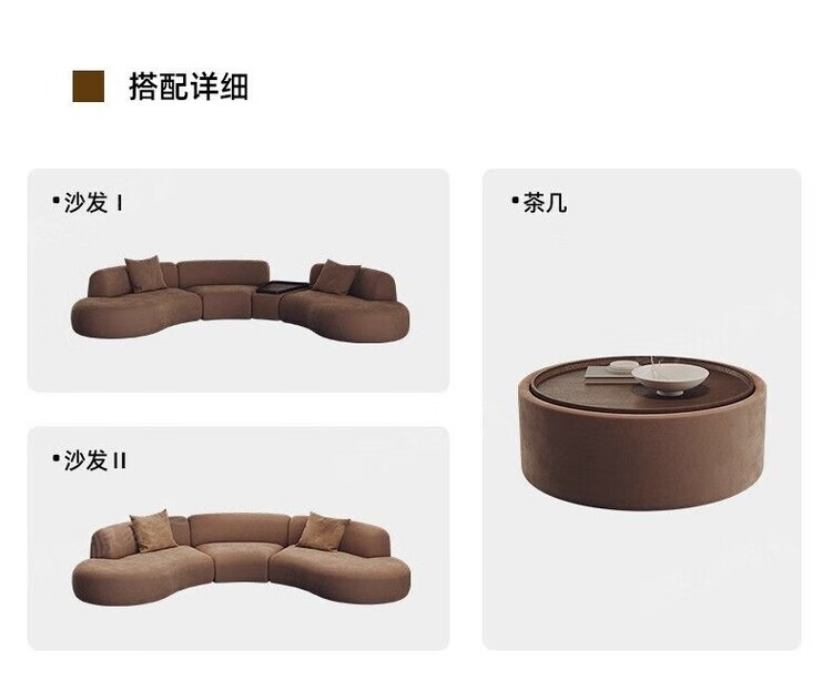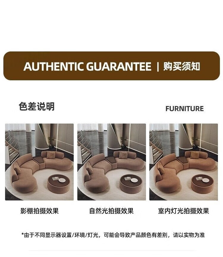Changyin French light luxury curved brown hotel lobby beauty salon office sales office business rest reception negotiation sofa 2.8 meters long with side table + coffee table