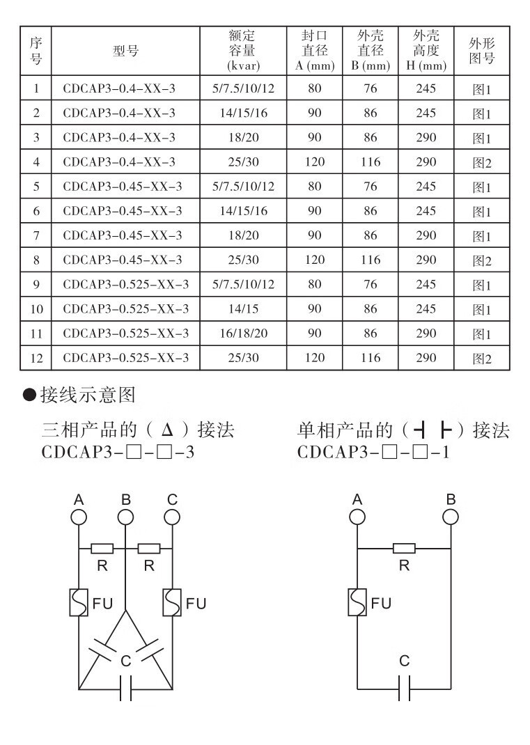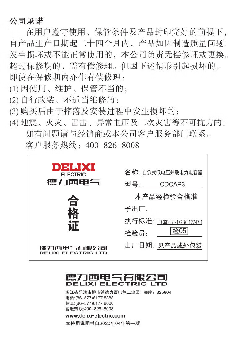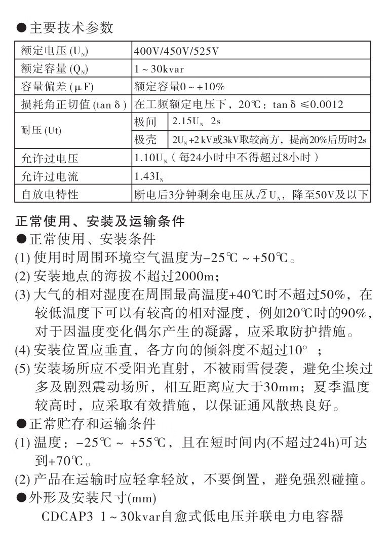 Delixi self-healing low-voltage parallel capacitor CDCAP3 cylindrical 0.45-30-3 15-16/20-25 CDCAP3-0.4-30-3