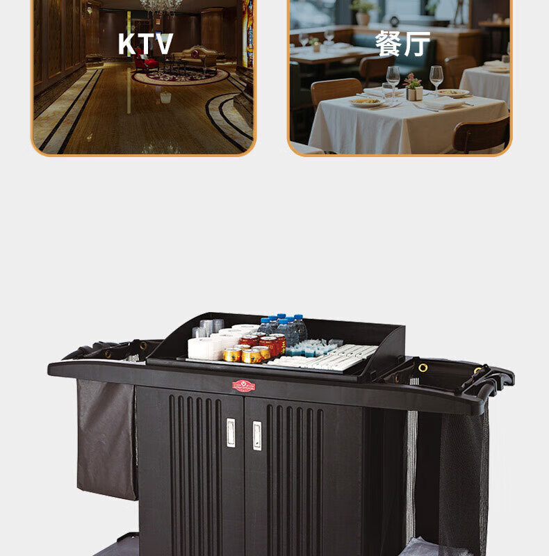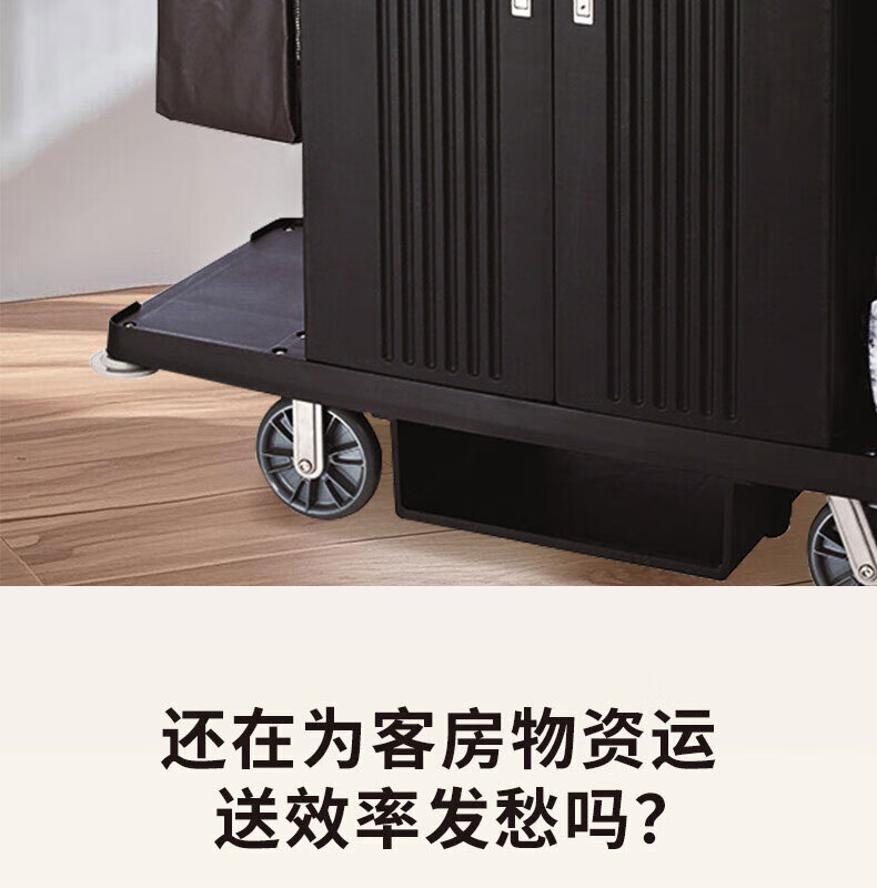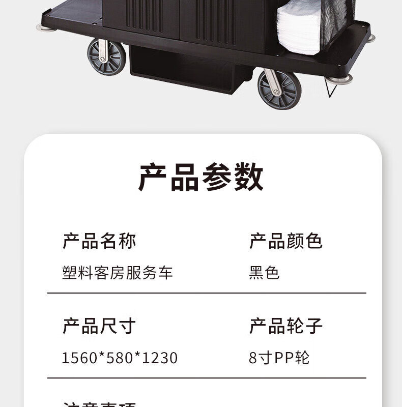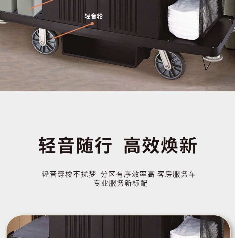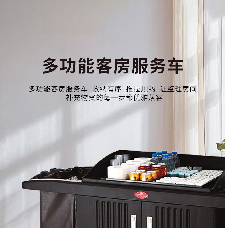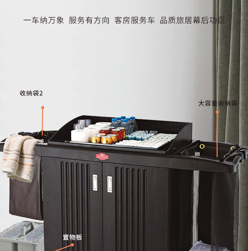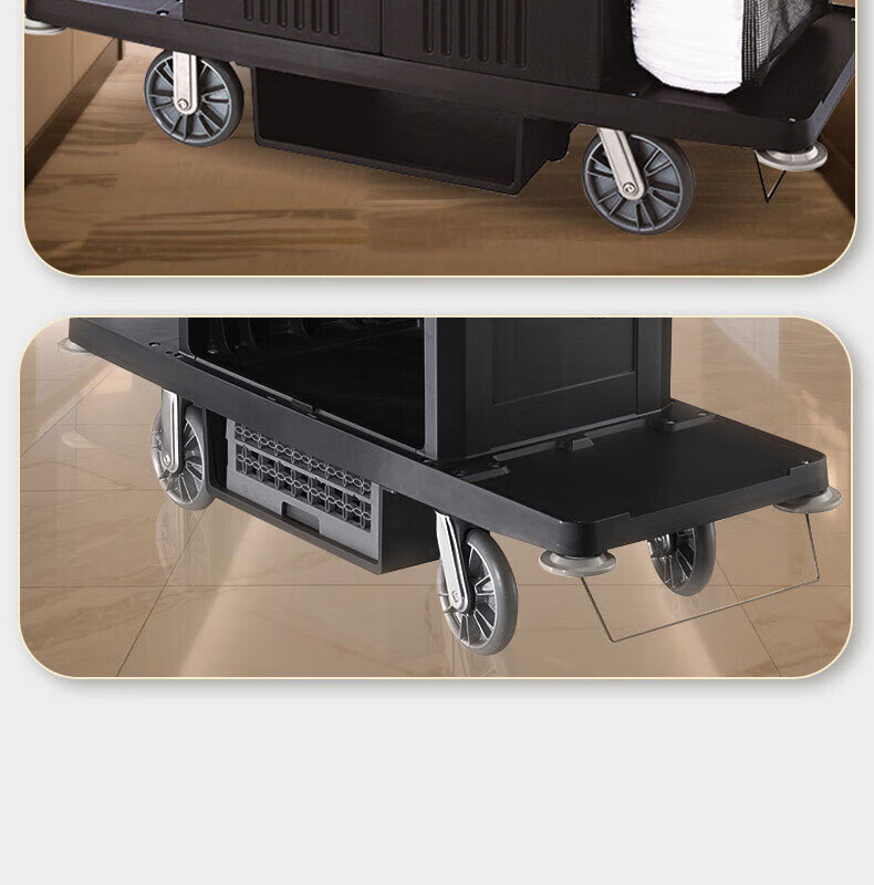GNF service cart, hotel linen cart, room service, hotel cleaning, multi-functional hand push cleaning cart, cleaning cart C-21, light luxury black, 6-inch PP wheel, with two cloth bags
