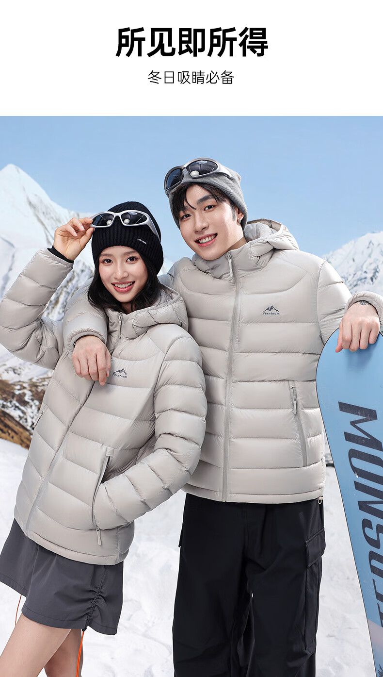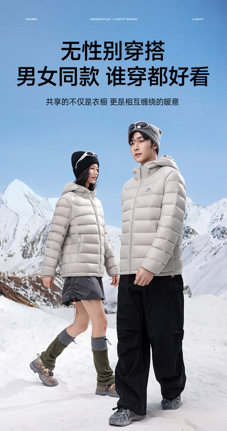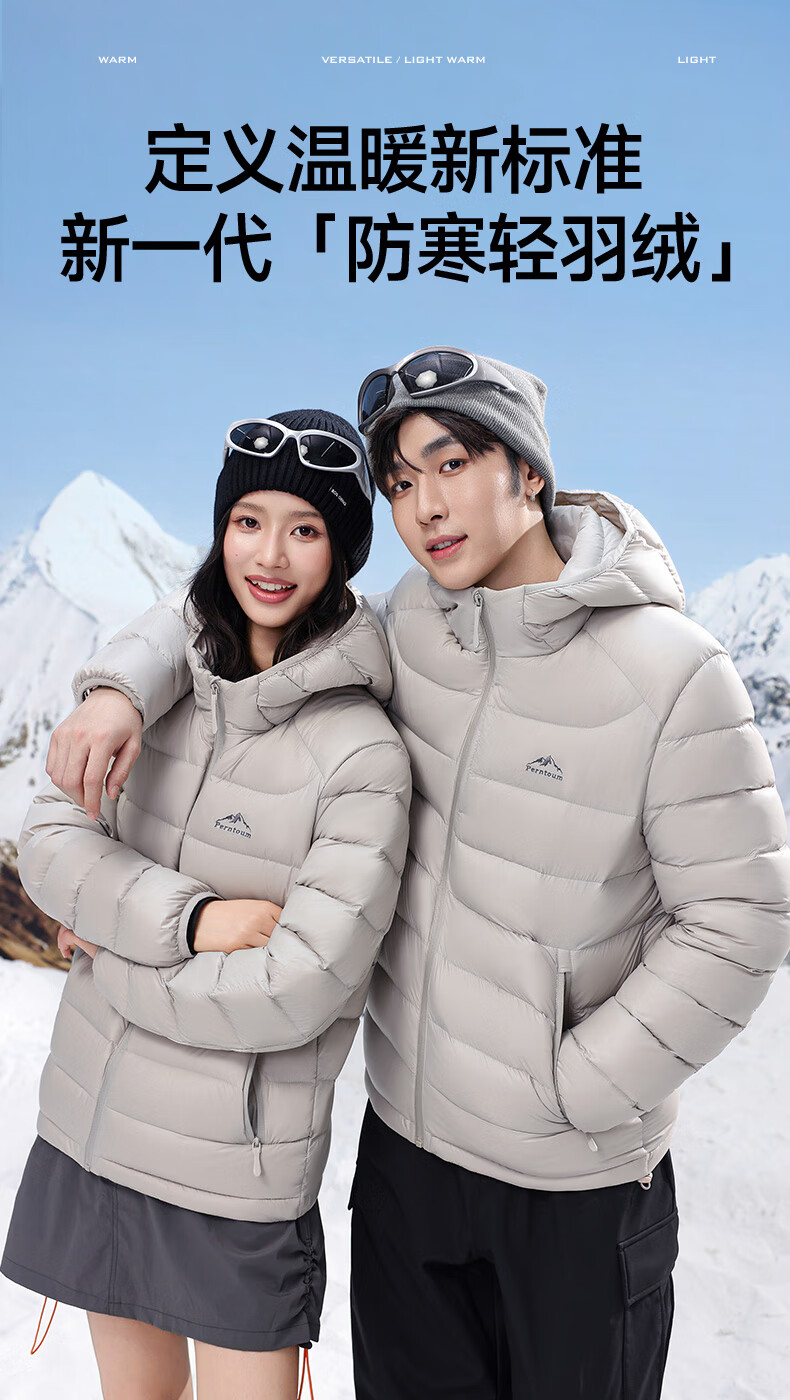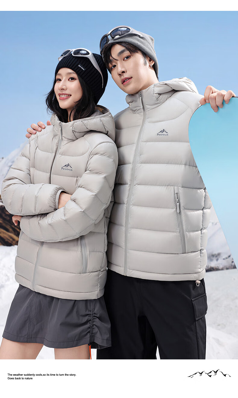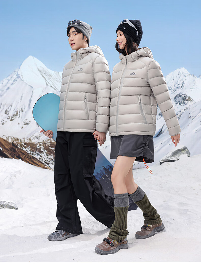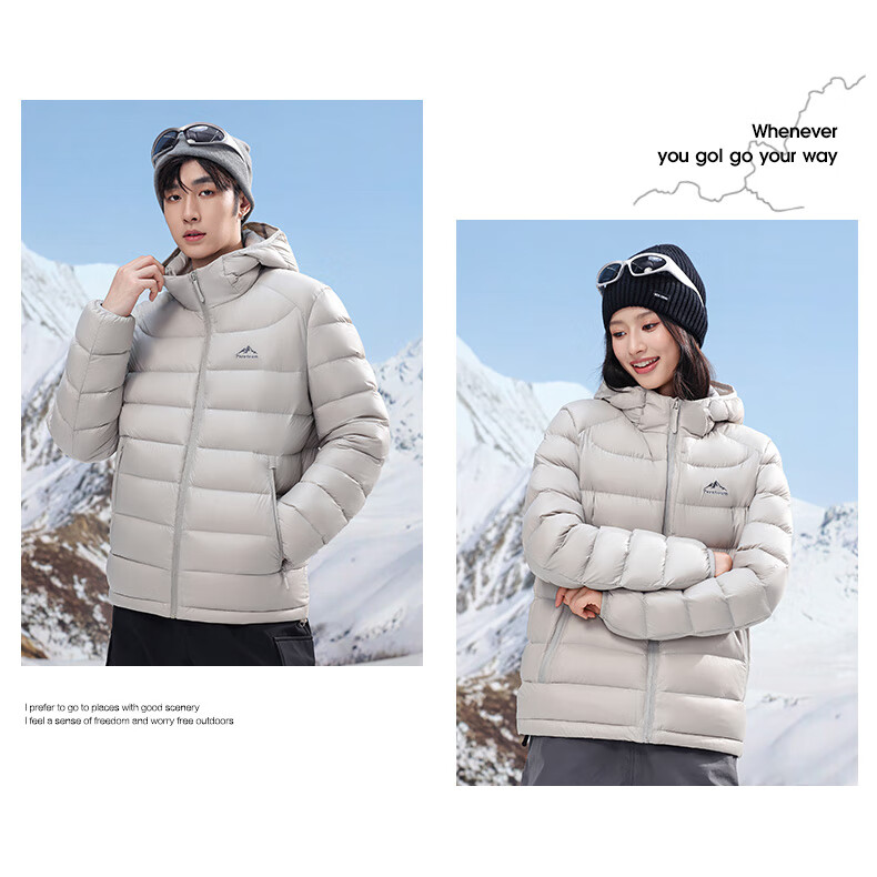 Yalu high-fill velvet 164g 2025 winter new thin couple down jacket men and women same style rib hooded jacket beige-8816 same style for men and women XL recommended 135-150 catties