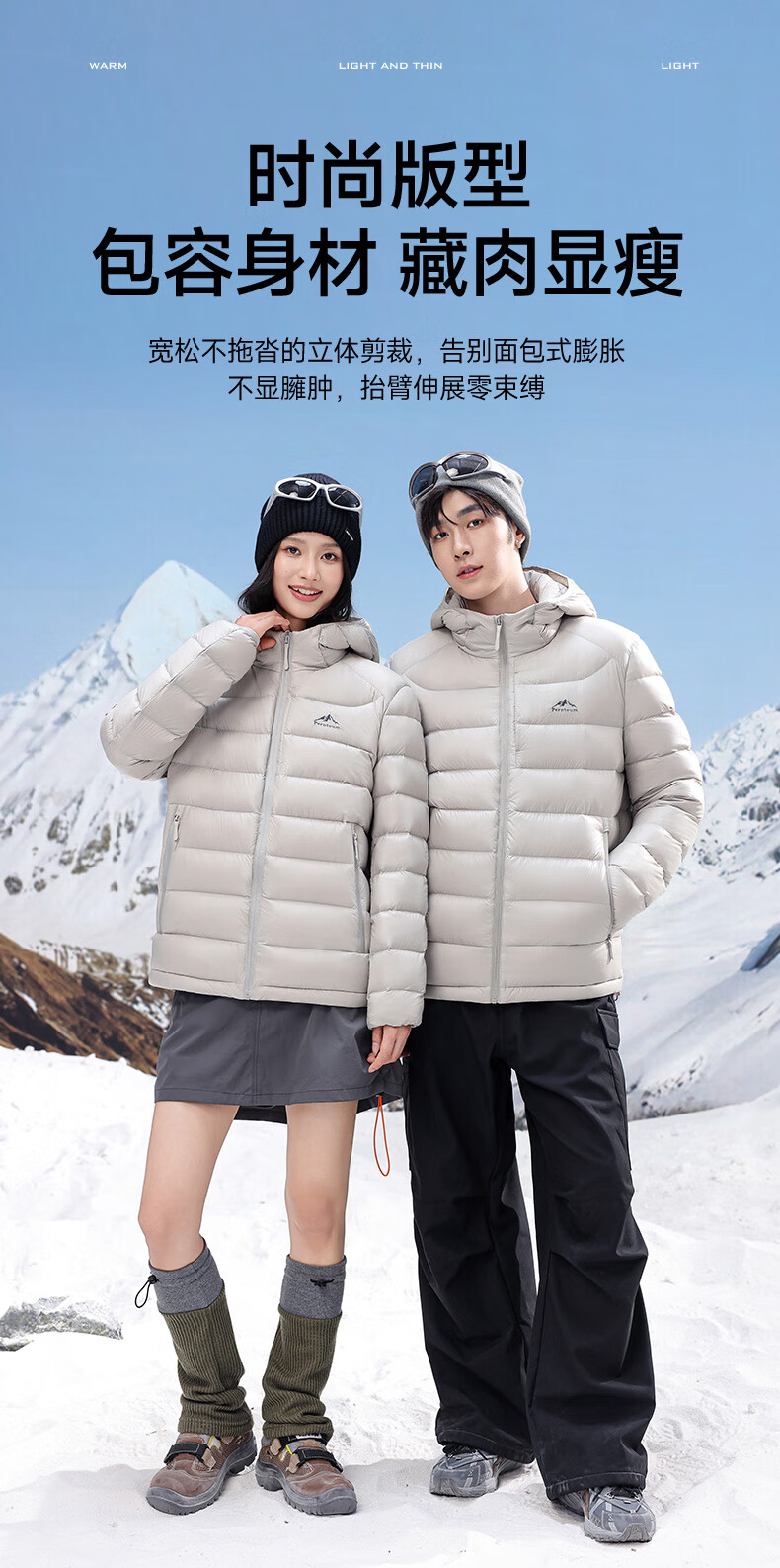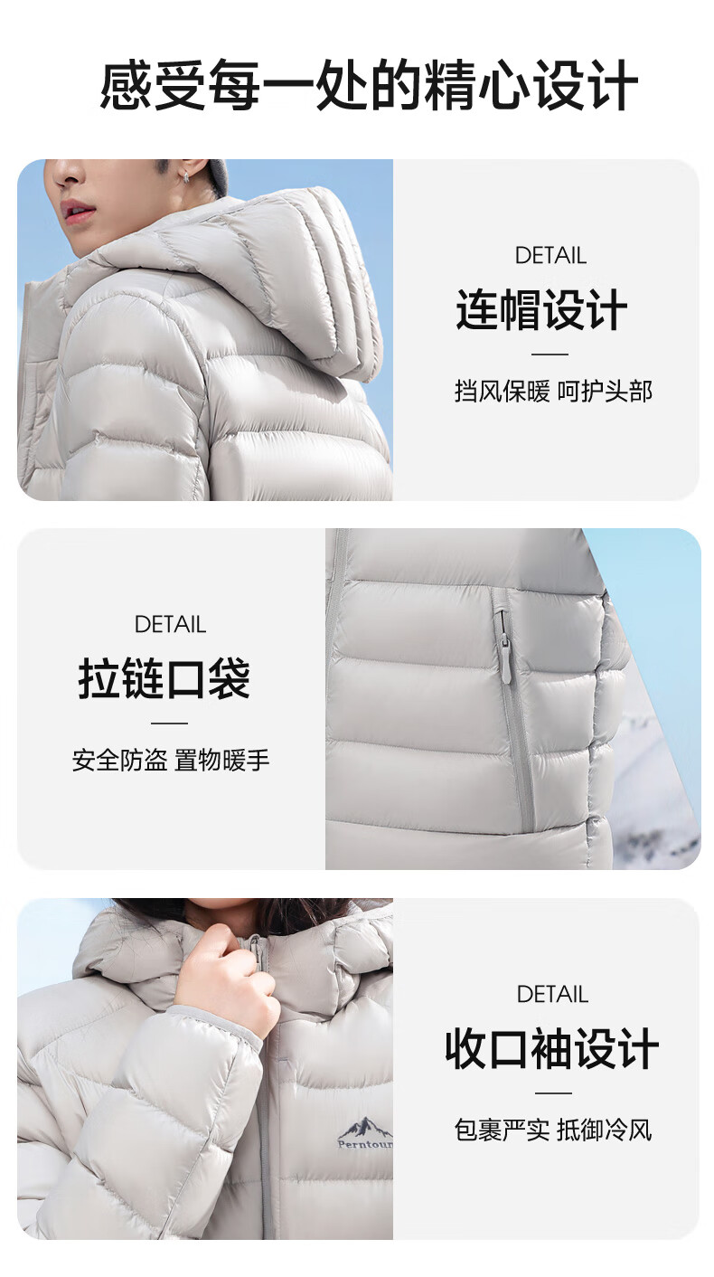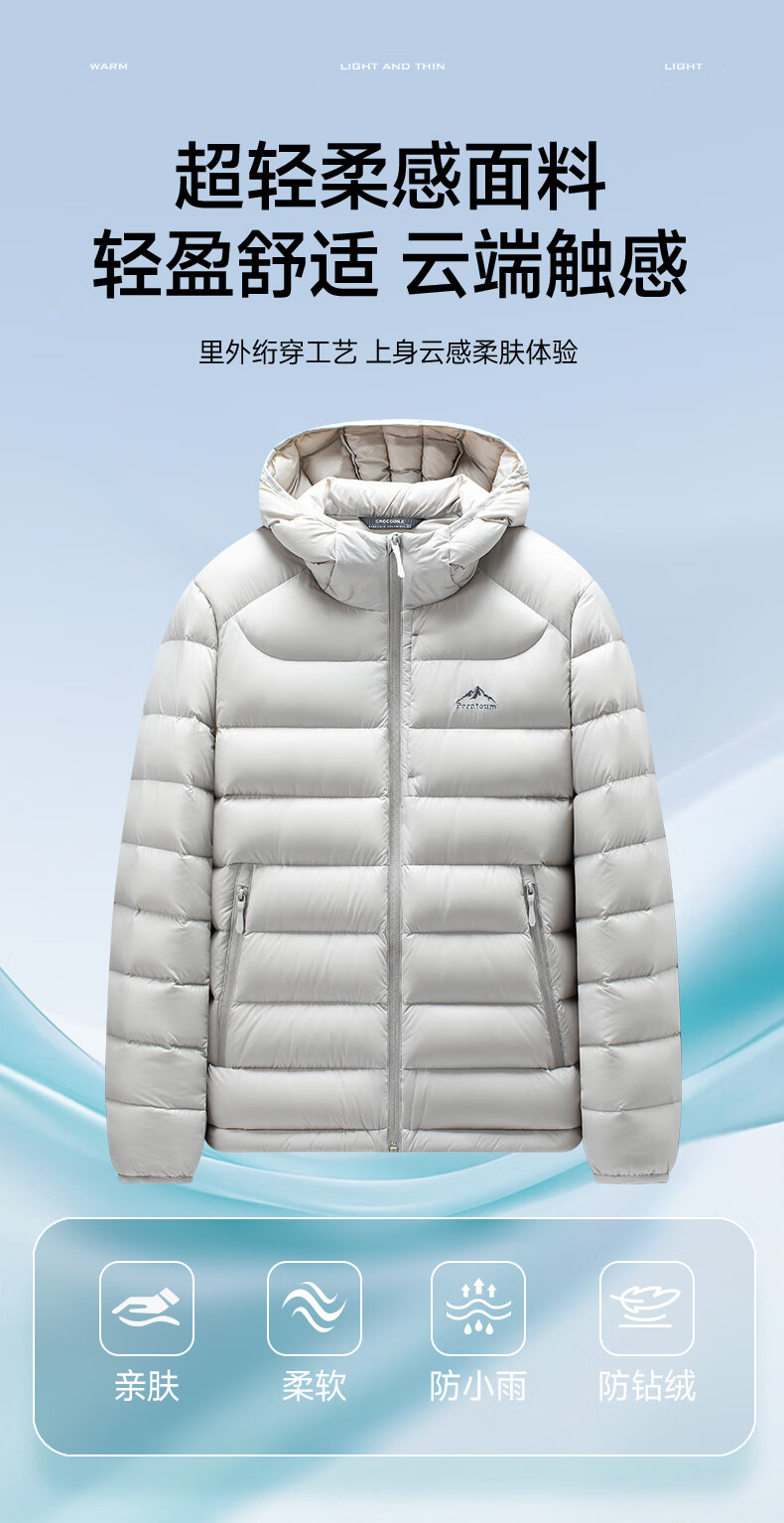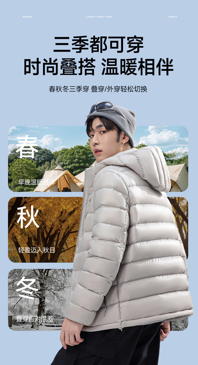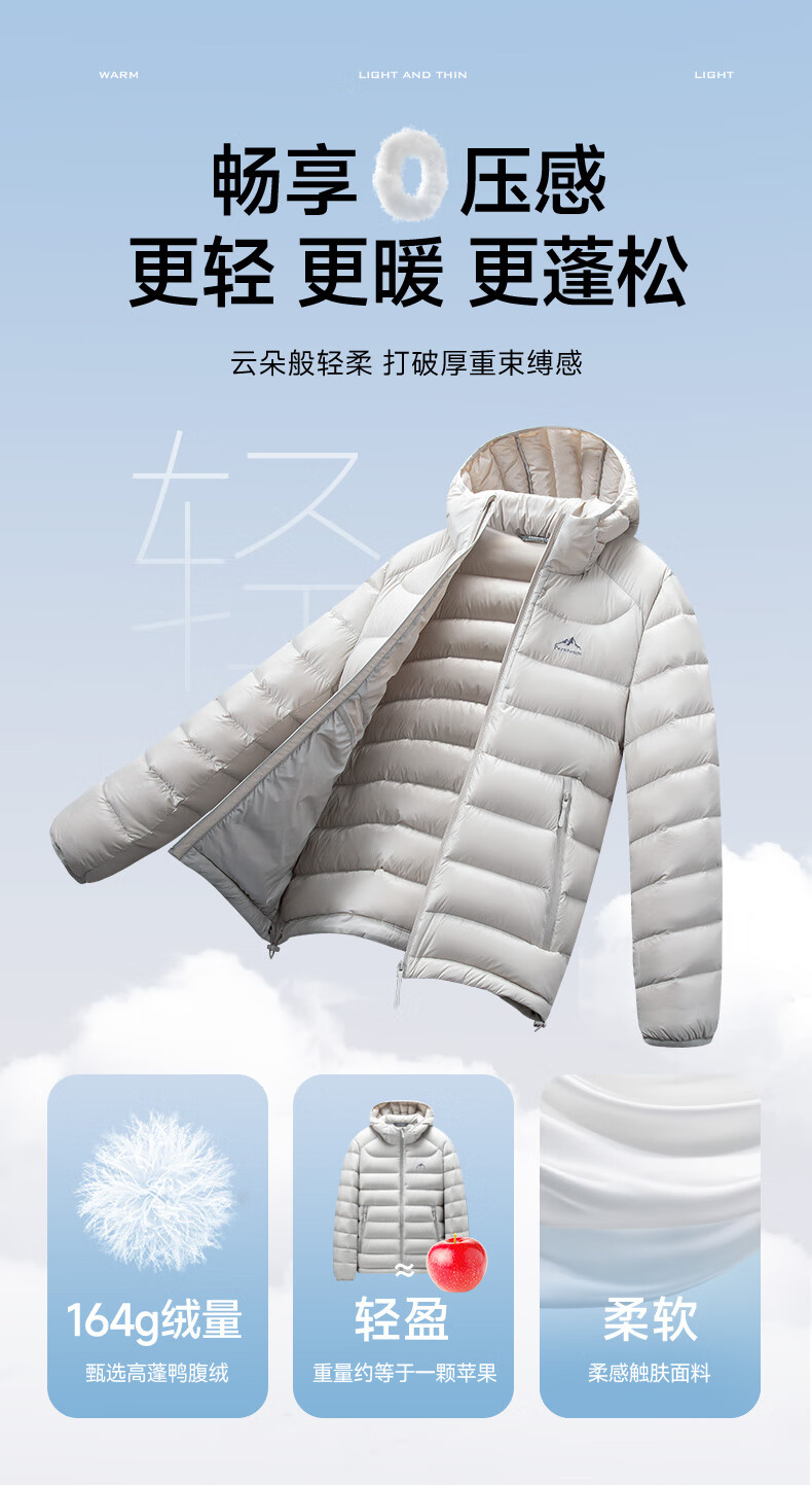 Yalu high-fill velvet 164g 2025 winter new thin couple down jacket men and women same style rib hooded jacket beige-8816 same style for men and women XL recommended 135-150 catties