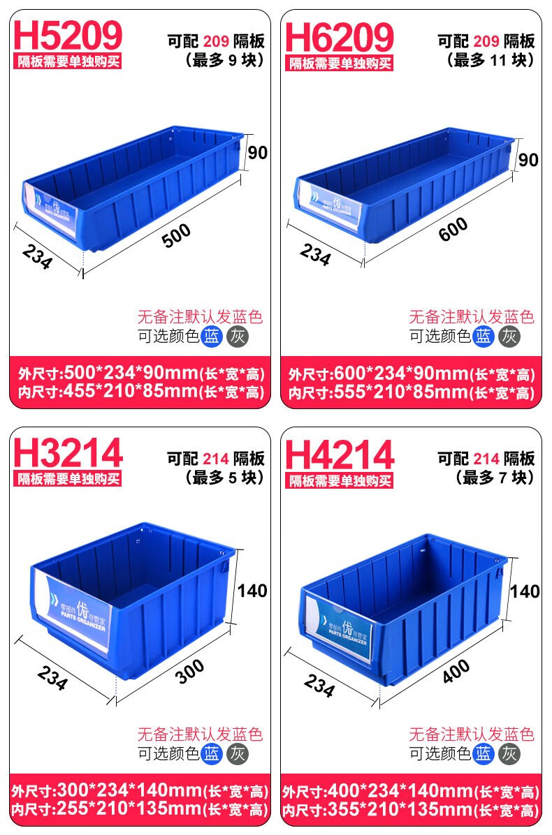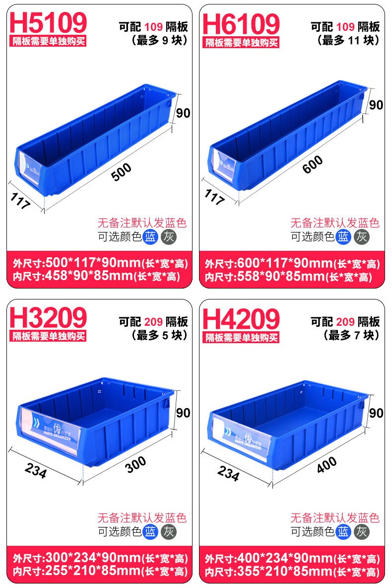 Turnover box filter long storage box separated parts box plastic box hardware tool accessories storage box partition thickened outer 400x117x90 gray