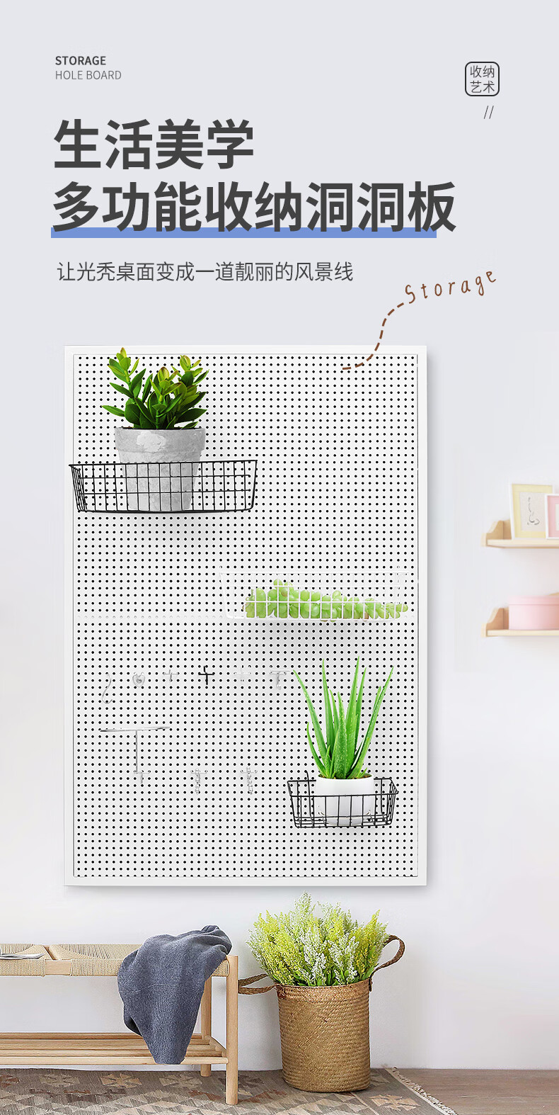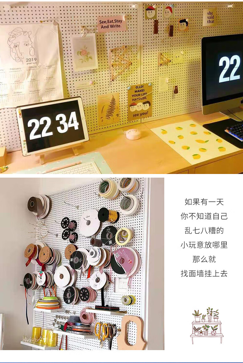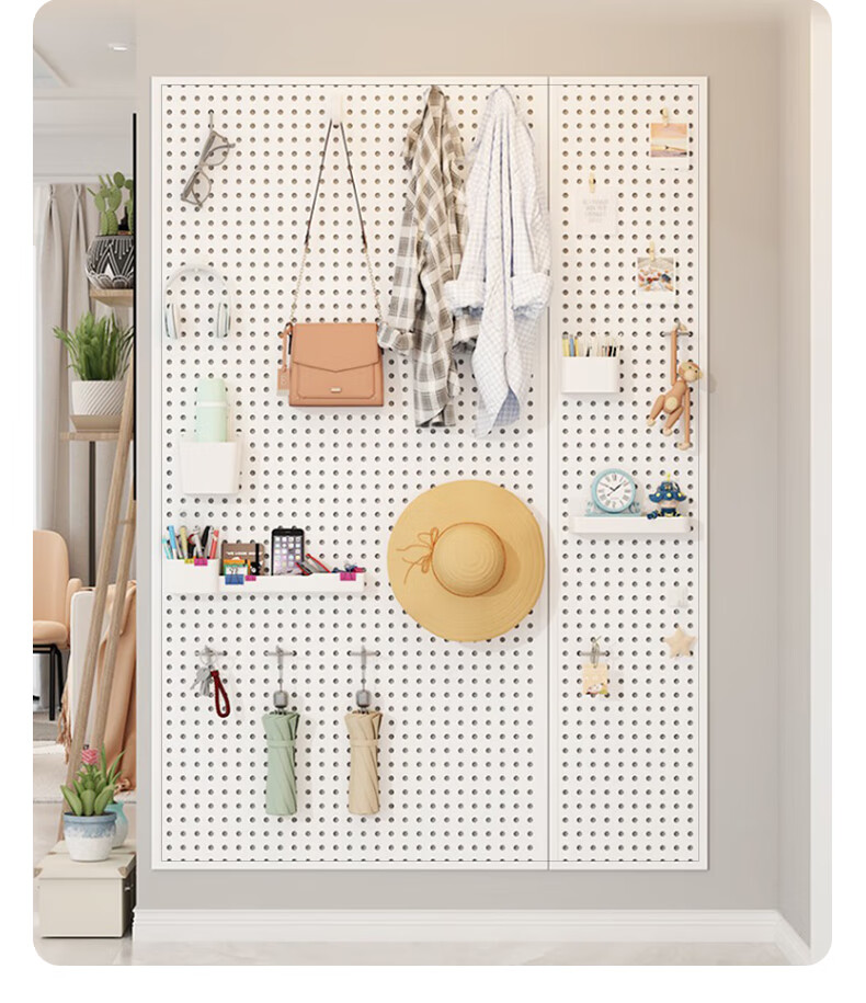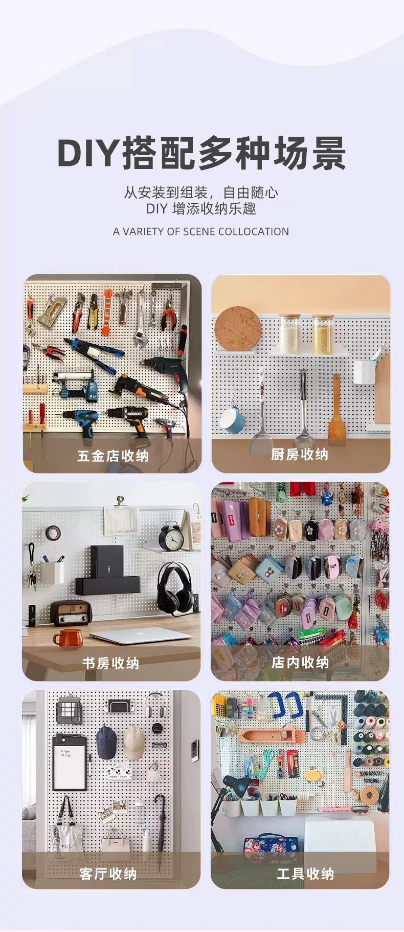 He Jiagong round hole hole board storage rack shelf stainless steel multi-functional storage hanging socks jewelry hardware tools hanging board wall white 50*100 with frame thickened version free 20 pieces 10
