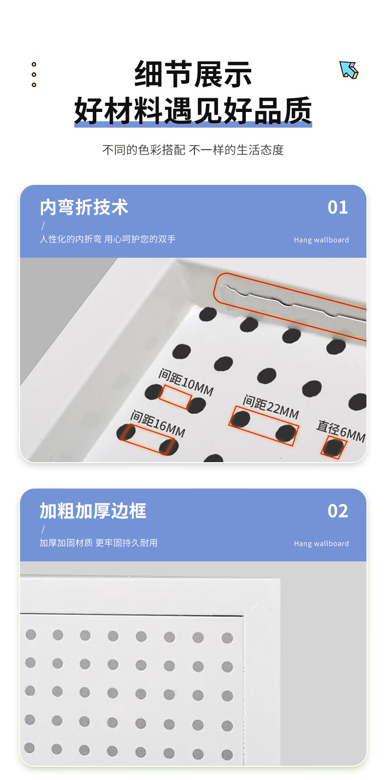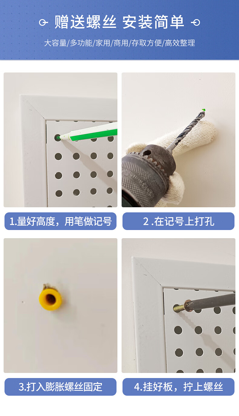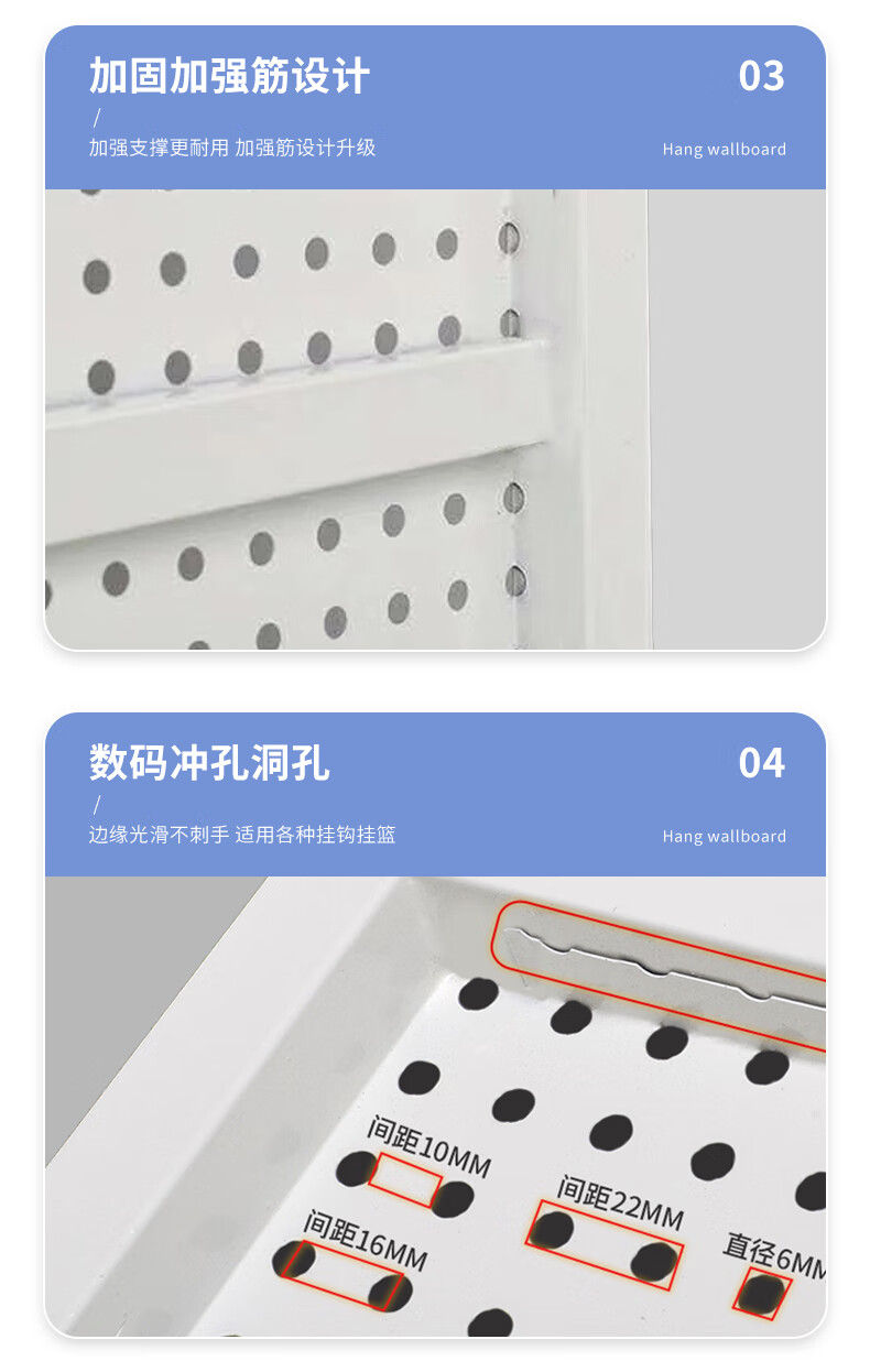 He Jiagong round hole hole board storage rack shelf stainless steel multi-functional storage hanging socks jewelry hardware tools hanging board wall white 50*100 with frame thickened version free 20 pieces 10