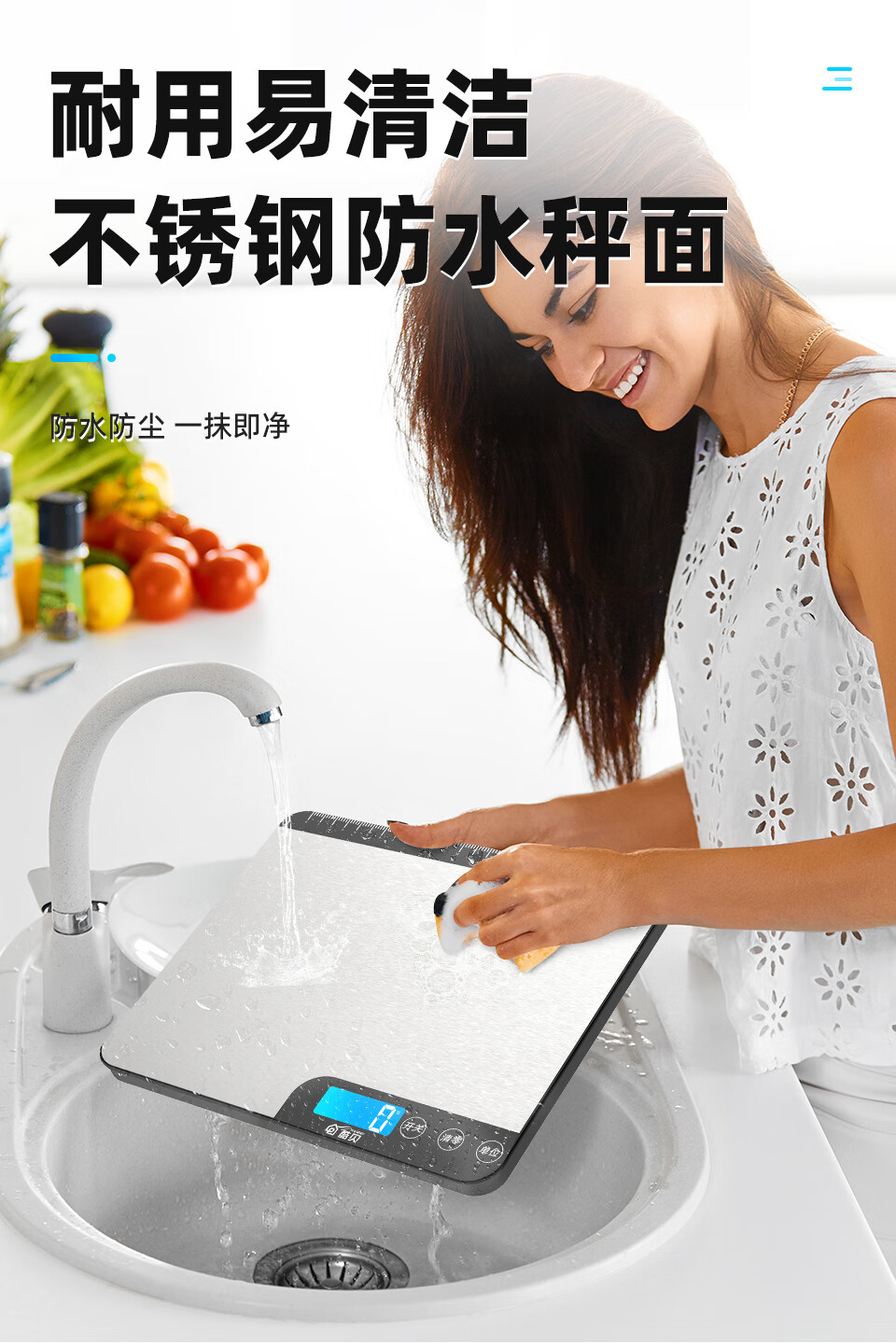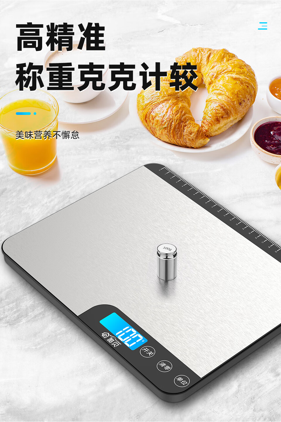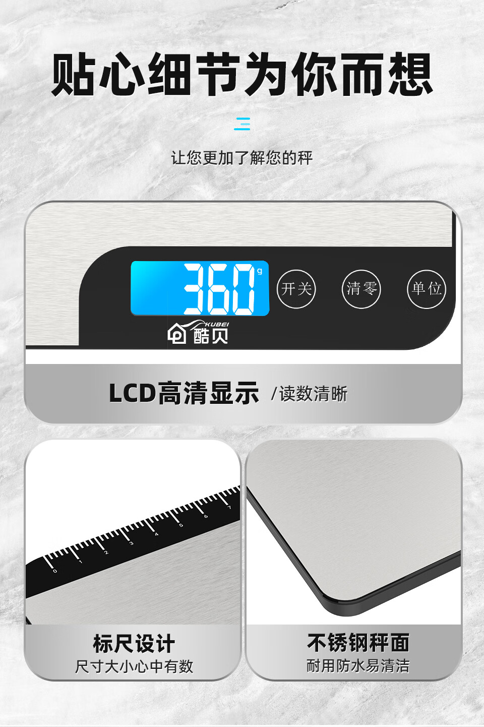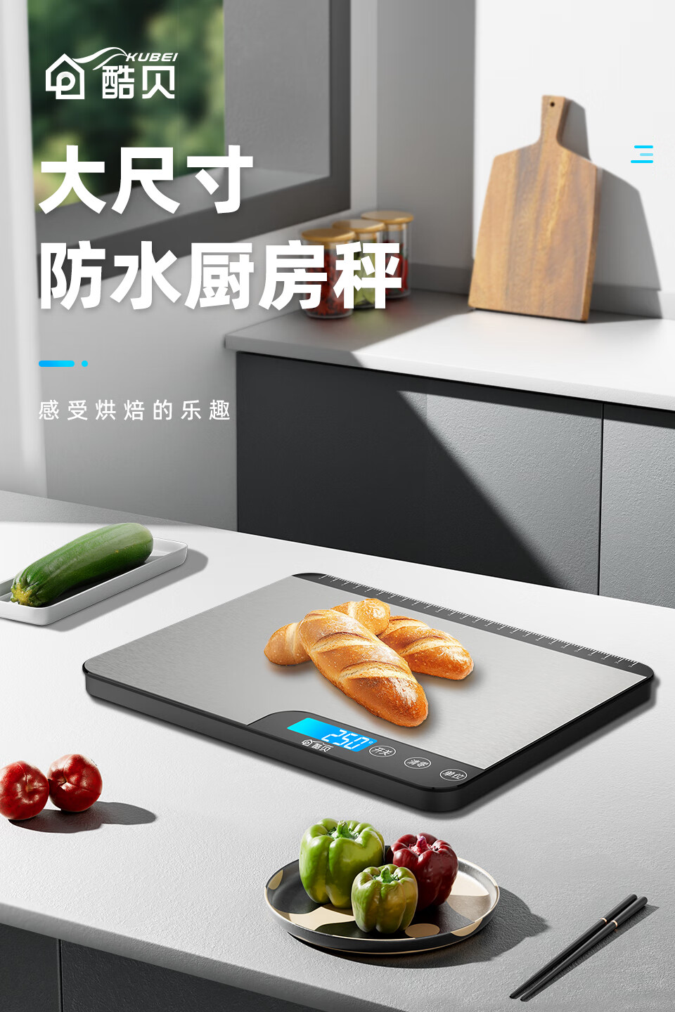 Kubei precision kitchen electronic scale waterproof household small supplementary food special gram scale rechargeable baking tool weighing large size three-use silver 10kg/1g scale surface waterproof