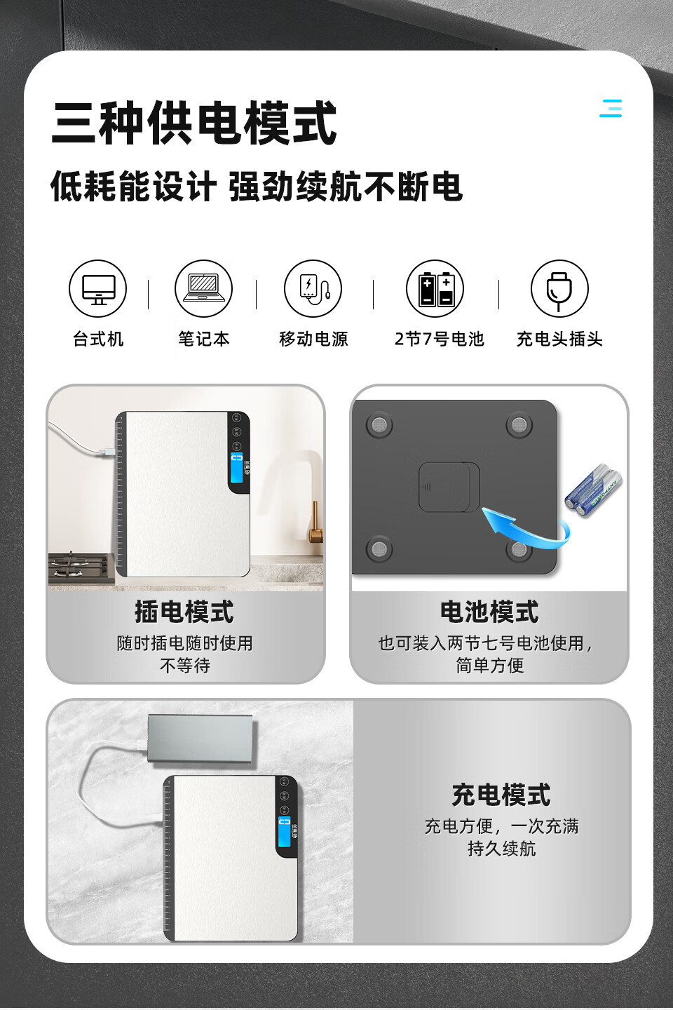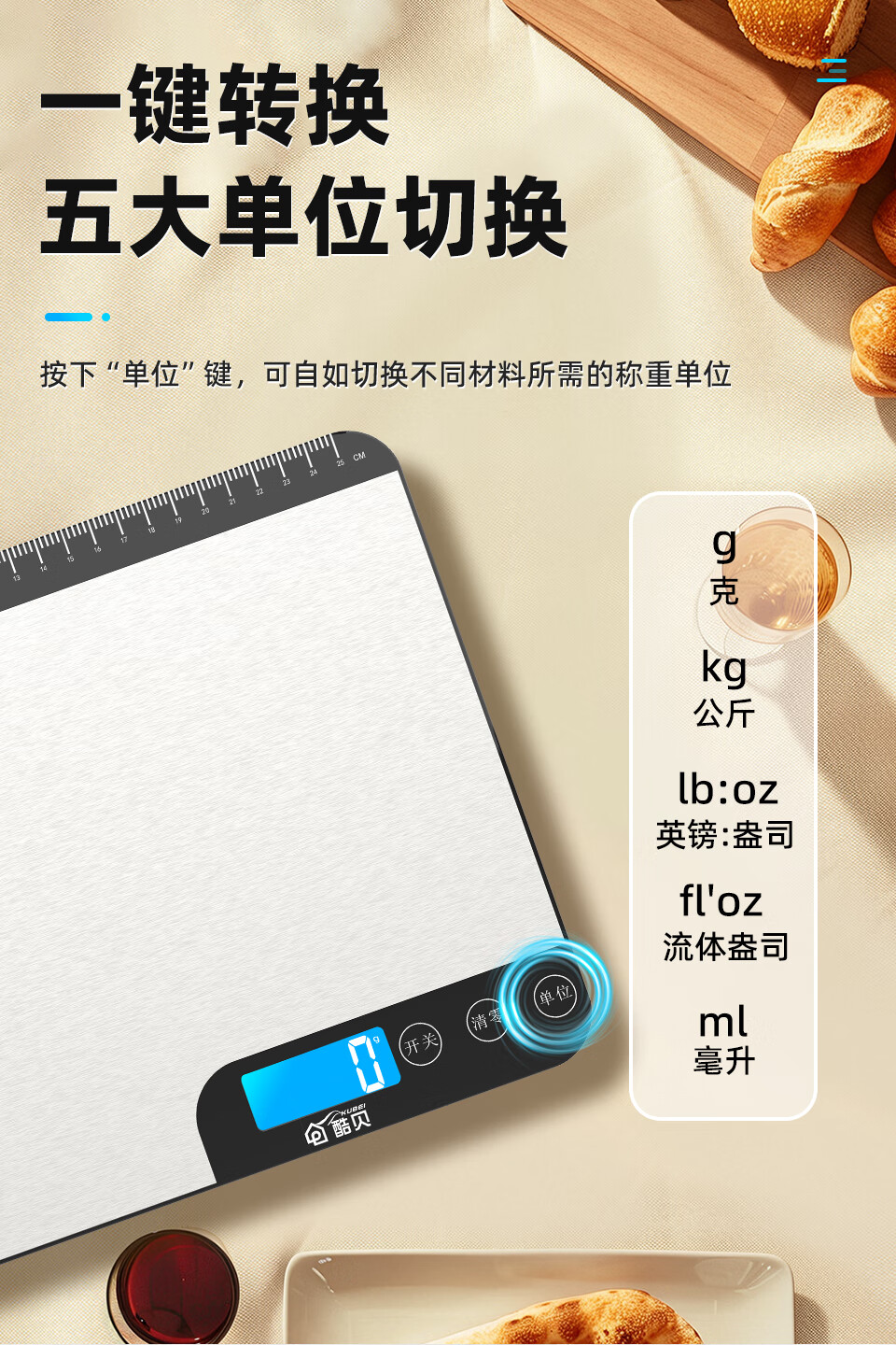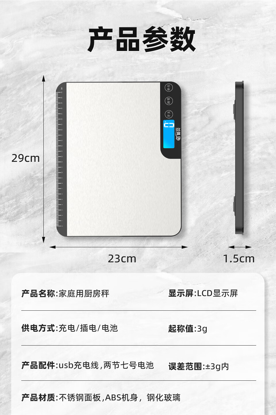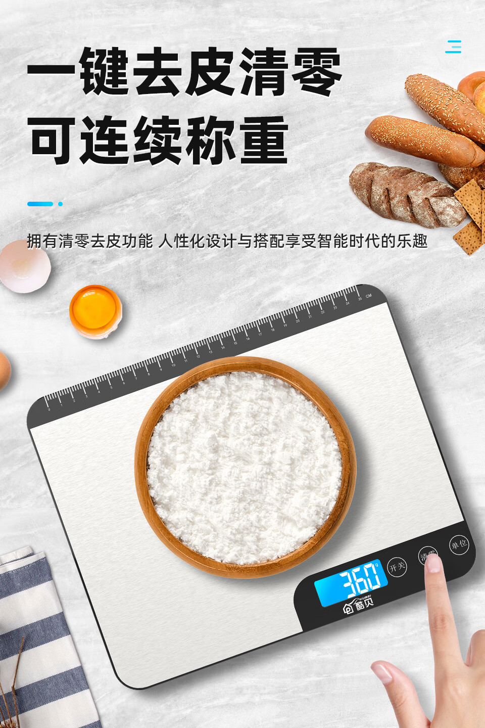 Kubei precision kitchen electronic scale waterproof household small supplementary food special gram scale rechargeable baking tool weighing large size three-use silver 10kg/1g scale surface waterproof