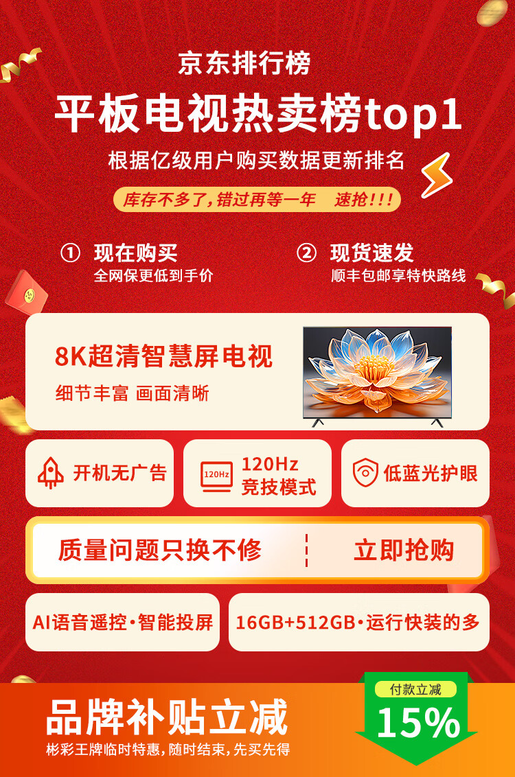 Bincai Ace Top 10 TVs New Frameless 8K LCD TV Ultra HD Anti-Blue Light Intelligent Eye Protection Network Living Room Home Wireless Projection Voice TV 75-inch 8K Ultra-clear Android 9.0 Ultimate Edition High-end 9.0 Ultimate Edition 16+512+ Door-to-door Installation + Member Viewing