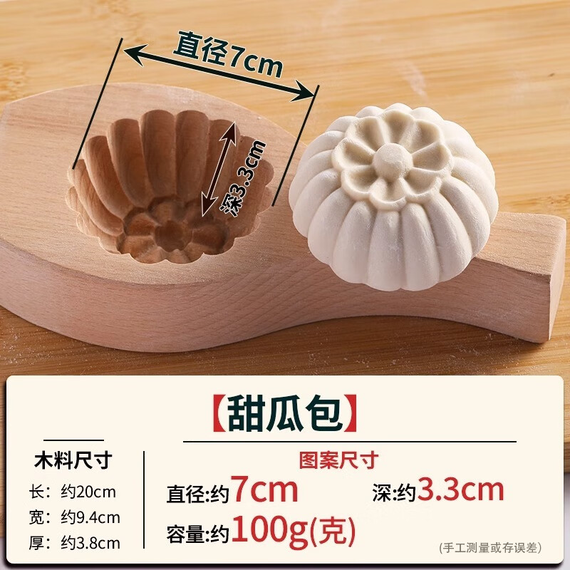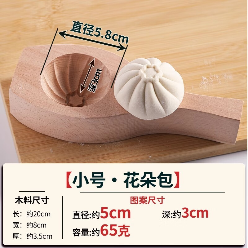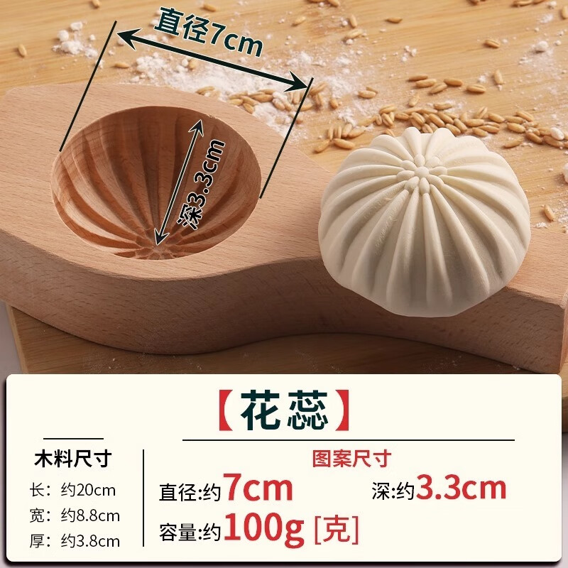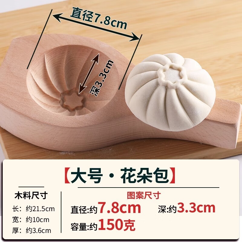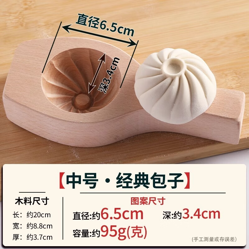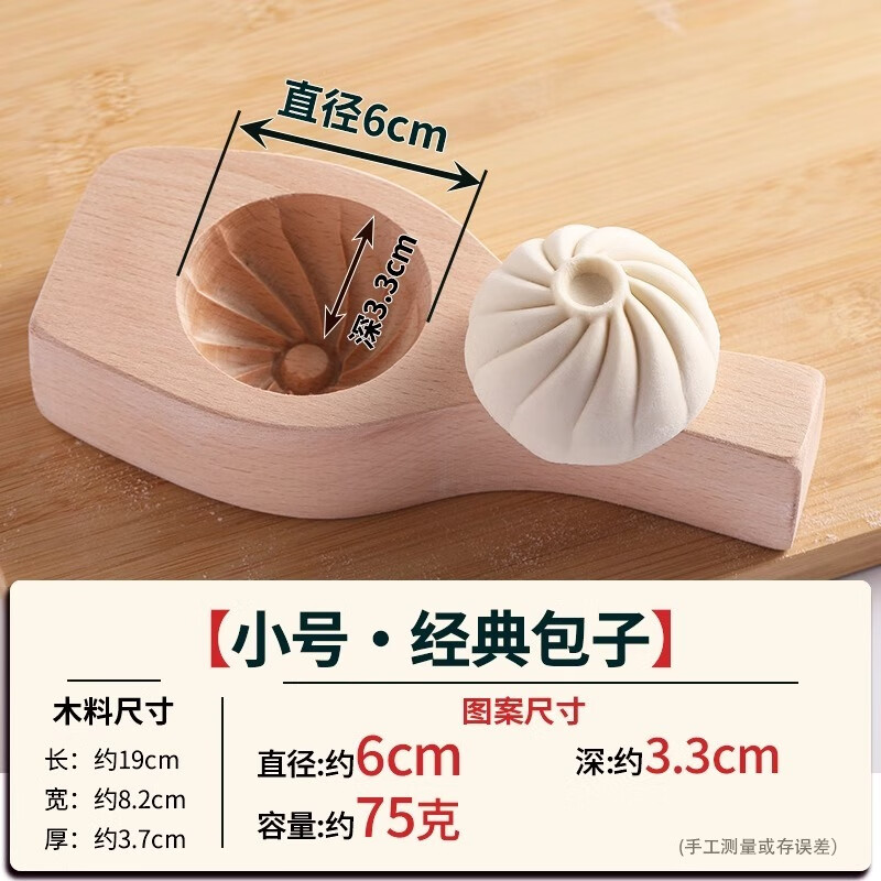 Yusenyi bun mold small fried bun large steamed vegetable bun round wooden tool household new beech wood three-dimensional large traditional round bun - about 110 grams