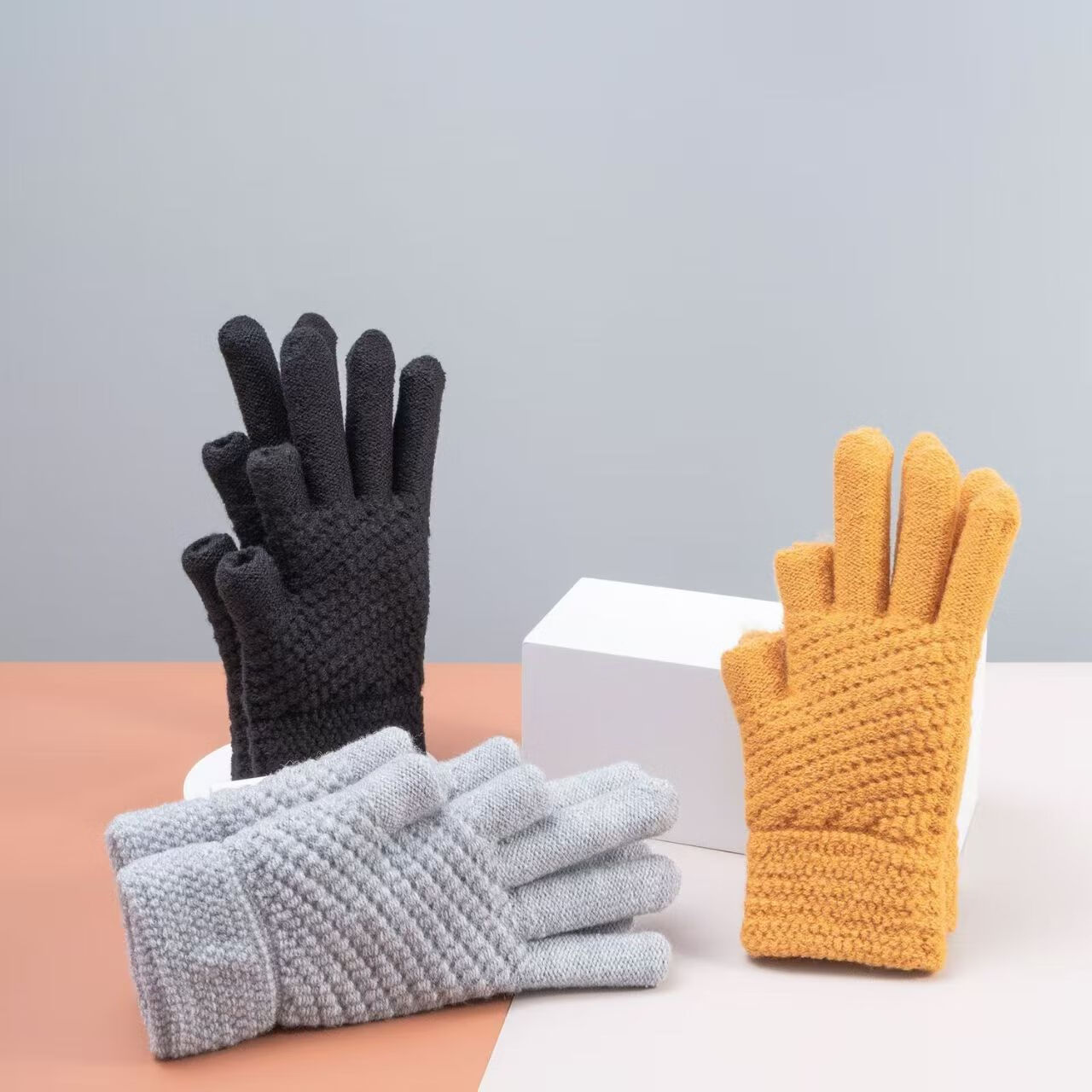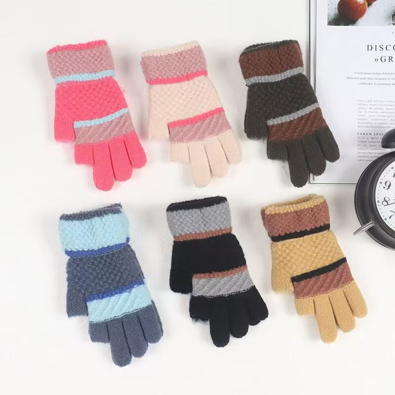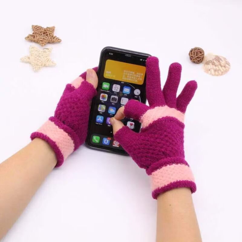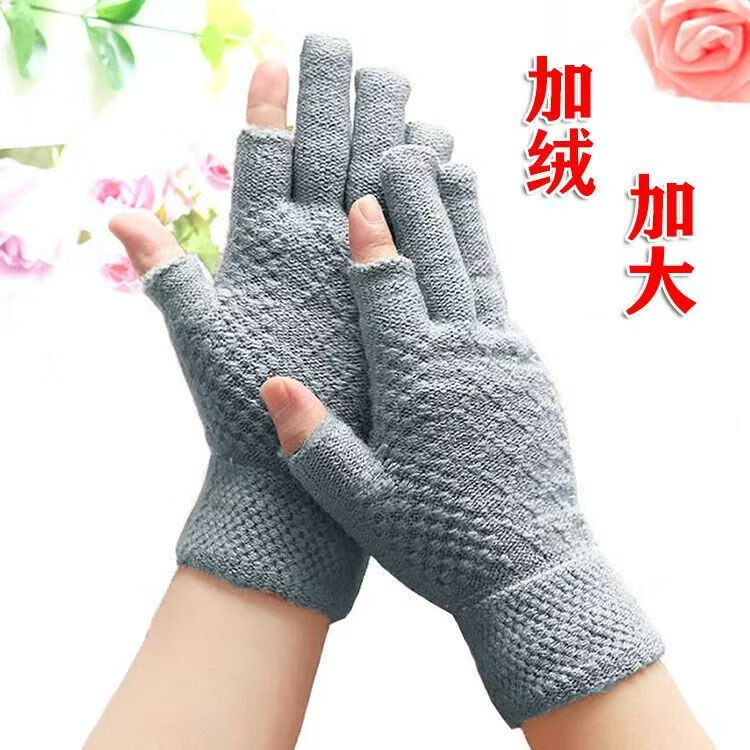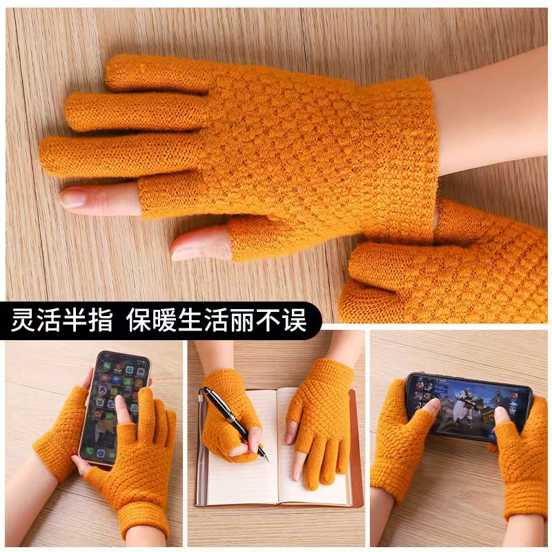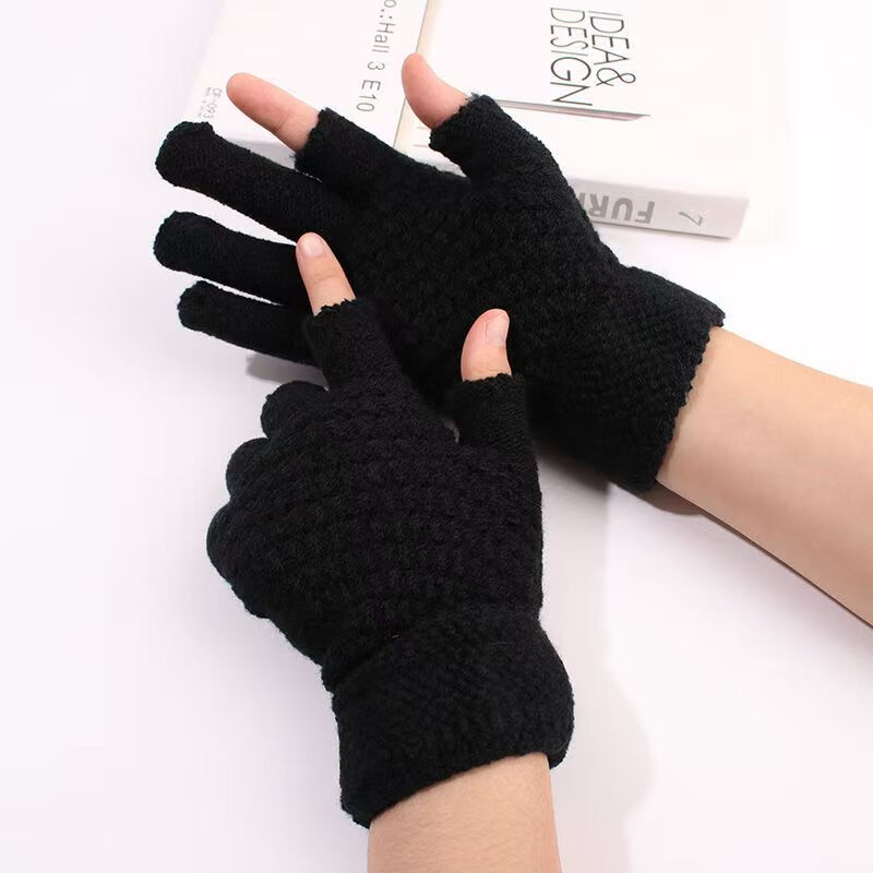 Two-fingered autumn and winter men's and women's velvet finger-exposed writing gloves warm knitted split-finger gloves Thickened women's color matching random colors 1 pair
