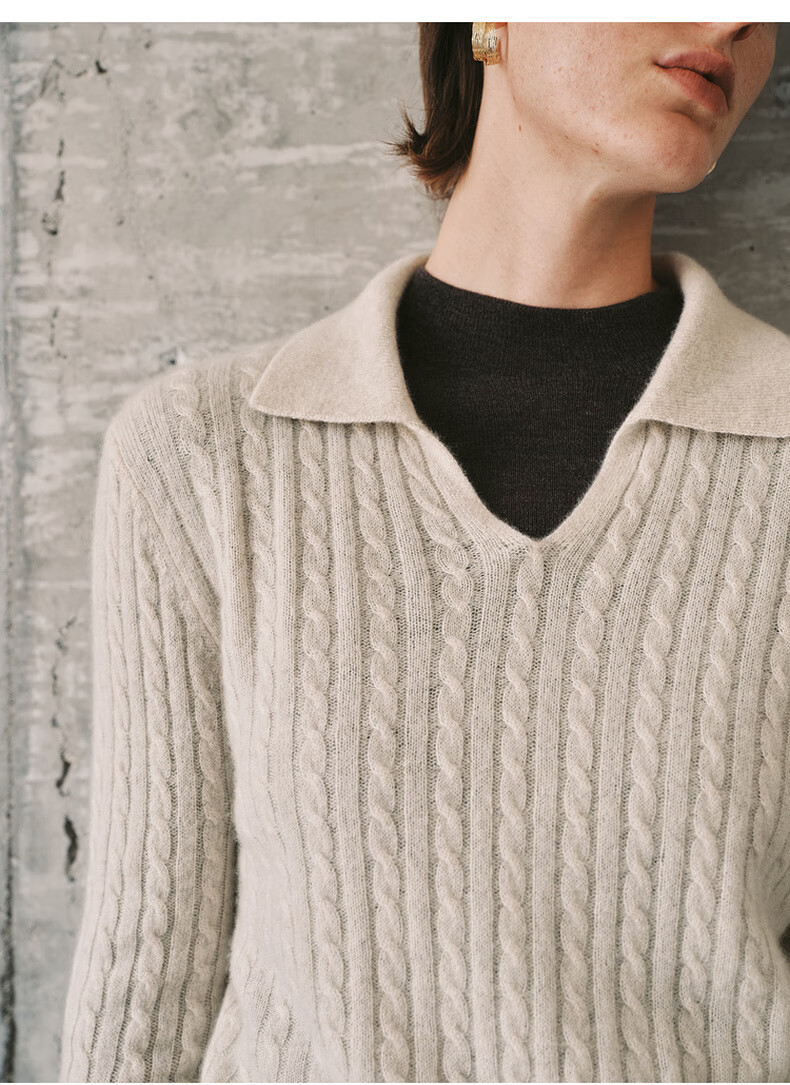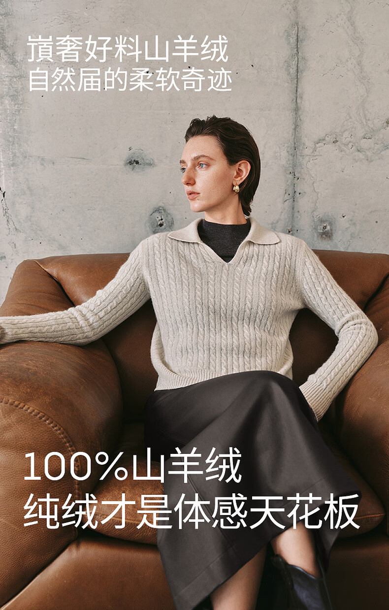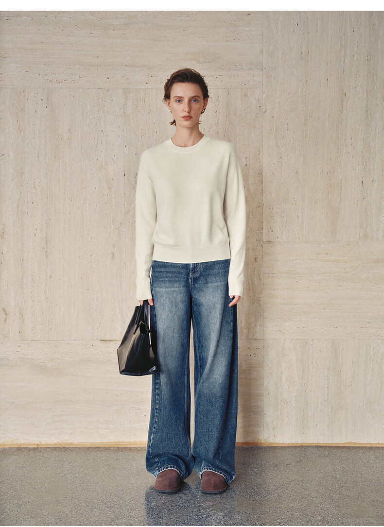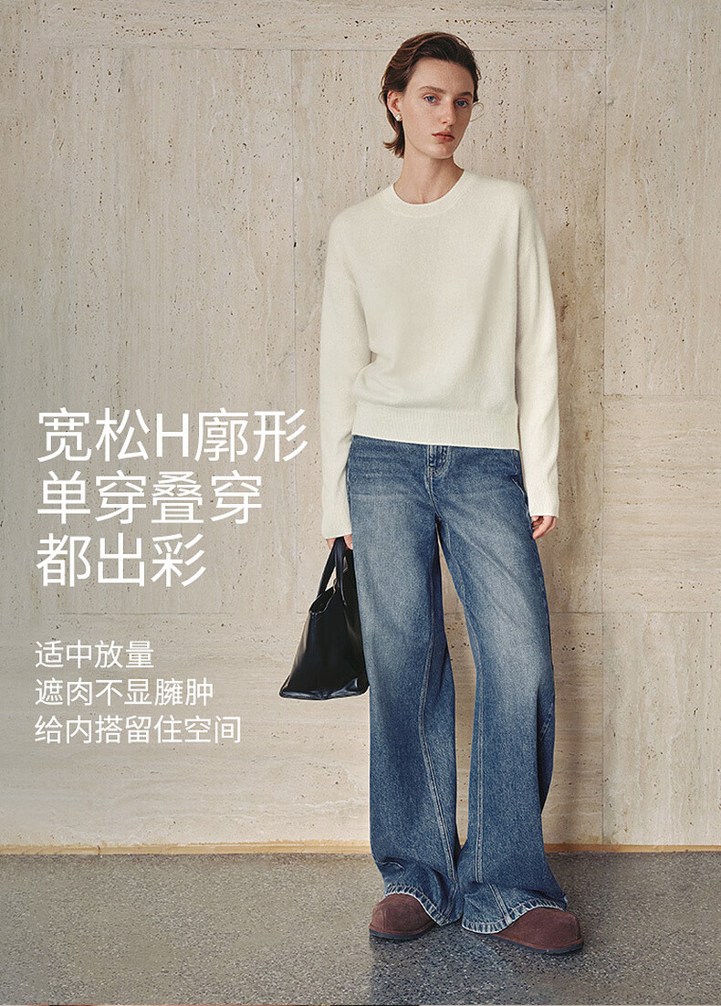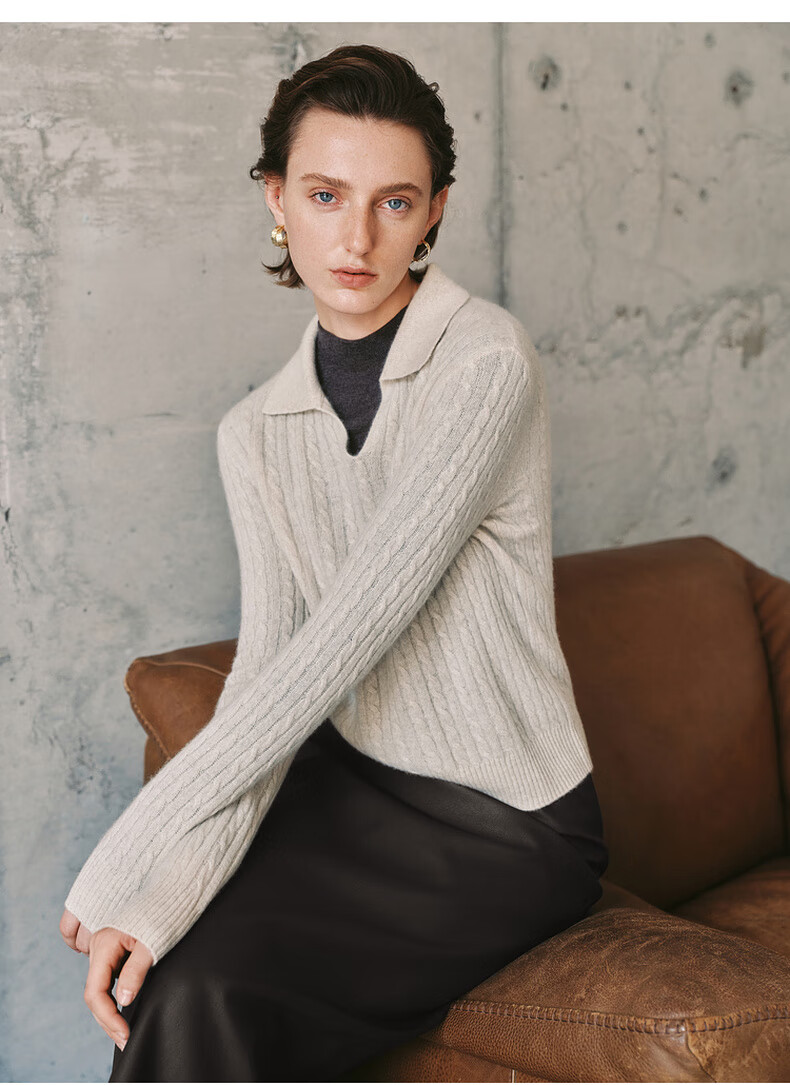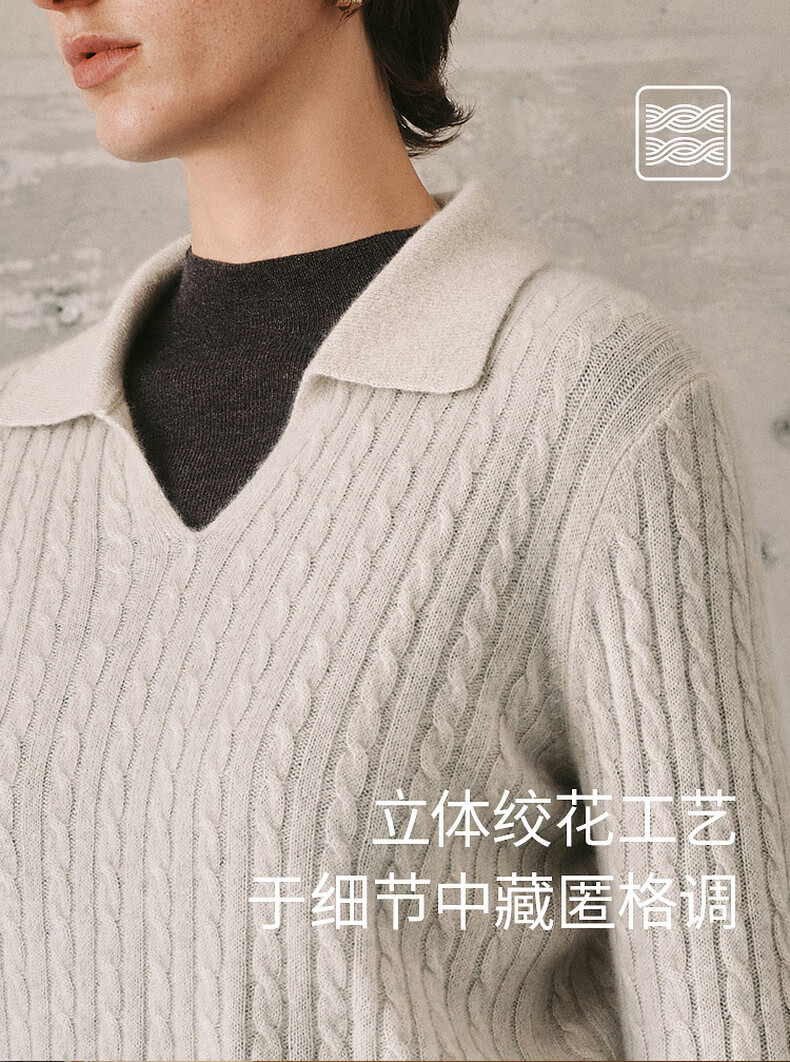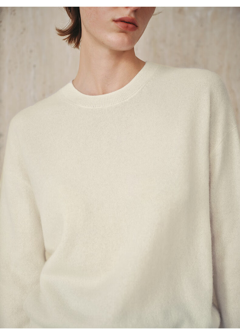 Maimeng 100% cashmere cable series MM loose lazy wool sweater sweater top 25 autumn and winter new round neck - raw velvet white 5GA934231 L