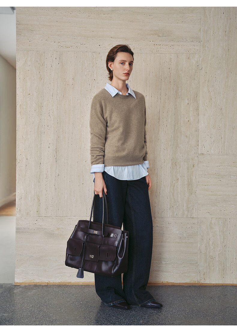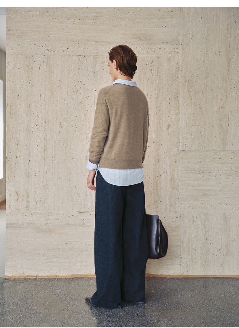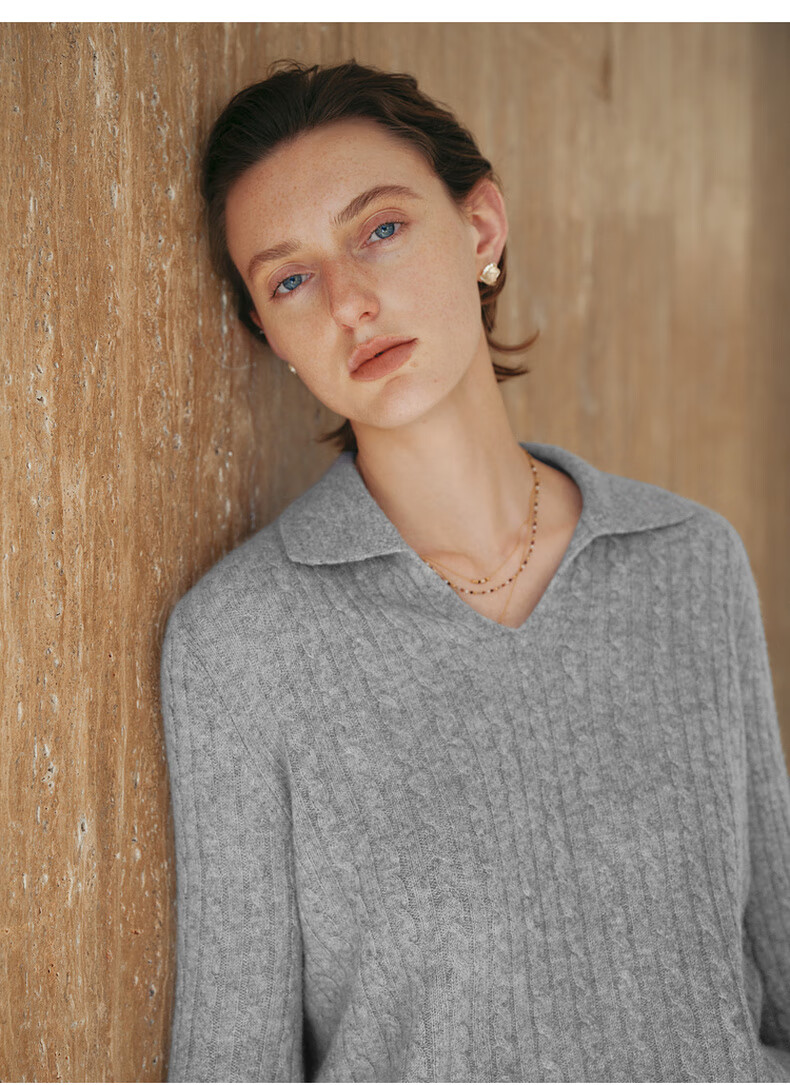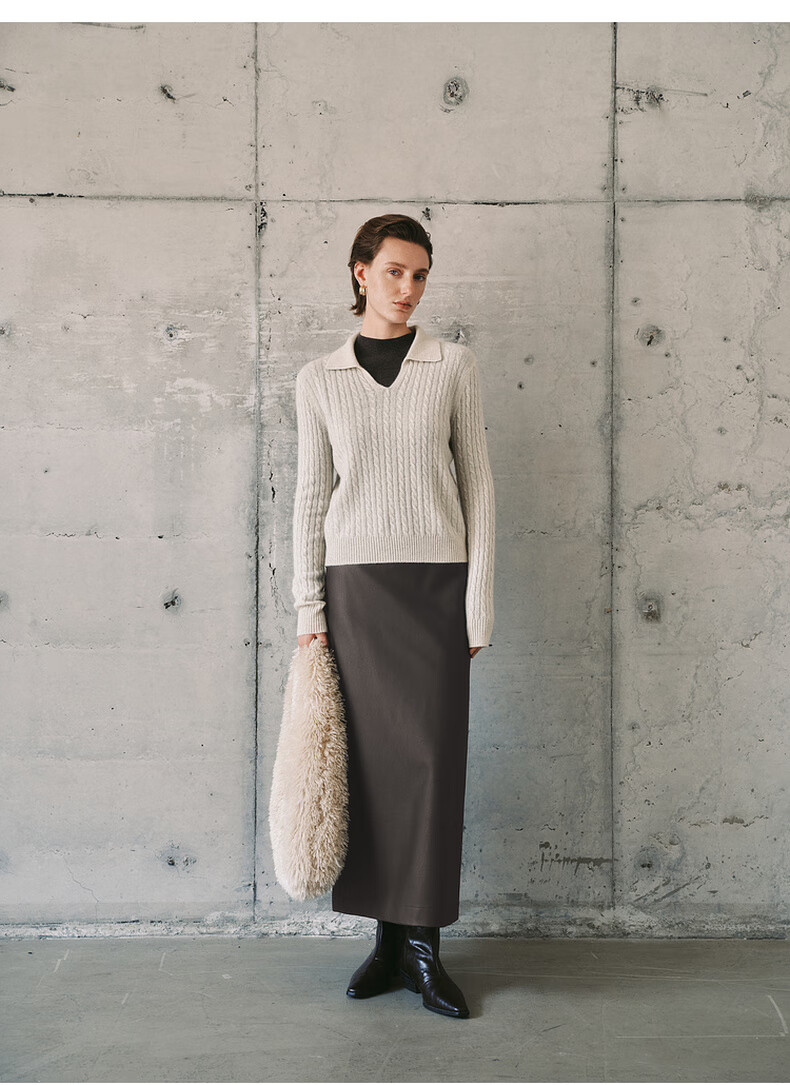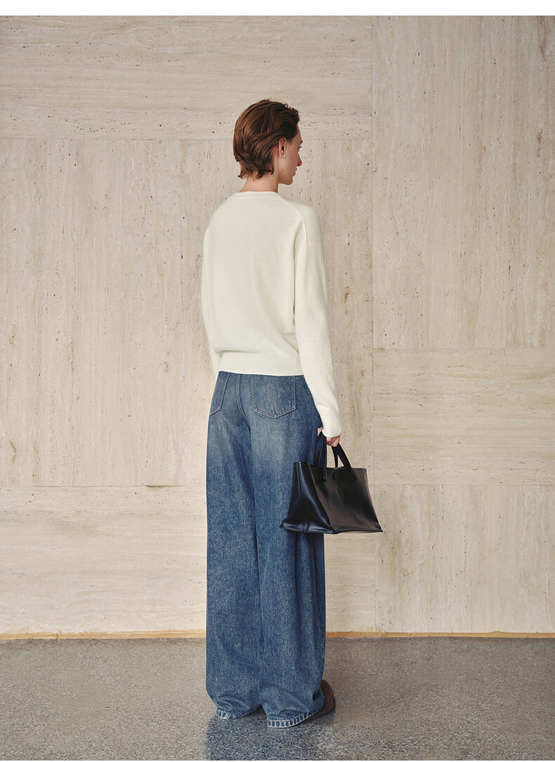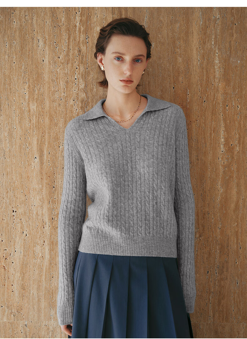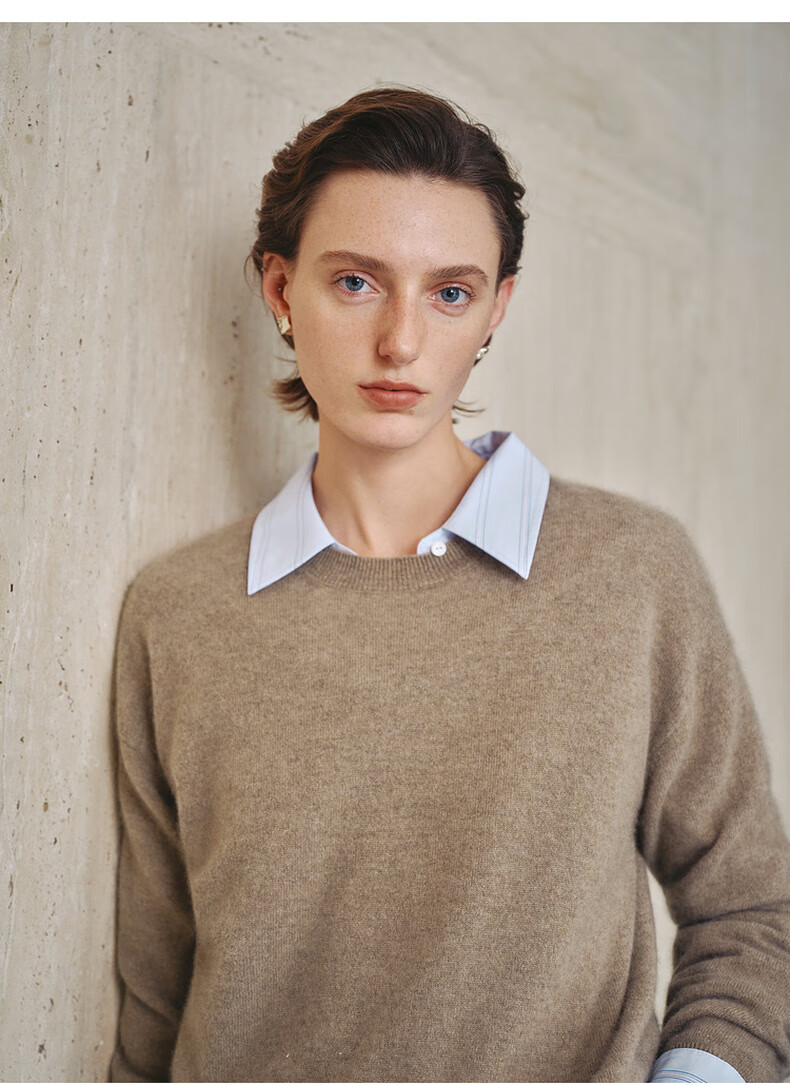 Maimeng 100% cashmere cable series MM loose lazy wool sweater sweater top 25 autumn and winter new round neck - raw velvet white 5GA934231 L
