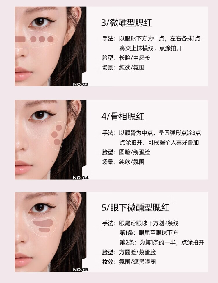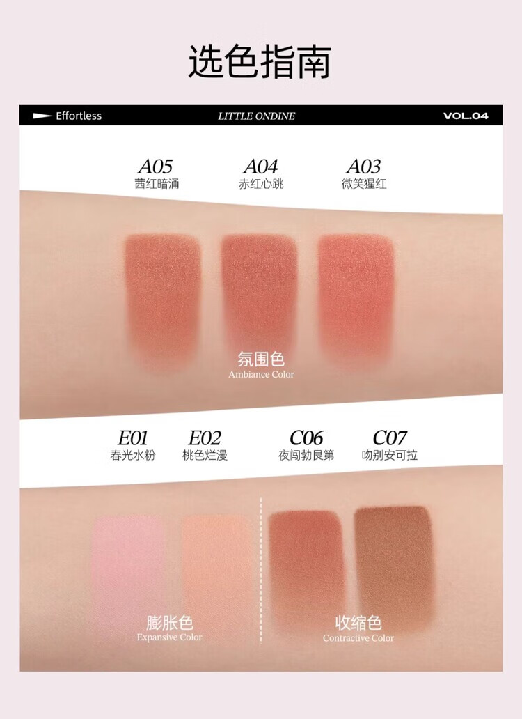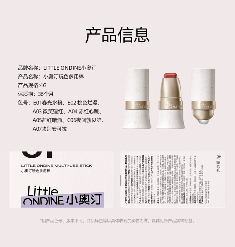 Littleondine Chinese Valentine's Day gift, colorful multi-purpose stick, hydrating silky blush, contouring eye shadow, lipstick, four-in-one multi-purpose stick E01-expanding tender powder, tear trough, eraser 4g