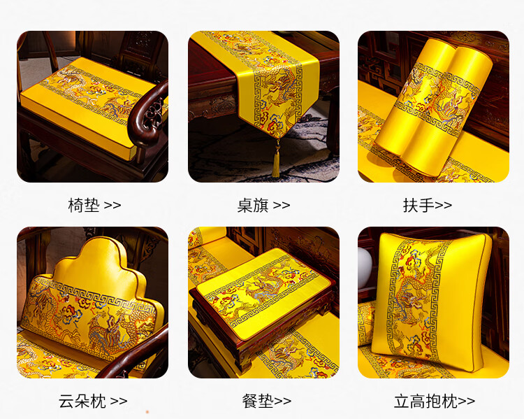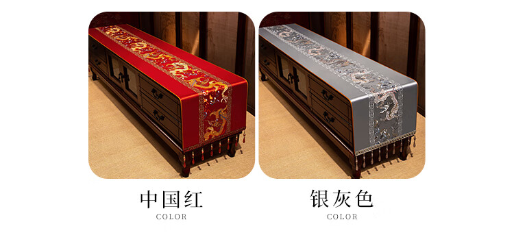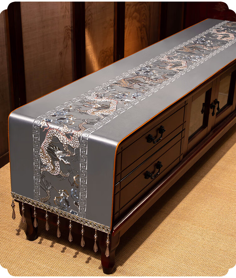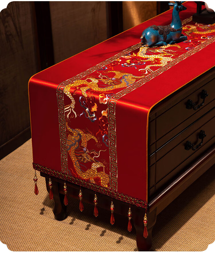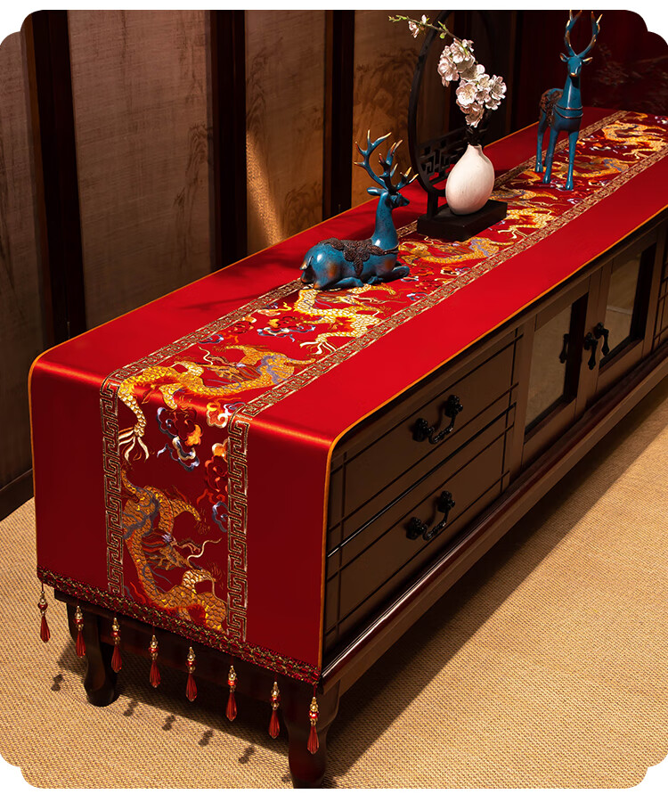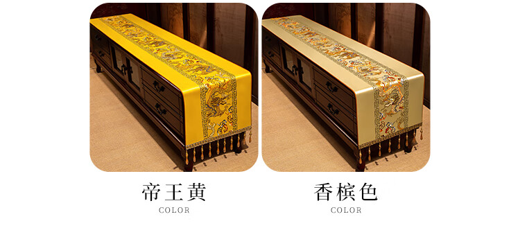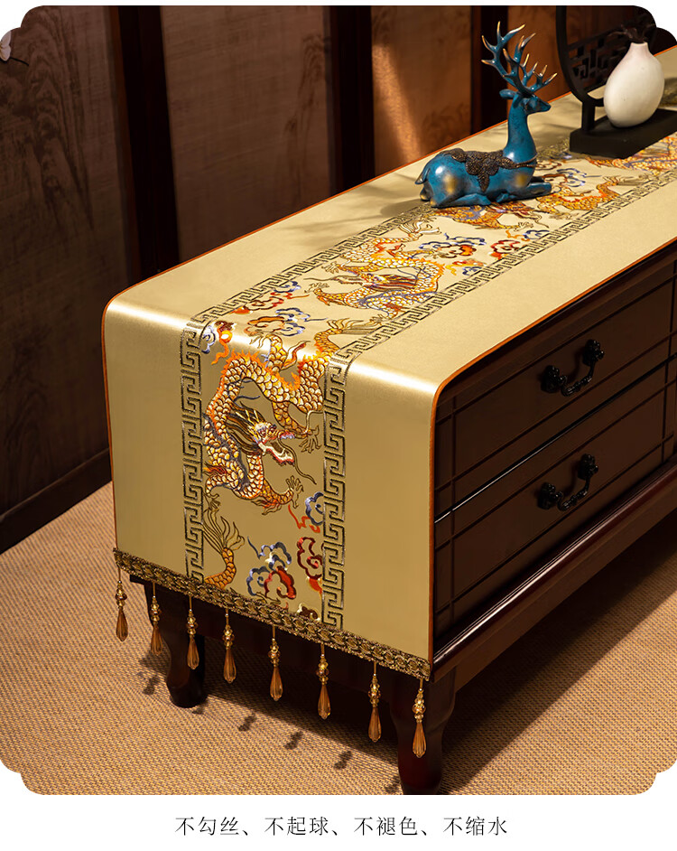 Yiboqiantang New Chinese Zen Coffee Table Tablecloth Chinese Style TV Cabinet Decorative Cover Cloth Rectangular Dining Table Sideboard Dustproof Cloth Nine Heavens Feilong Emperor Yellow High Precision/Waterproof Cabinet Cloth 40*200cm (Applicable table length 1.5-1.6m)