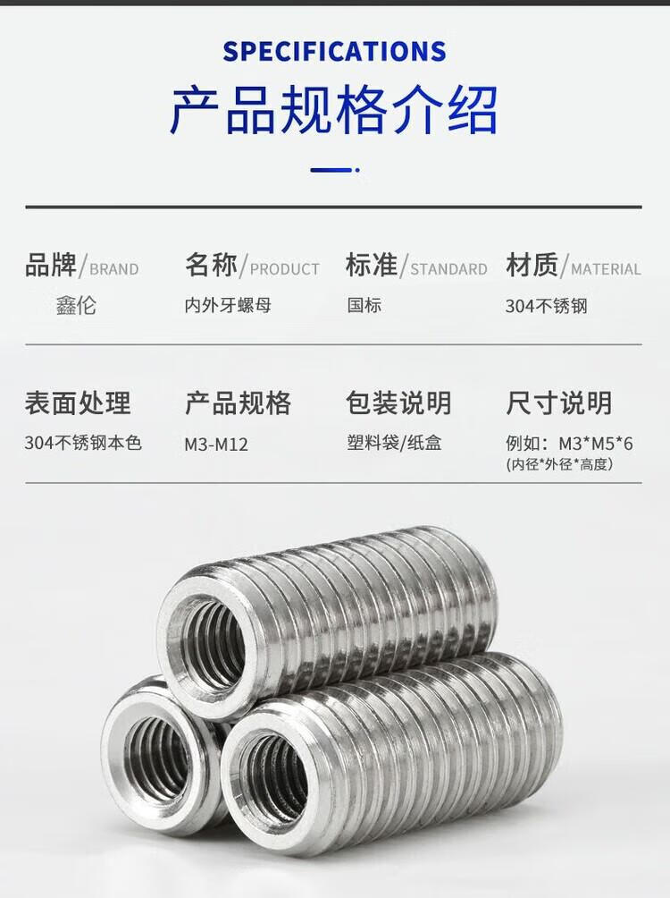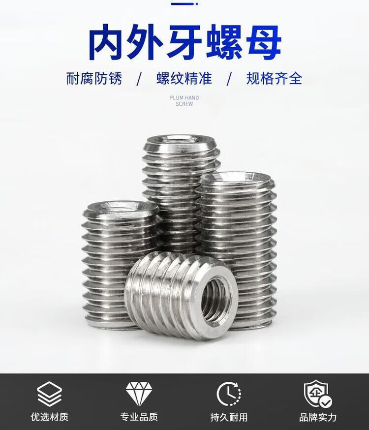 Stainless steel screw nut set with internal and external threads M2-M12 304 connector conversion nut thread protective sleeve inner diameter * outer diameter M2 * M4 8 pieces height 10 mm