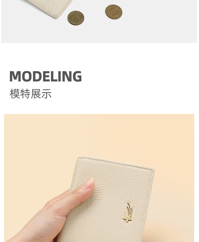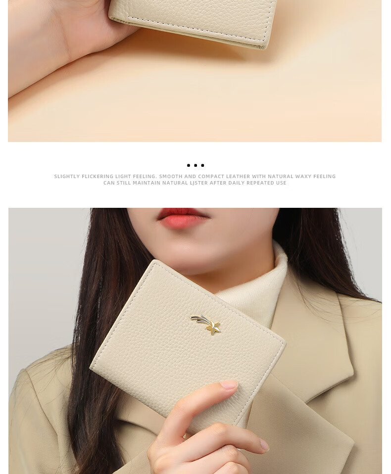 Chiecu Kscbn light luxury bag women's wallet women's short cowhide card bag wallet coin purse New Year's Valentine's Day birthday gift beige color for wife, girlfriend, mother, exquisite gift box