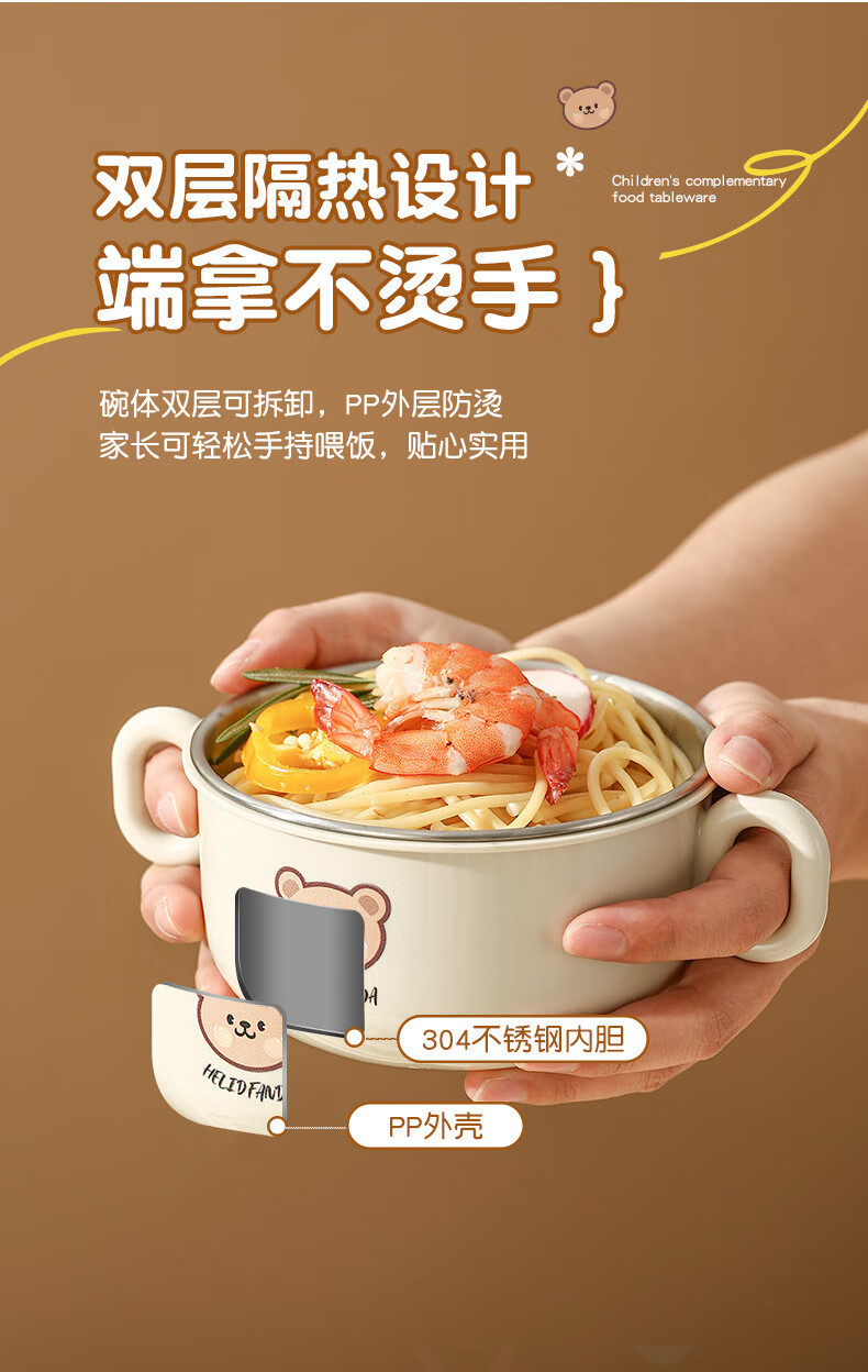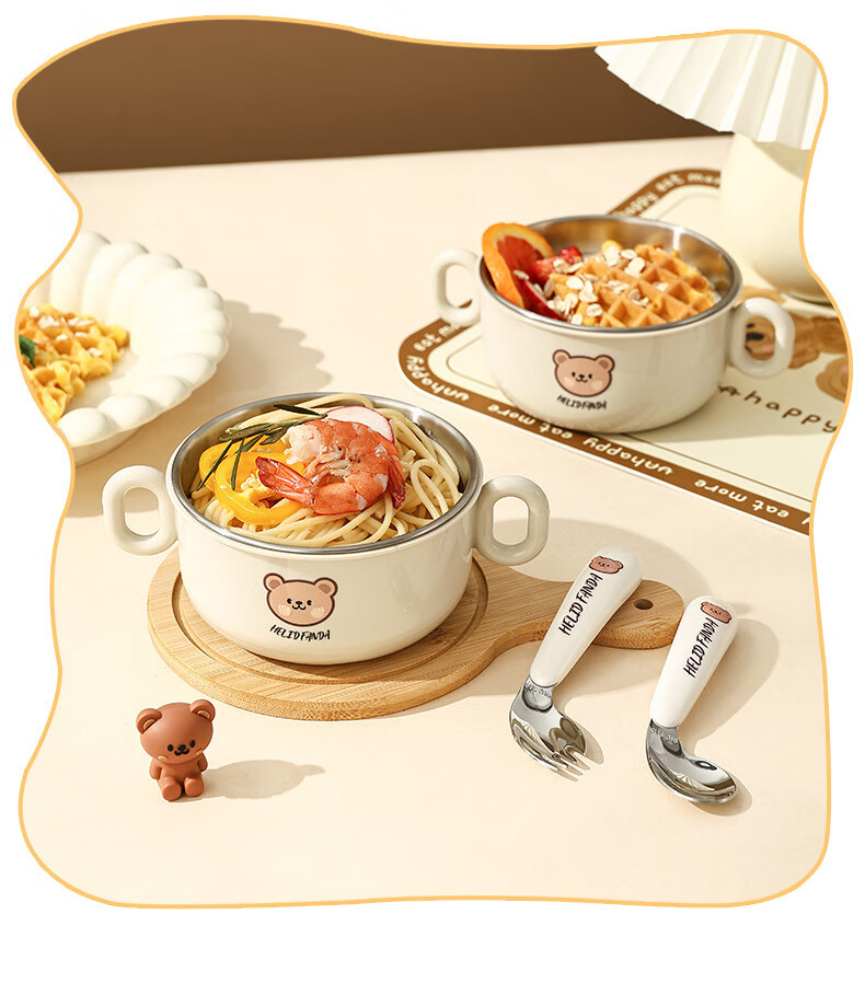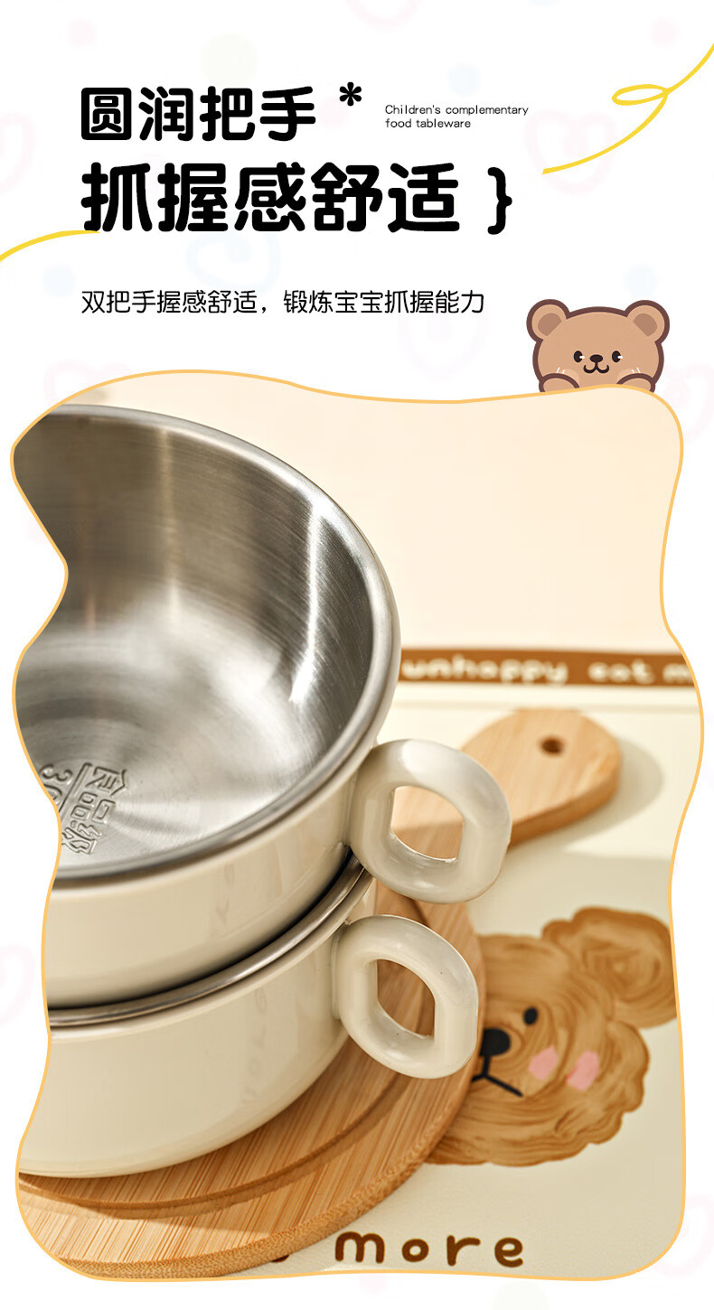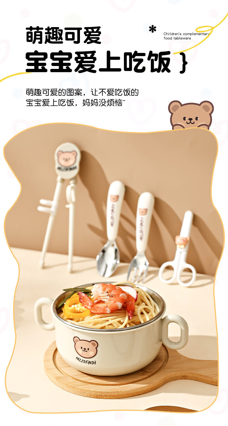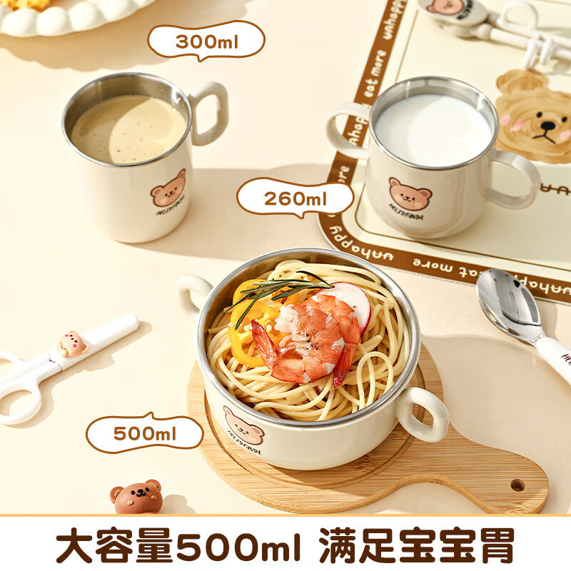 OIMG children's tableware baby 3-6 years old food supplement rice bowls and chopsticks four-piece set toddler practice stainless steel one-piece anti-fall binaural bowl + binaural cup + 316 straight fork and spoon + practice chopsticks