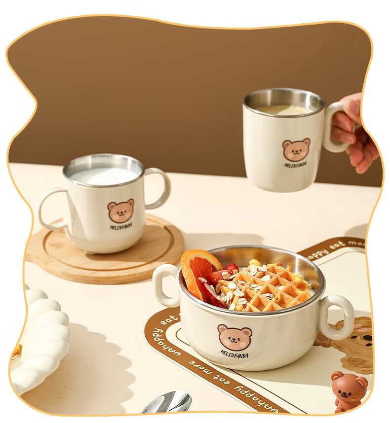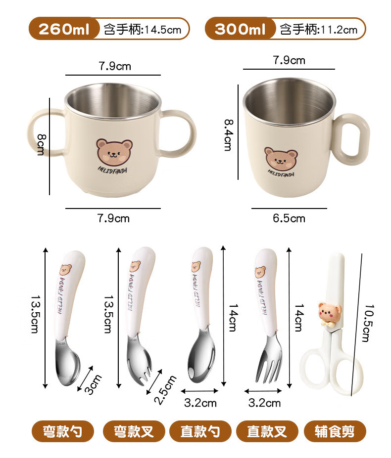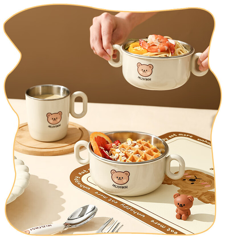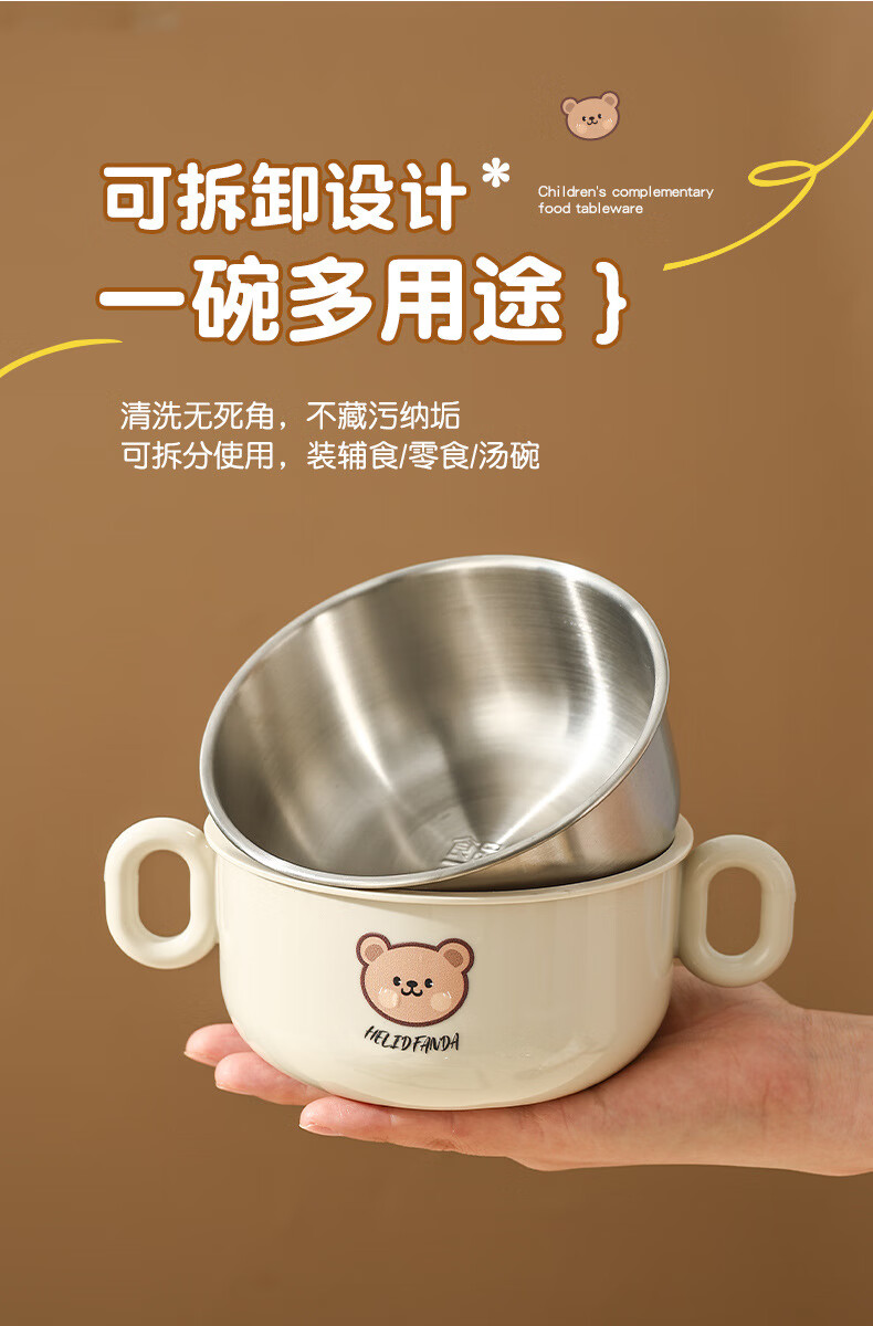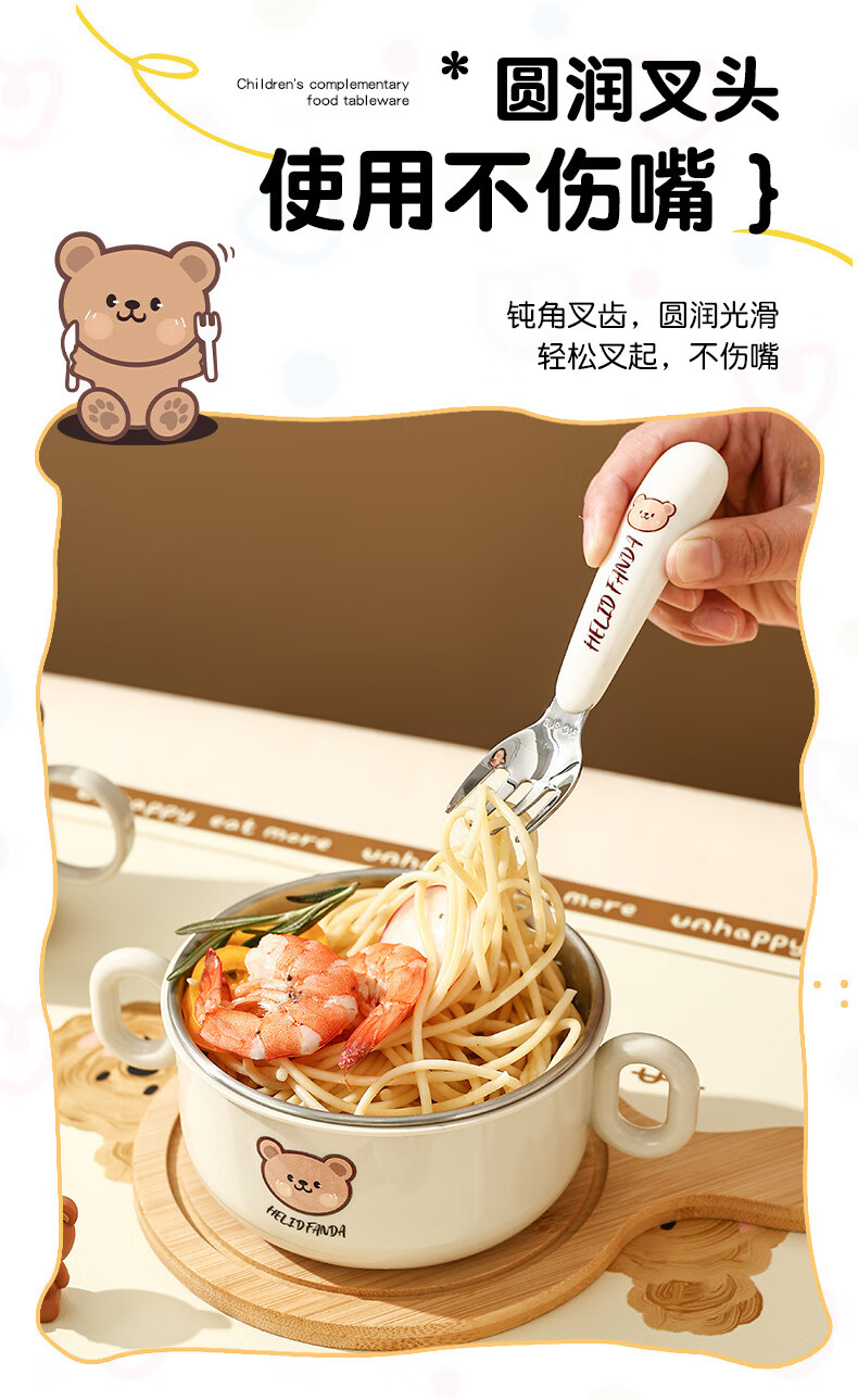 OIMG children's tableware baby 3-6 years old food supplement rice bowls and chopsticks four-piece set toddler practice stainless steel one-piece anti-fall binaural bowl + binaural cup + 316 straight fork and spoon + practice chopsticks