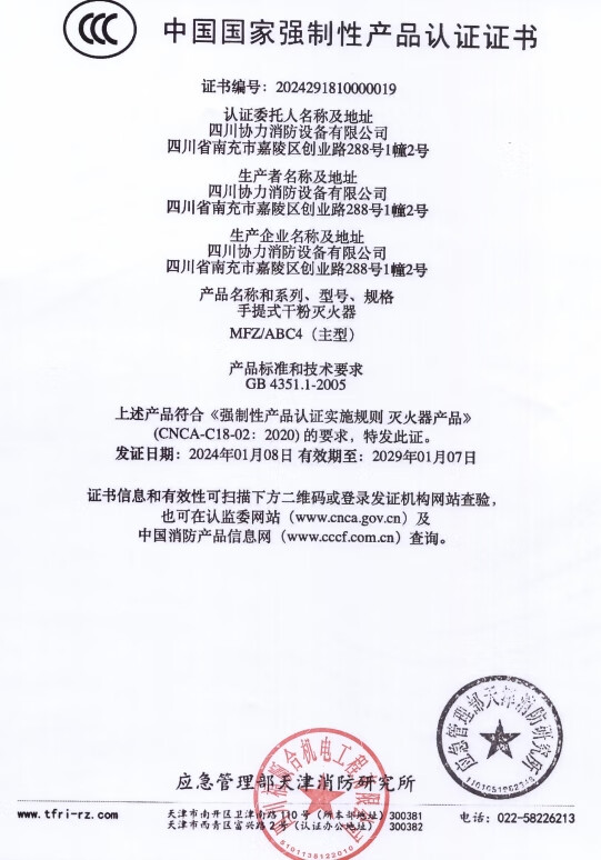 Sichuan Xieli portable dry powder fire extinguisher 4KG MF/ABCE4 unit