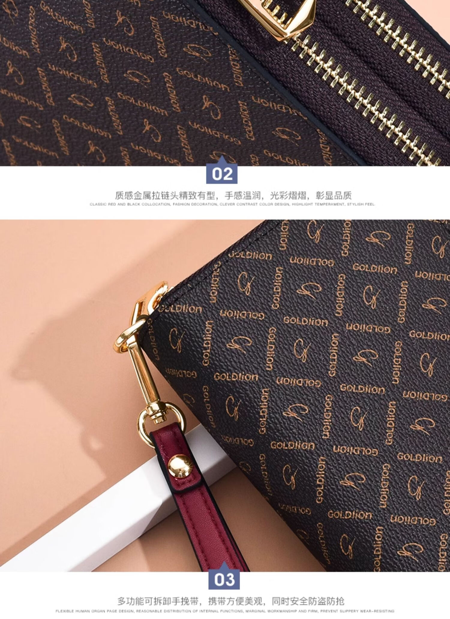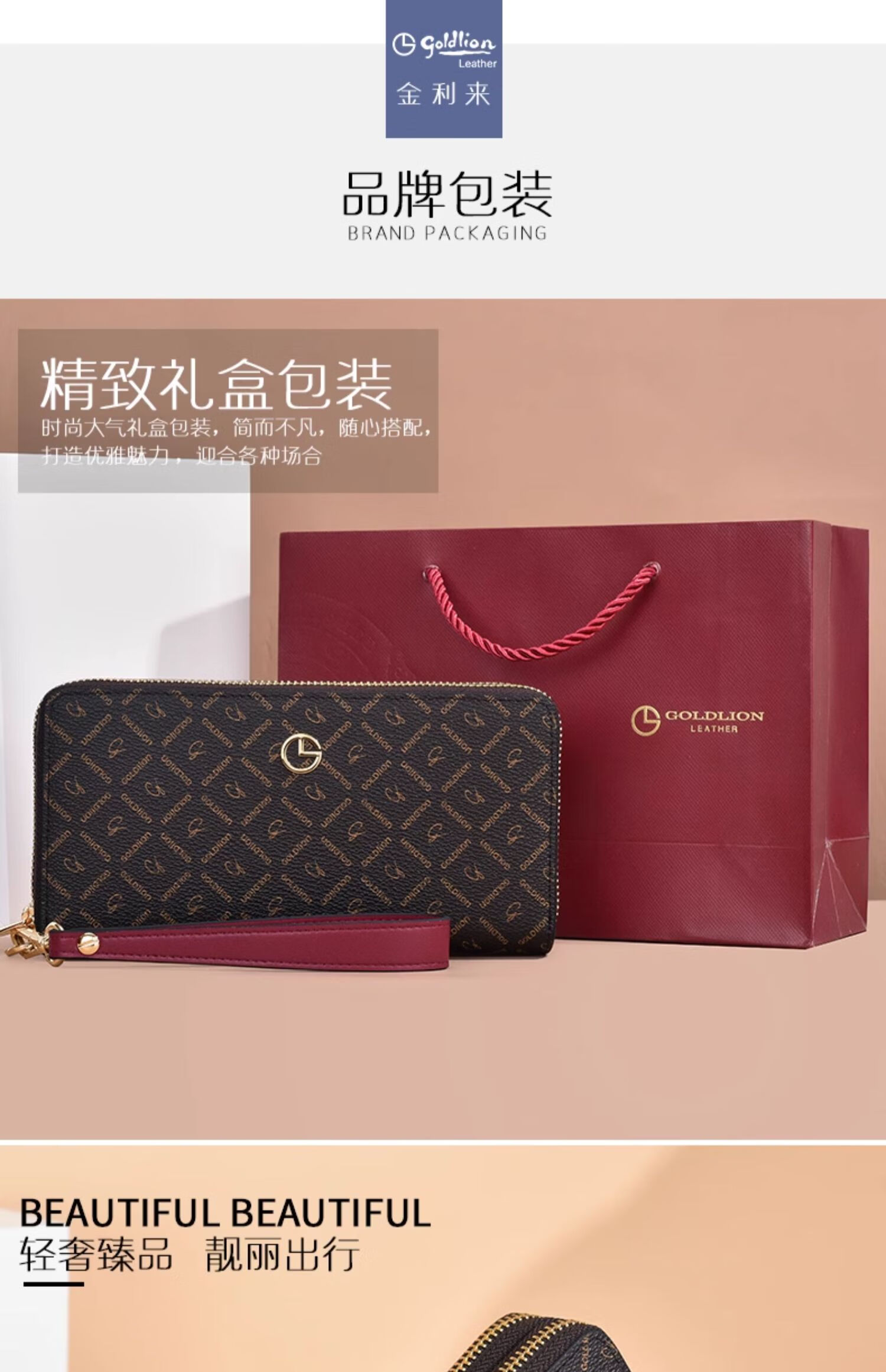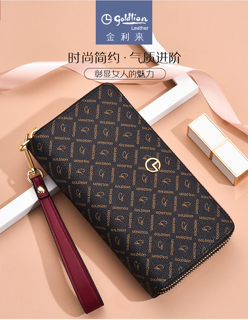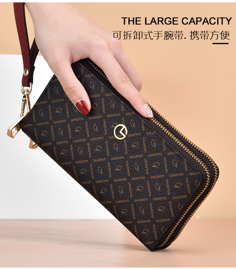 Goldlion Wallet Women's Long Large Capacity Light Luxury Handbag High-end Gift for Girlfriend Bag Clutch Coffee Color