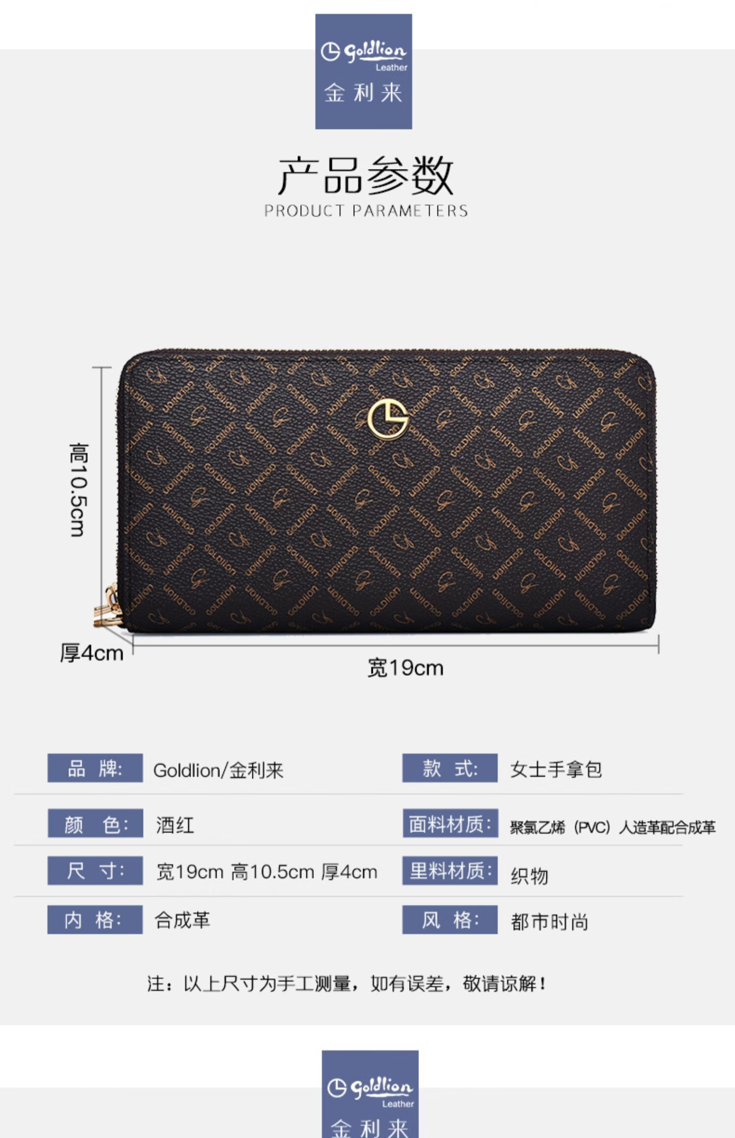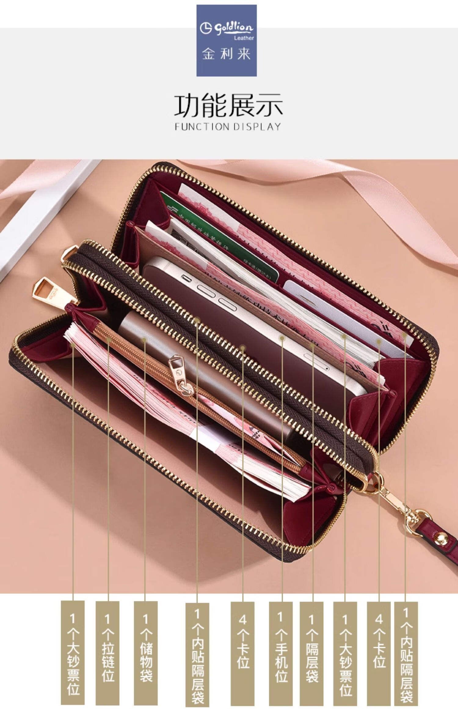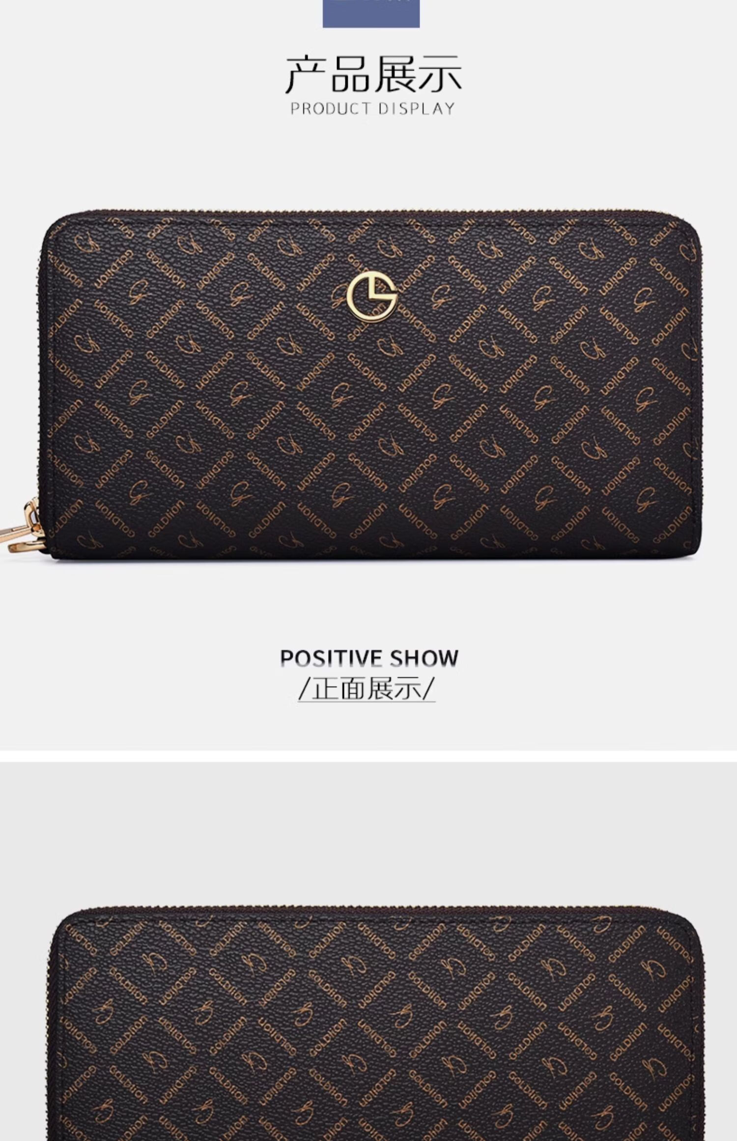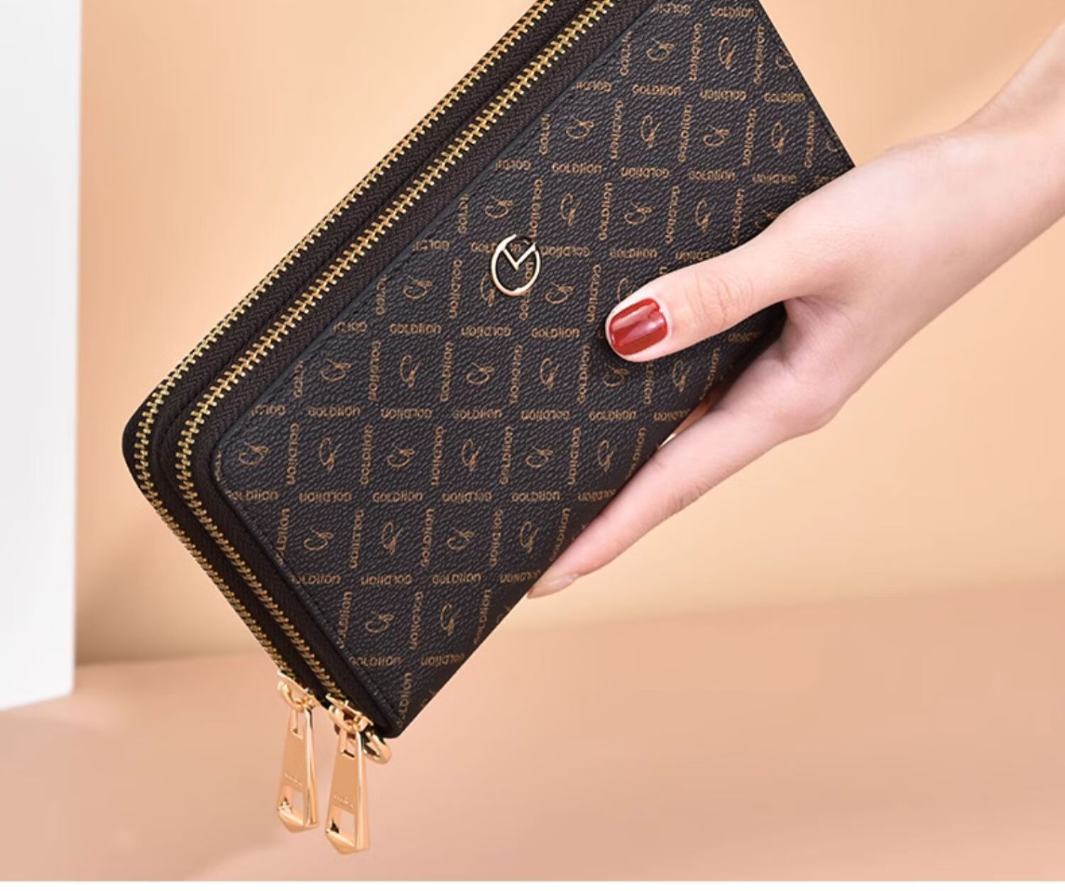 Goldlion Wallet Women's Long Large Capacity Light Luxury Handbag High-end Gift for Girlfriend Bag Clutch Coffee Color
