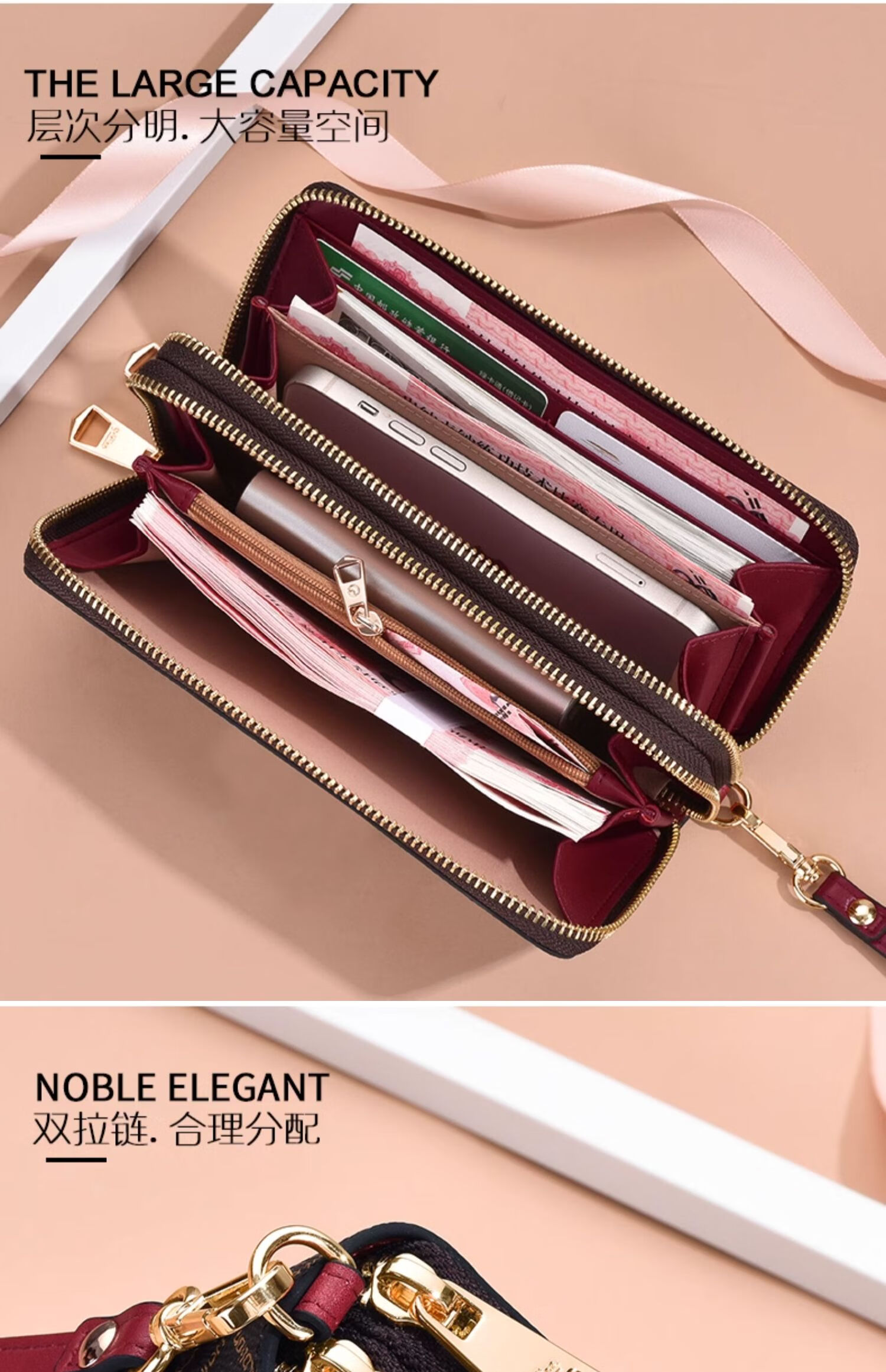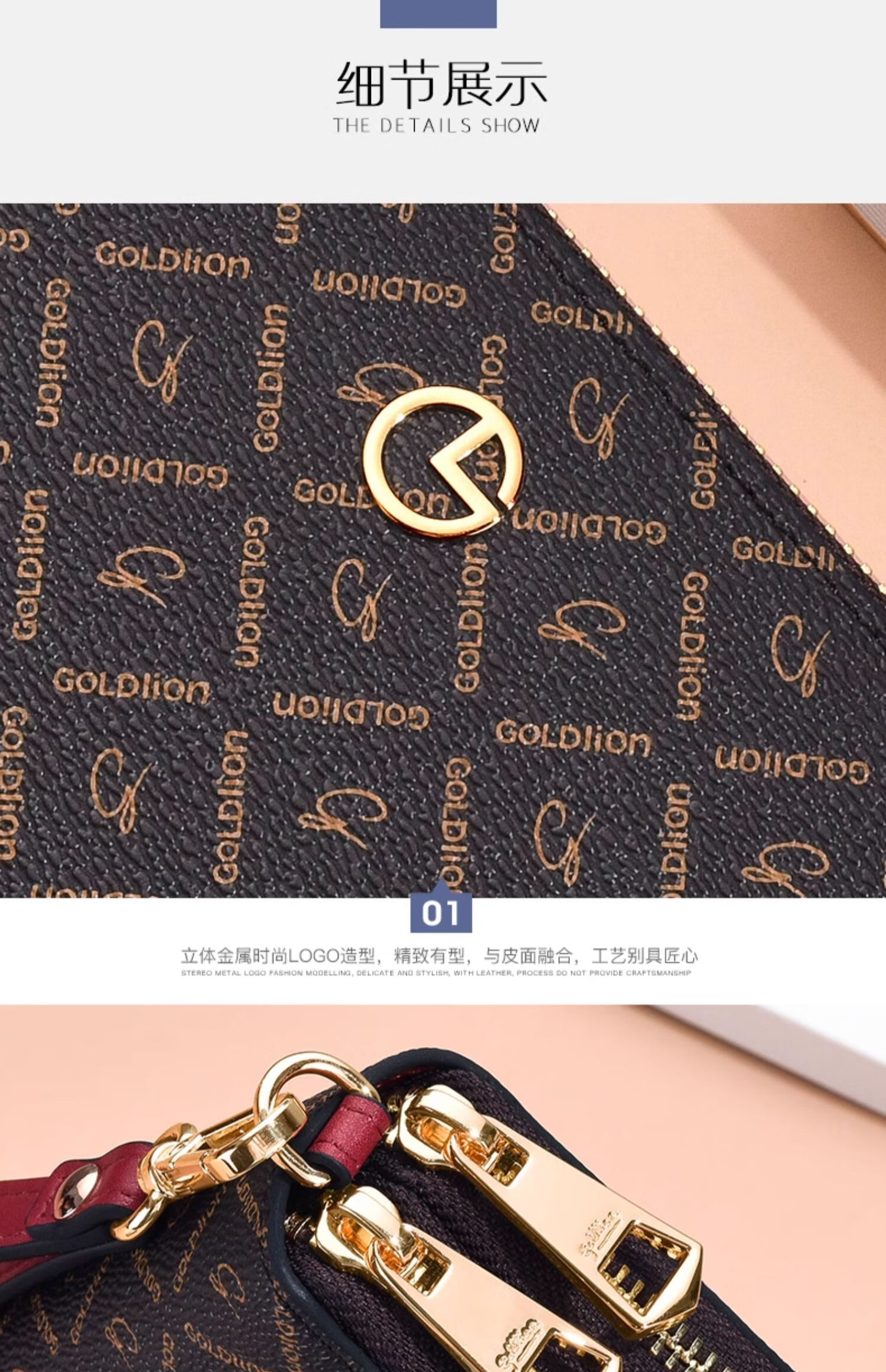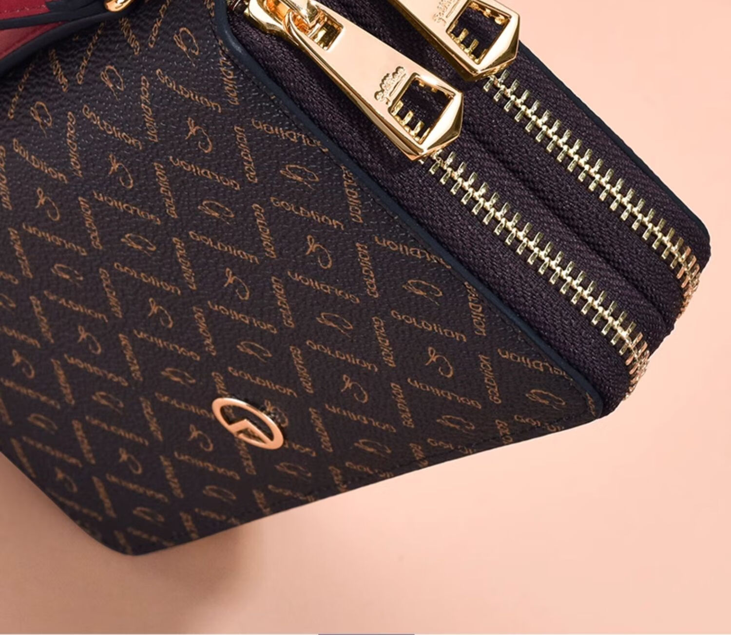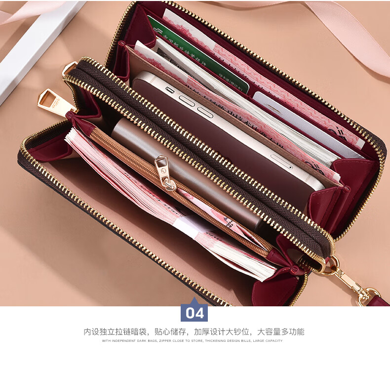 Goldlion Wallet Women's Long Large Capacity Light Luxury Handbag High-end Gift for Girlfriend Bag Clutch Coffee Color