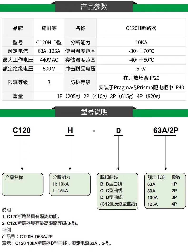 Schneider C120H leakage circuit breaker 63A80A100A125A with leakage protection circuit breaker 3P leakage protection 4px63A