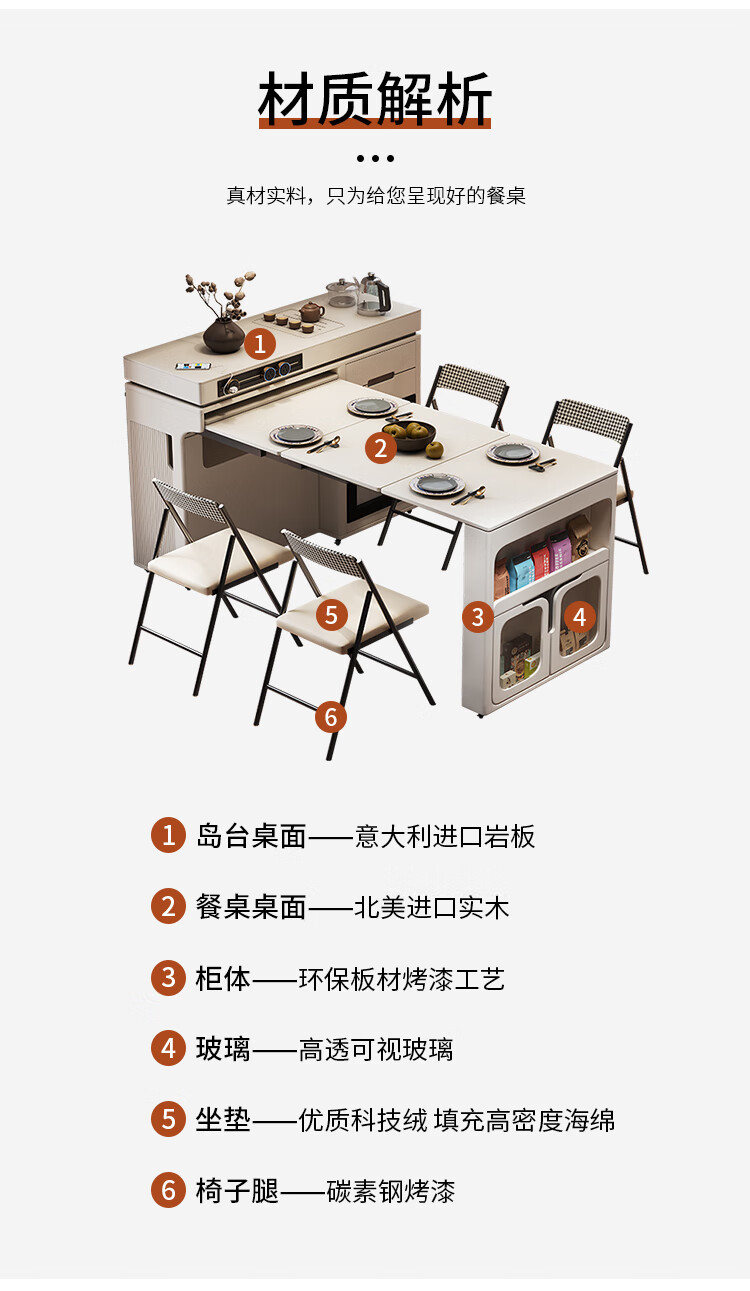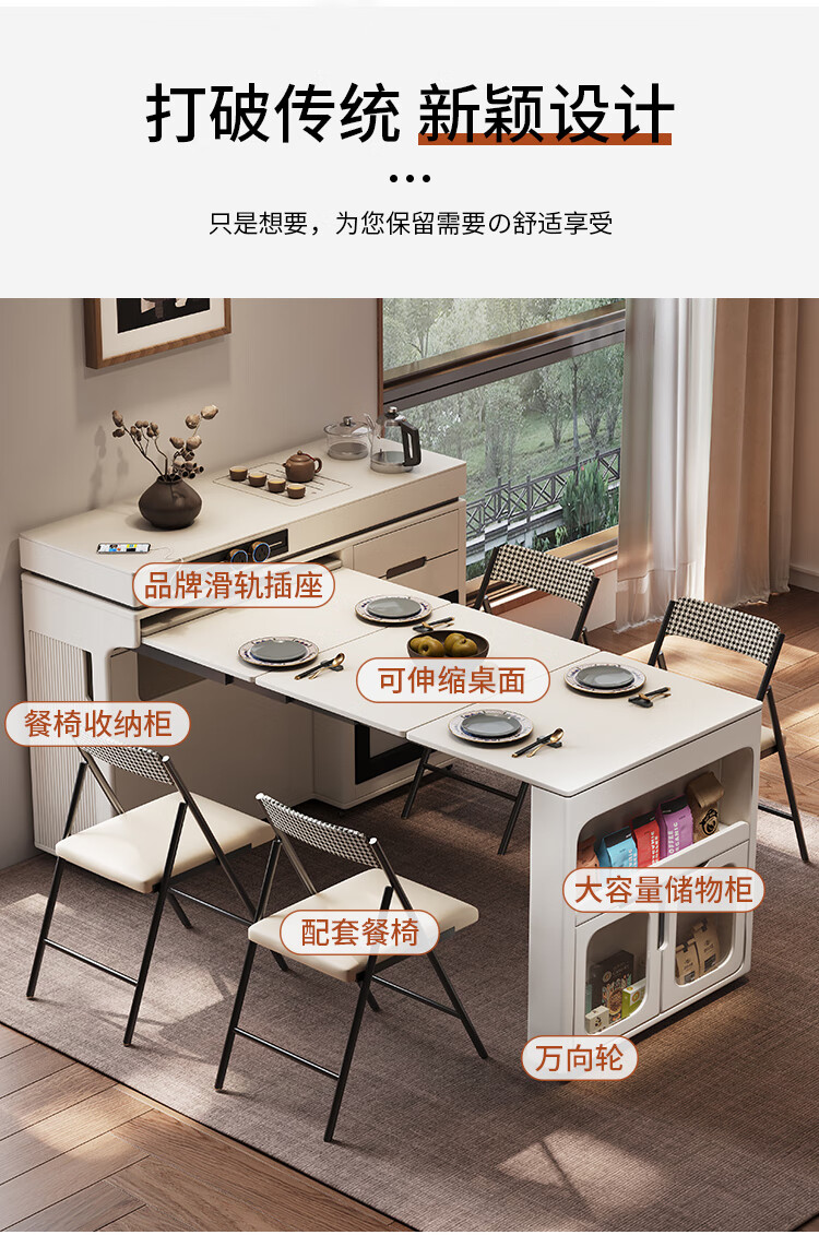 Micro Art 2026 sideboard island table integrated household retractable folding small apartment multi-functional bar guide dining table high-end retractable dining table (no tea making and no refrigerator)