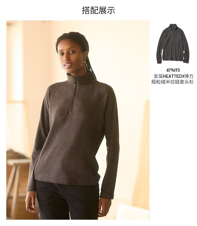 Uniqlo Women's HEATTECH Stretch Polar Fleece Half-Zip Pullover/Basing Shirt 479693 08 Dark Gray L /160/88A