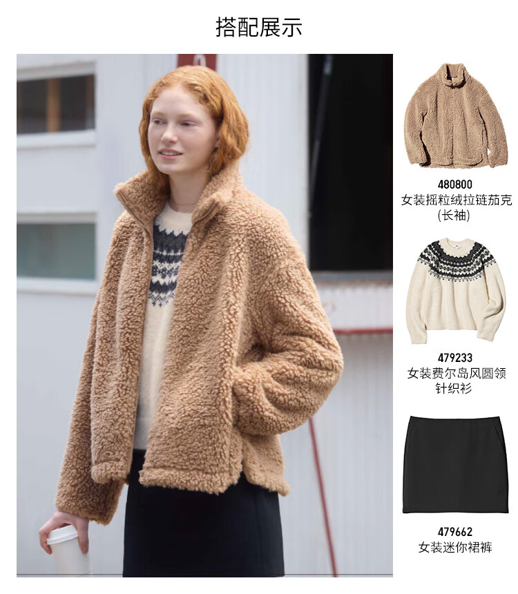 Uniqlo Women's Polar Fleece Zip Jacket/Long Sleeve Jacket 480800 30 Light Beige S /155/80A