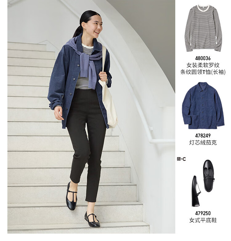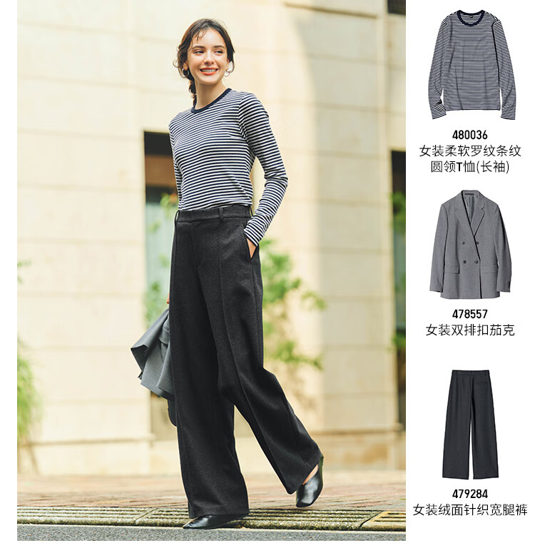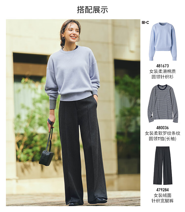 Uniqlo Women's Soft Ribbed Striped Round Neck T-Shirt Long Sleeve Versatile Bottoming Autumn and Winter 480036 01 Milky White M /160/84A