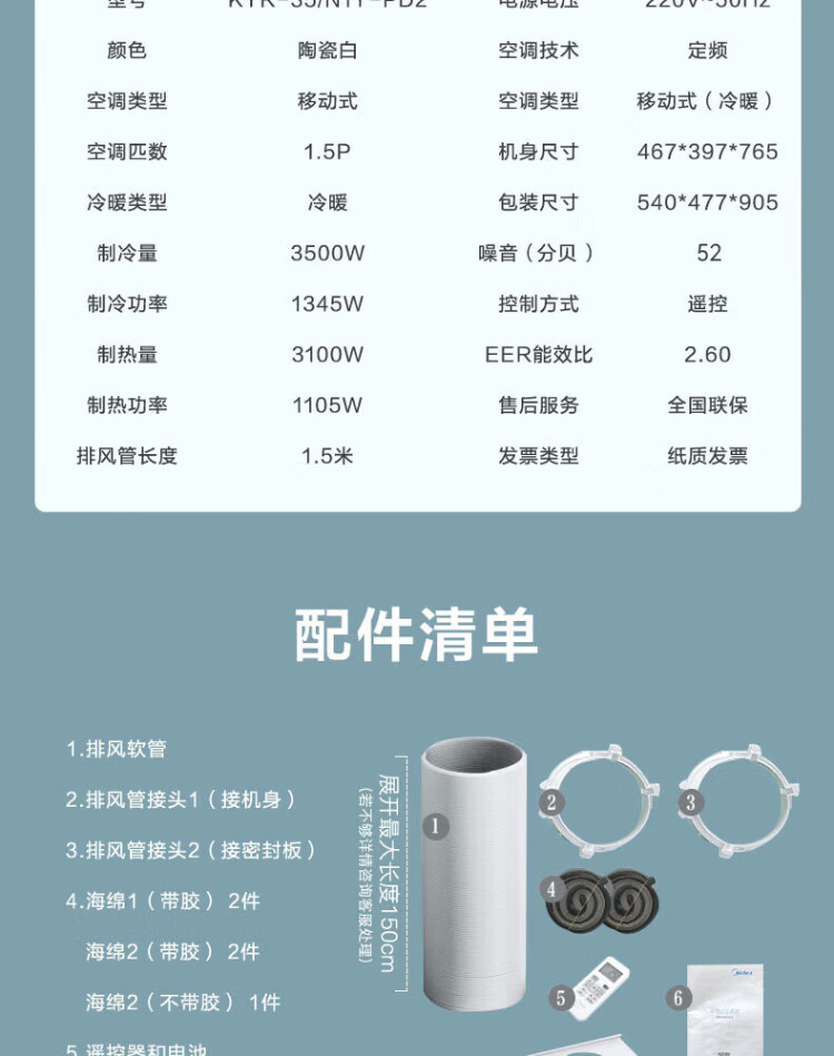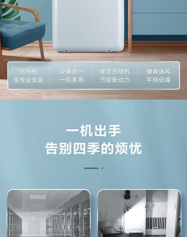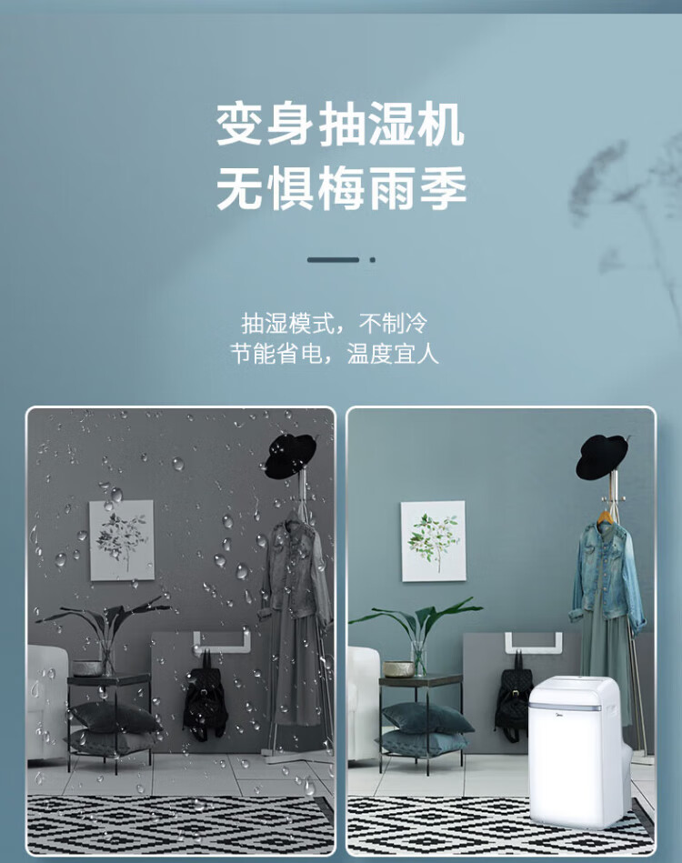 Midea mobile air conditioner 1.5 HP cooling and heating all-in-one machine no installation and no drainage dormitory air conditioner without outdoor unit home kitchen dehumidification heating cooling air supply mobile air conditioner 1.5 HP no punching mobile air conditioner
