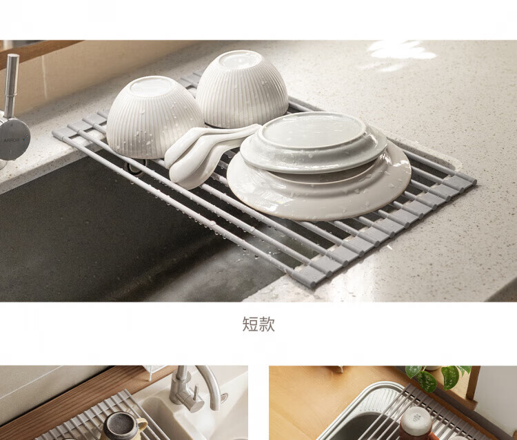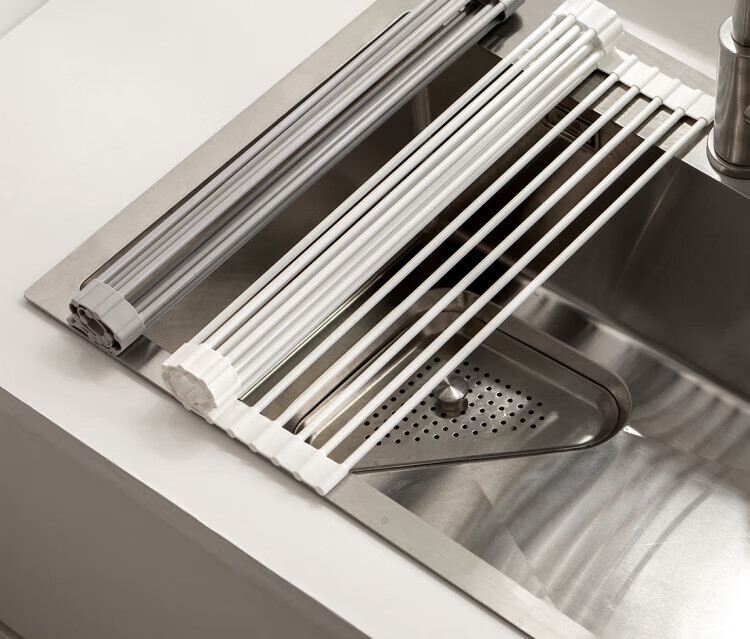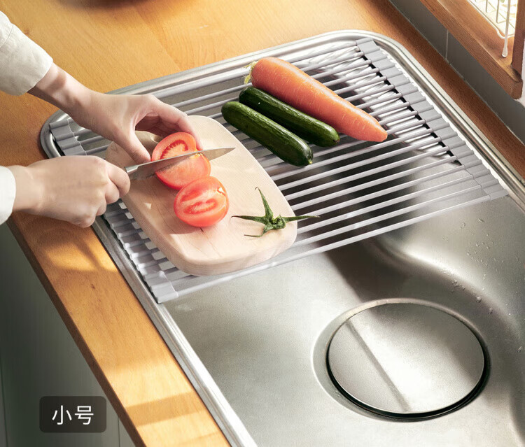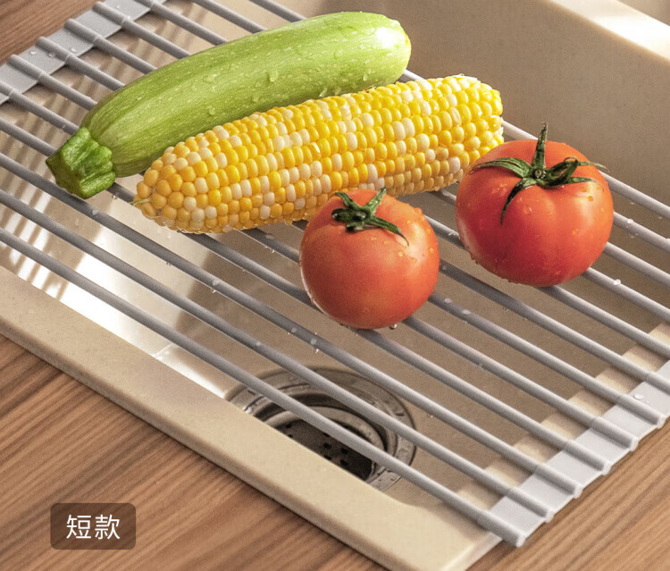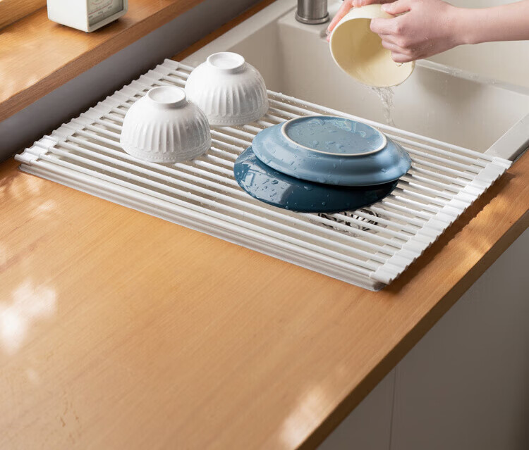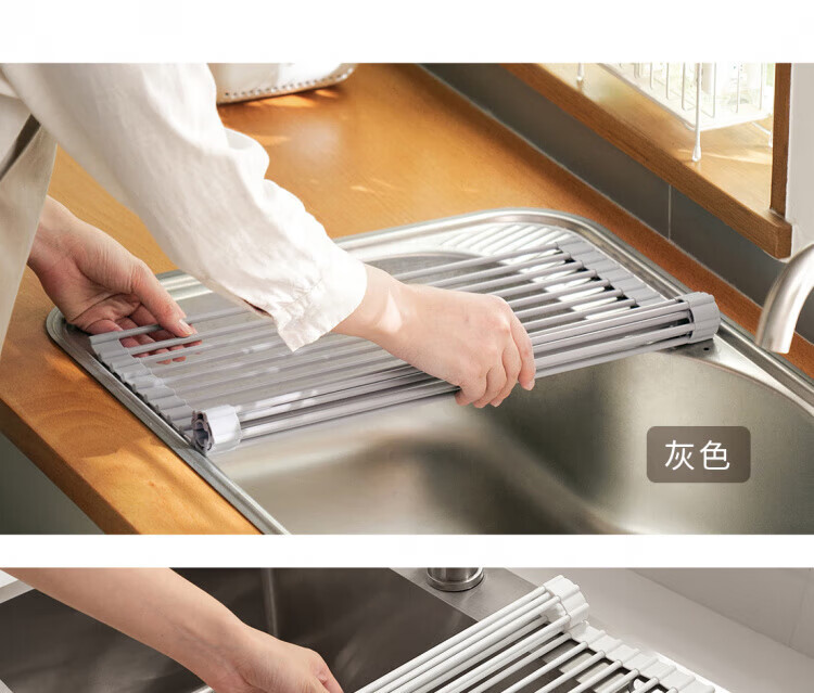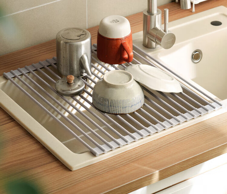 WCZ German foldable silicone drain rack filter roll-over drain bowl drain pad sink water board kitchen storage rack gray large (52*33cm)