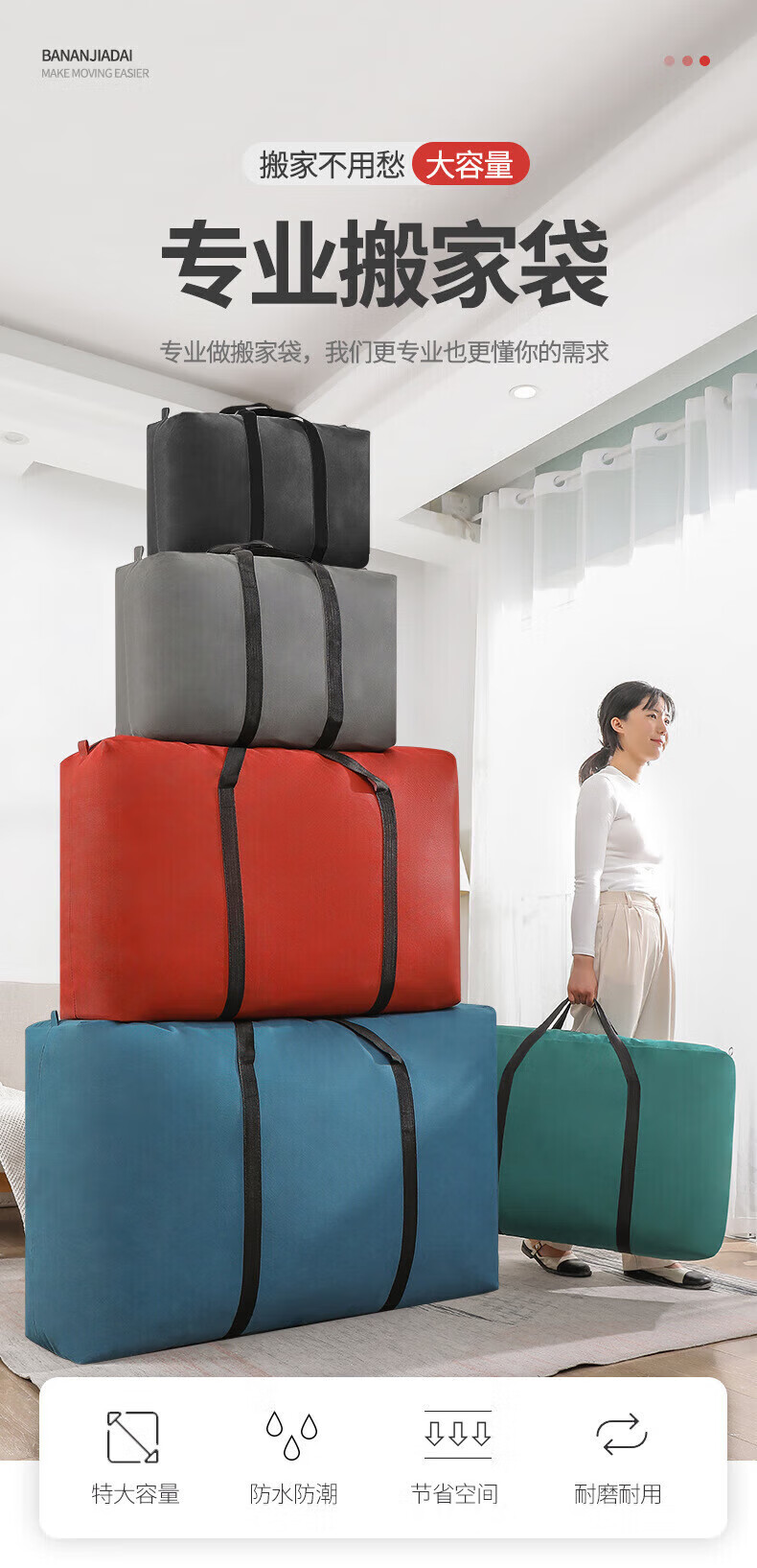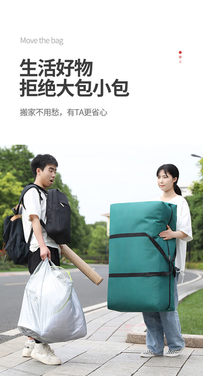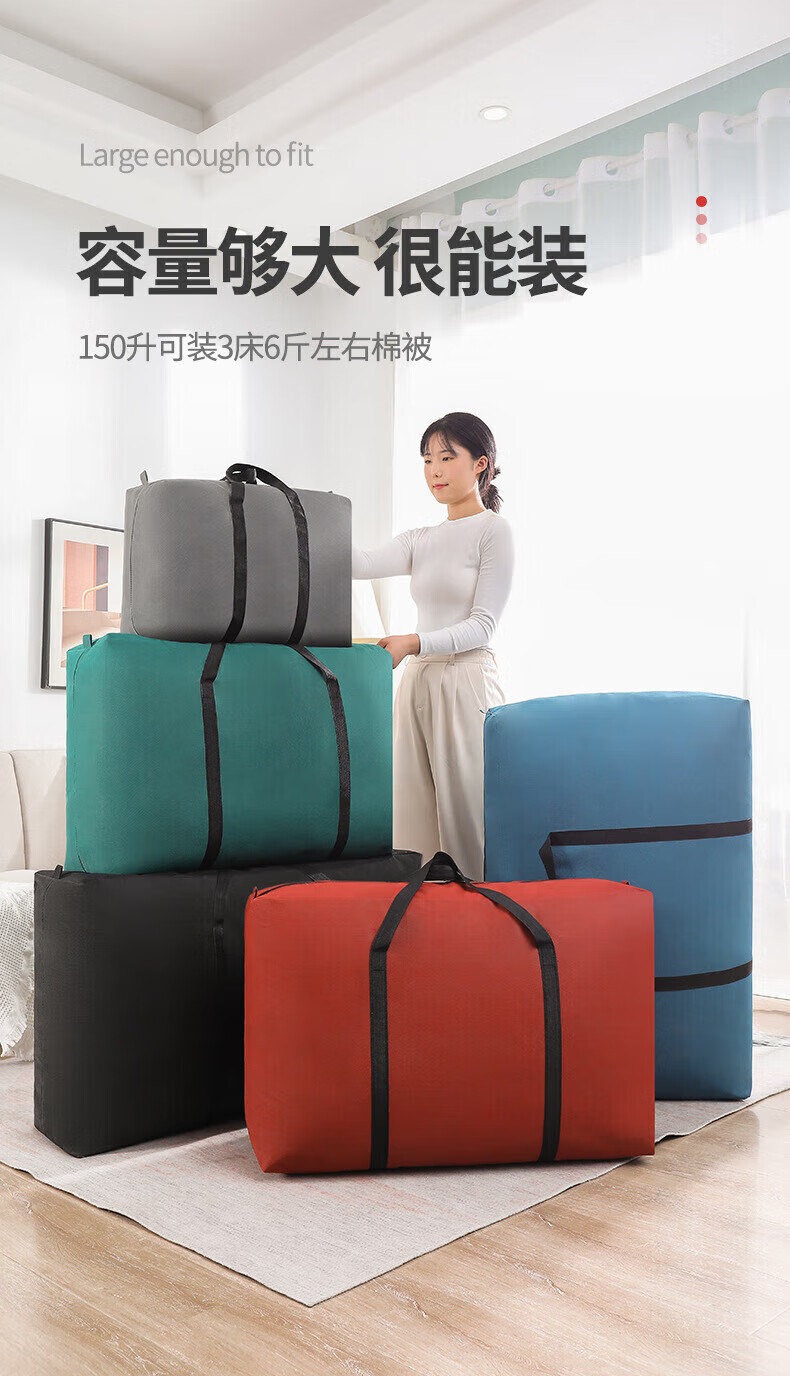 Moving bag large waterproof student luggage packing bag kindergarten quilt storage bag home wardrobe storage 180L 1 piece 100*27*50cm moving bag dark green